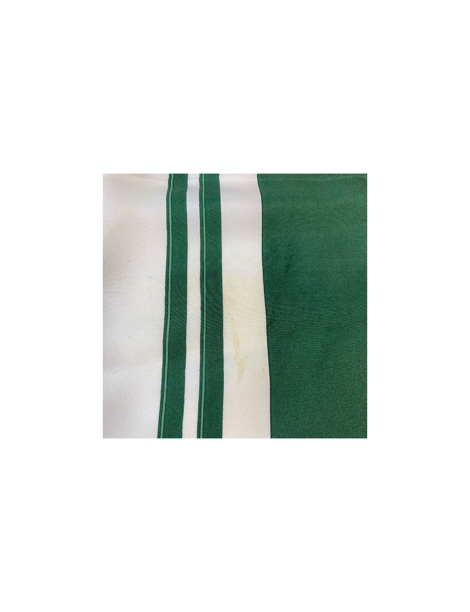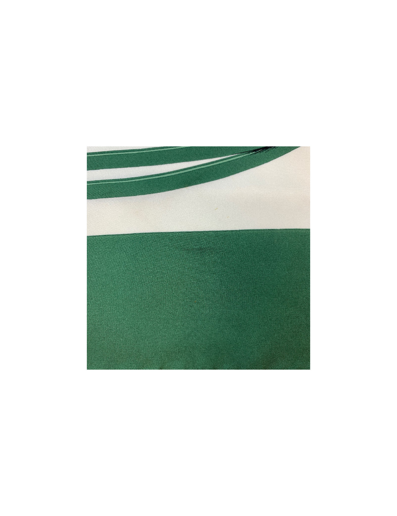 Il est en twill de soie verte et ivoire.
