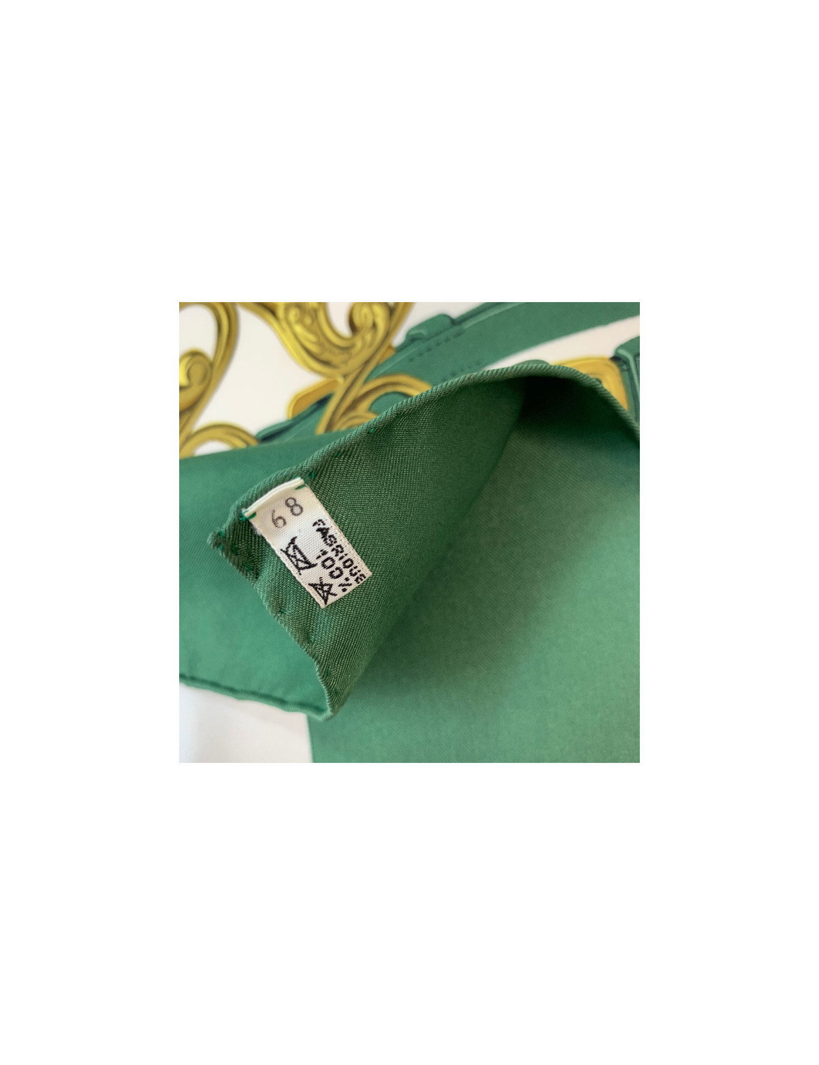 Une des pièces en soie phare de la marque HERMES, dessiné par Hugo Grygkar en 1957. Ce carré, emblématique a été réédité plusieurs fois. Celui-ci est vintage.