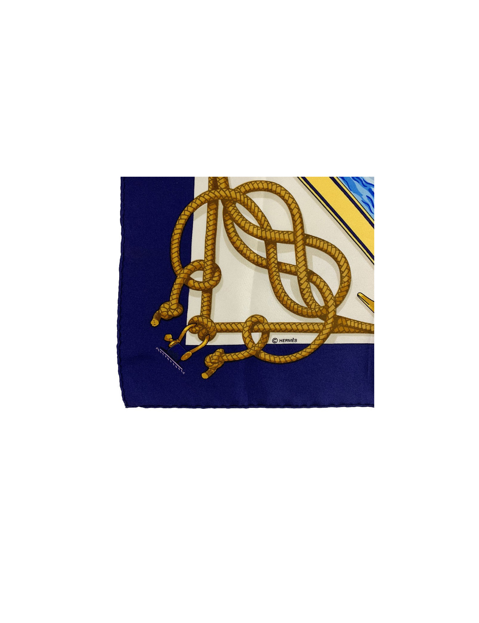 Foulard soie HERMES 'Retour de Pêche' bleu