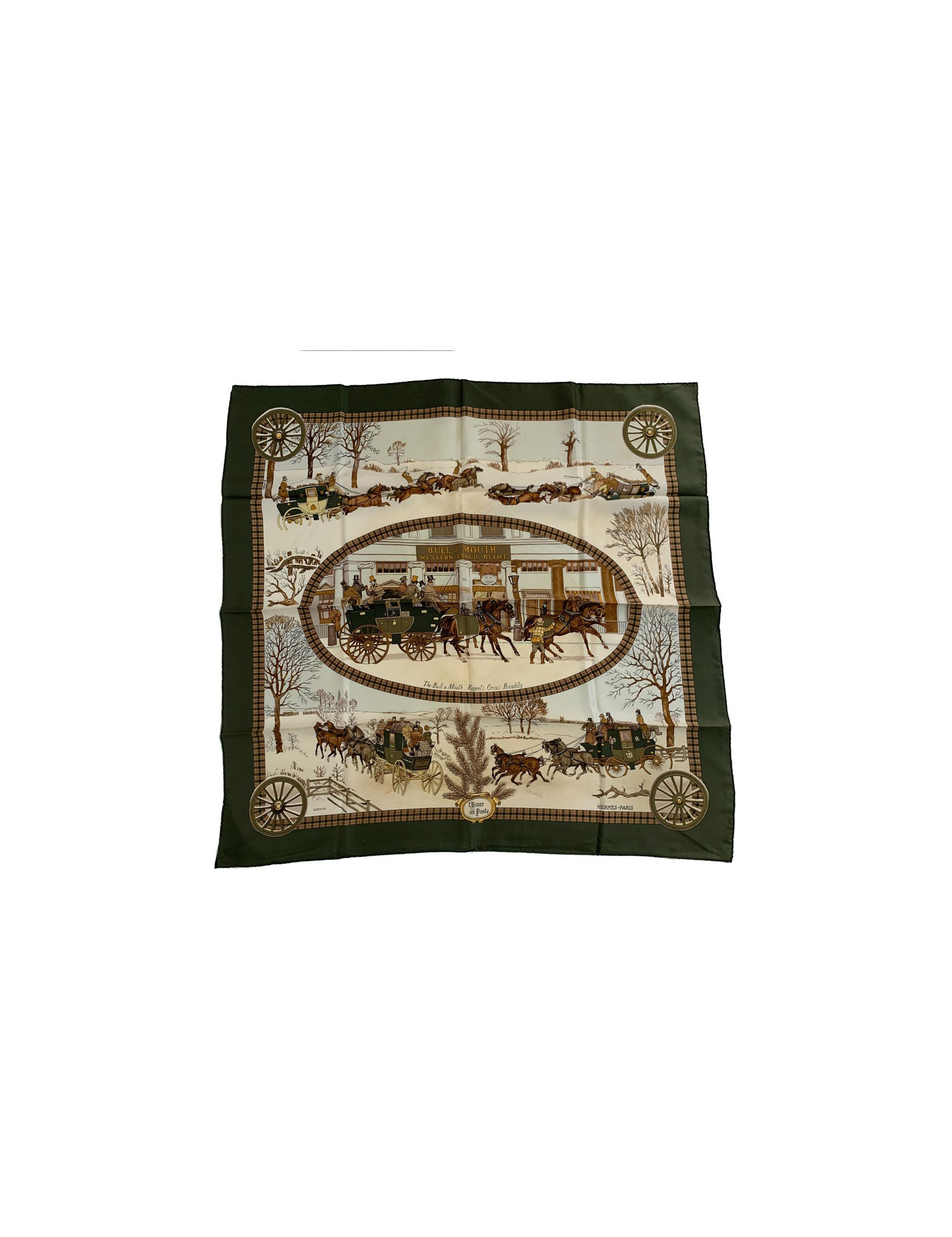 Détails sur ce carré vert HERMES 'L'Hiver en Poste'