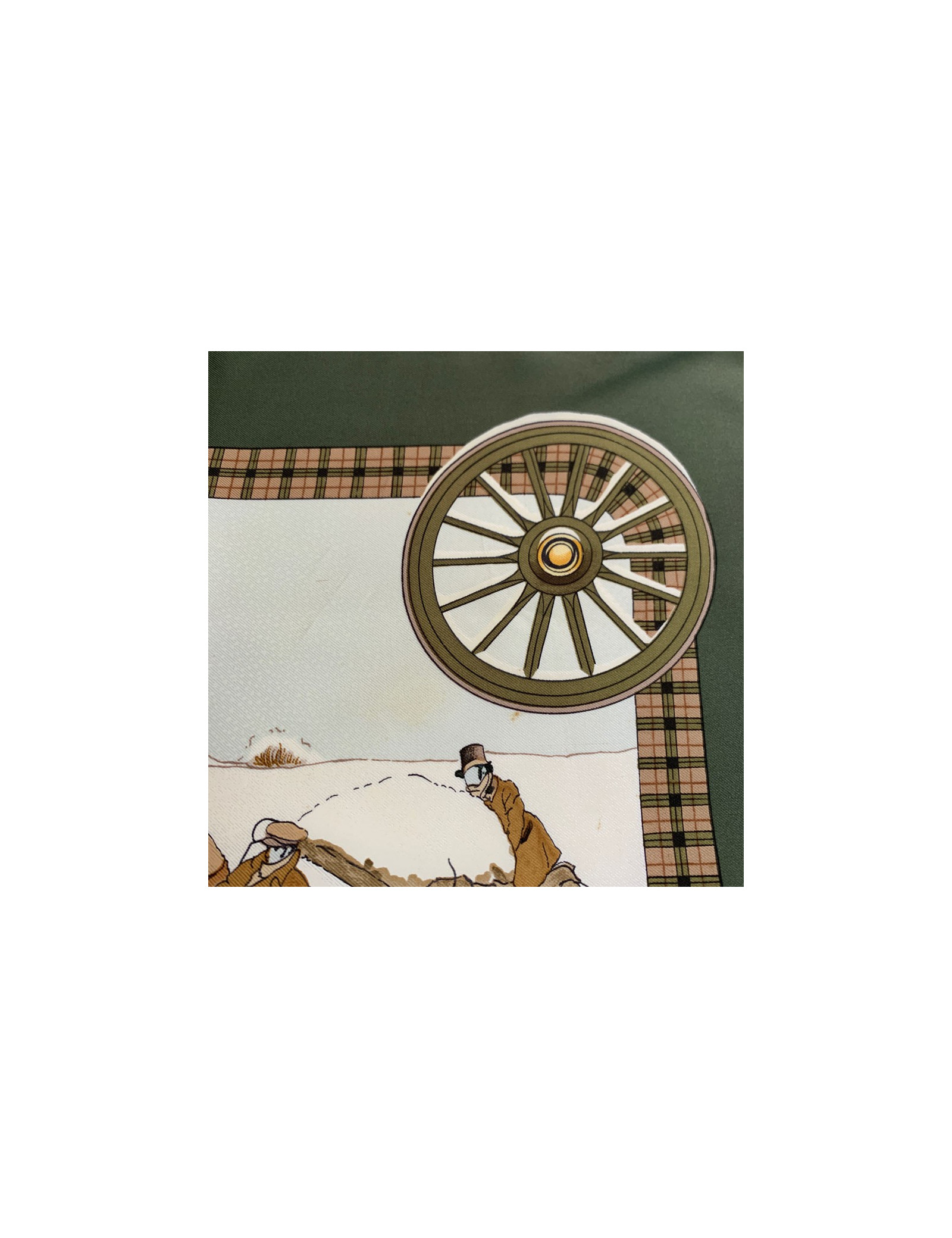 Carré vert HERMES 'L'hiver en Poste' en soie
