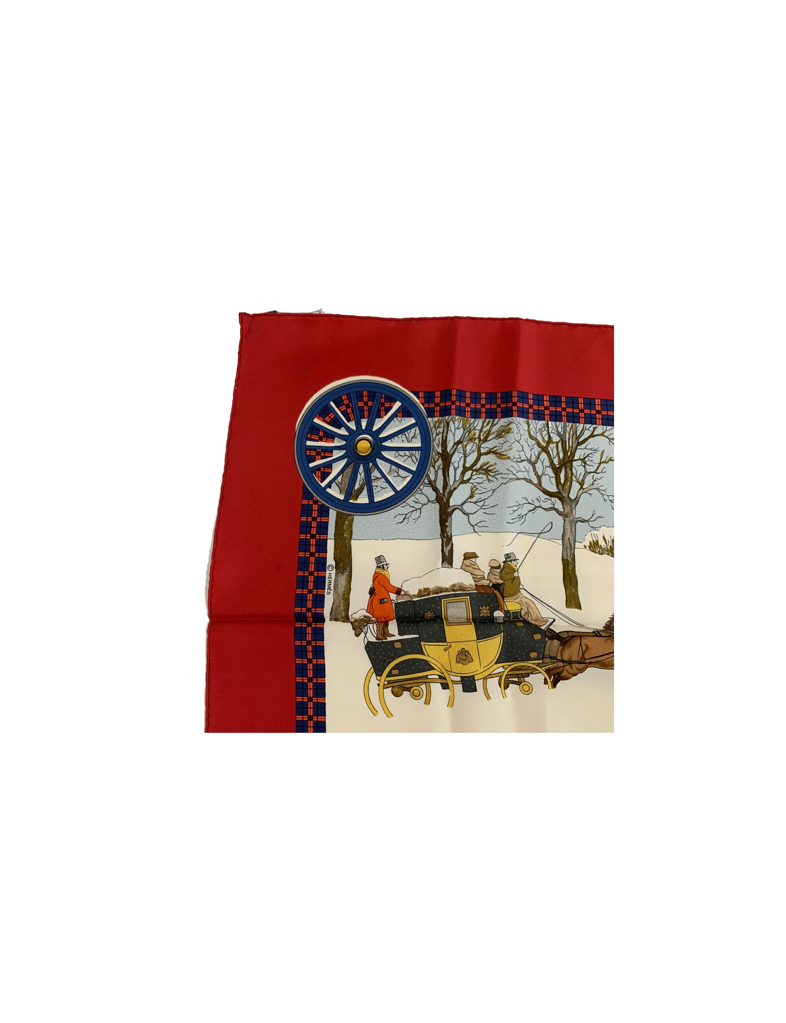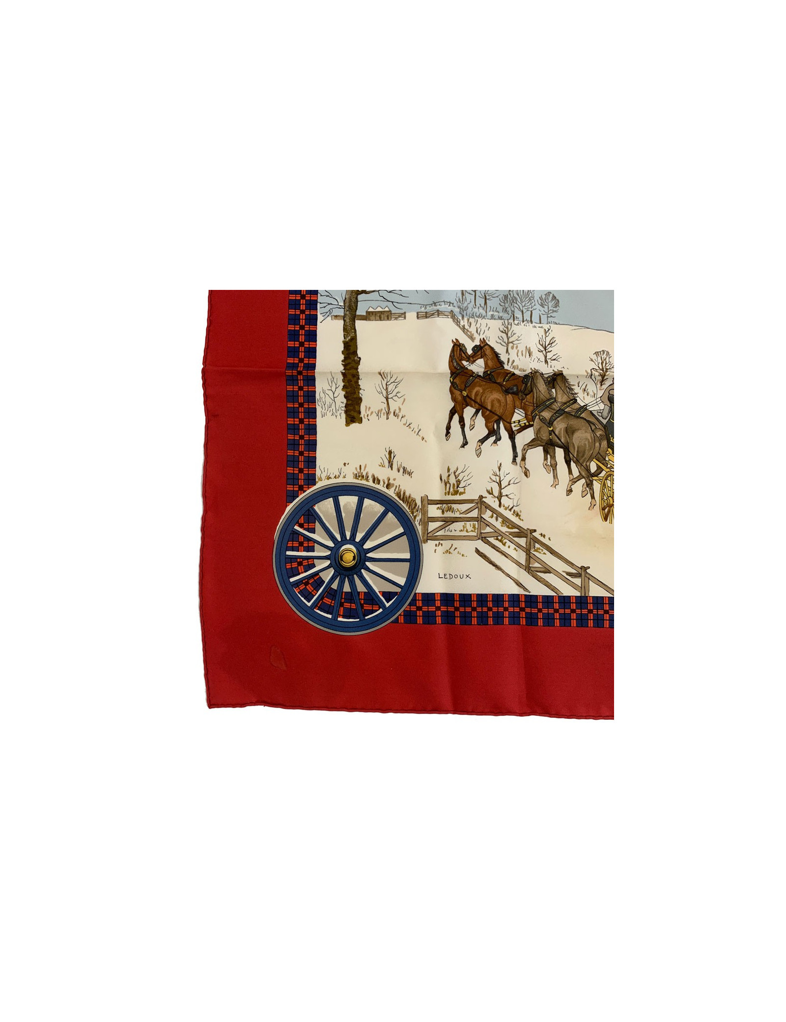 Carré rouge HERMES 'L'Hiver en Poste' en soie