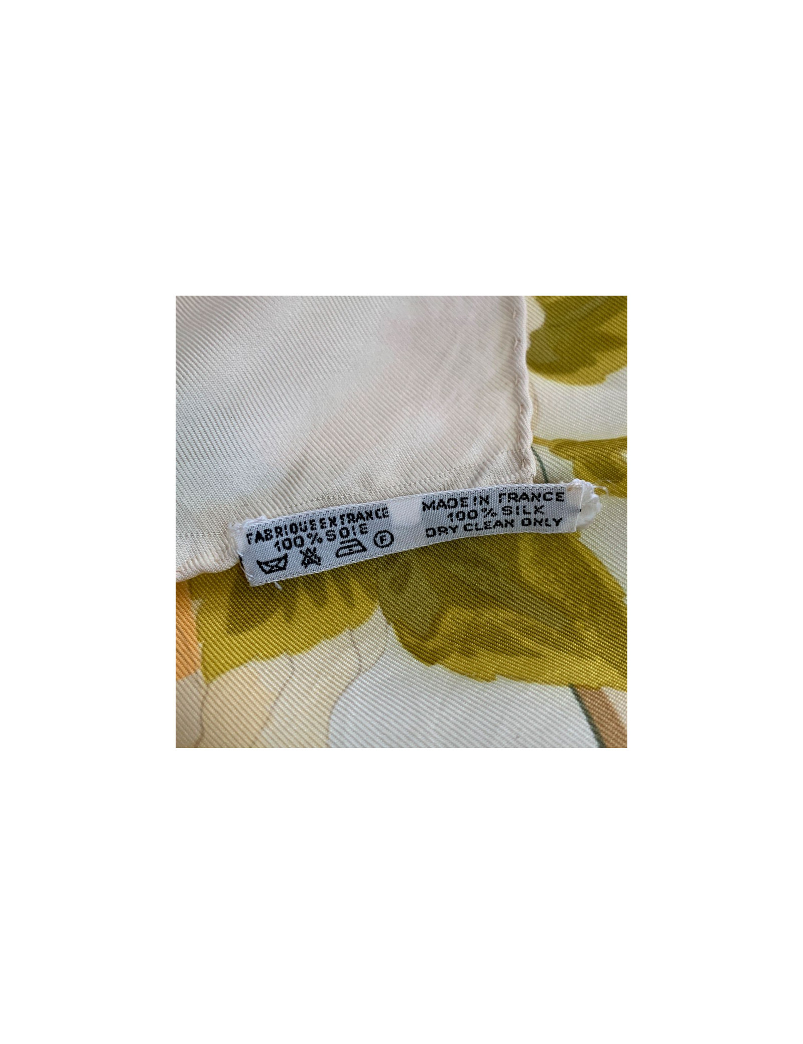 Très beau carré vintage de la Maison HERMES en twill de soie à dominante beige. Il représente une végétation florale et a été dessiné par Maurice Tranchant.