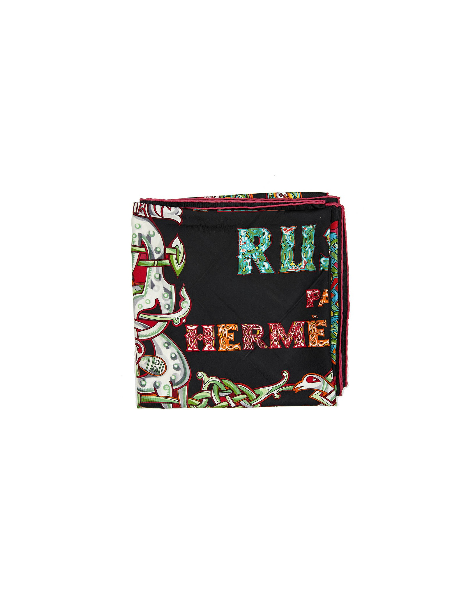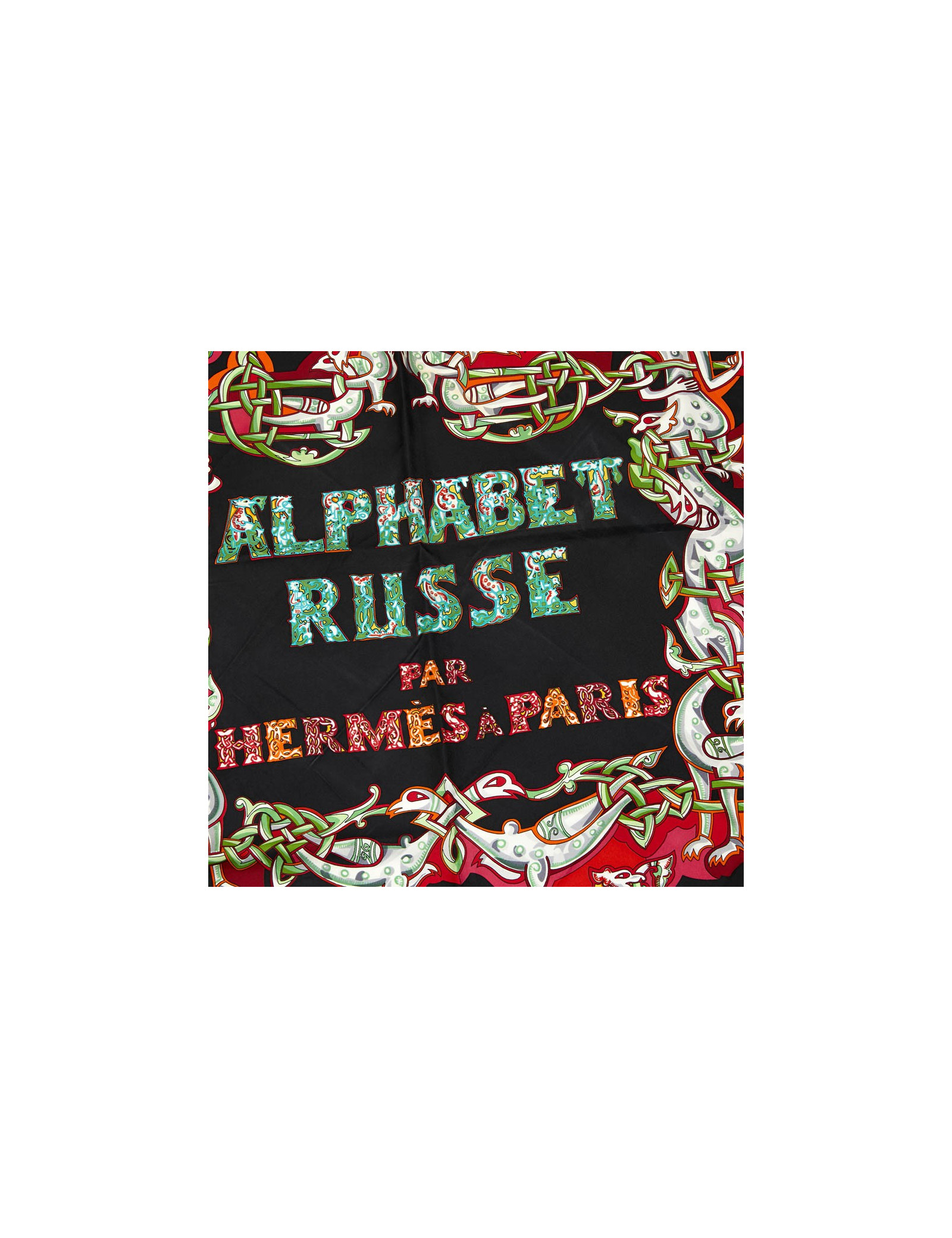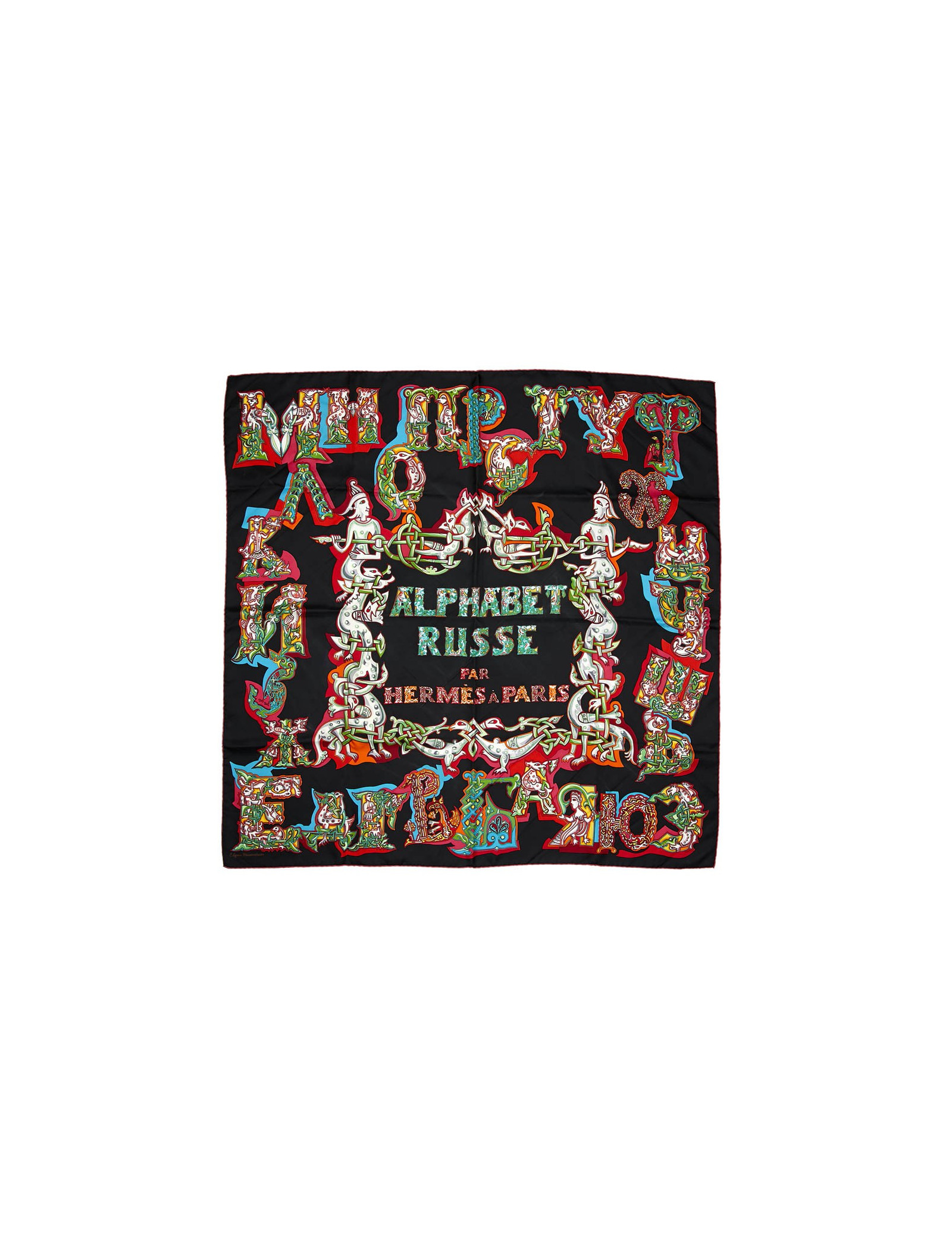 Collector. Carré L'Alphabet Russe HERMES en soie noire