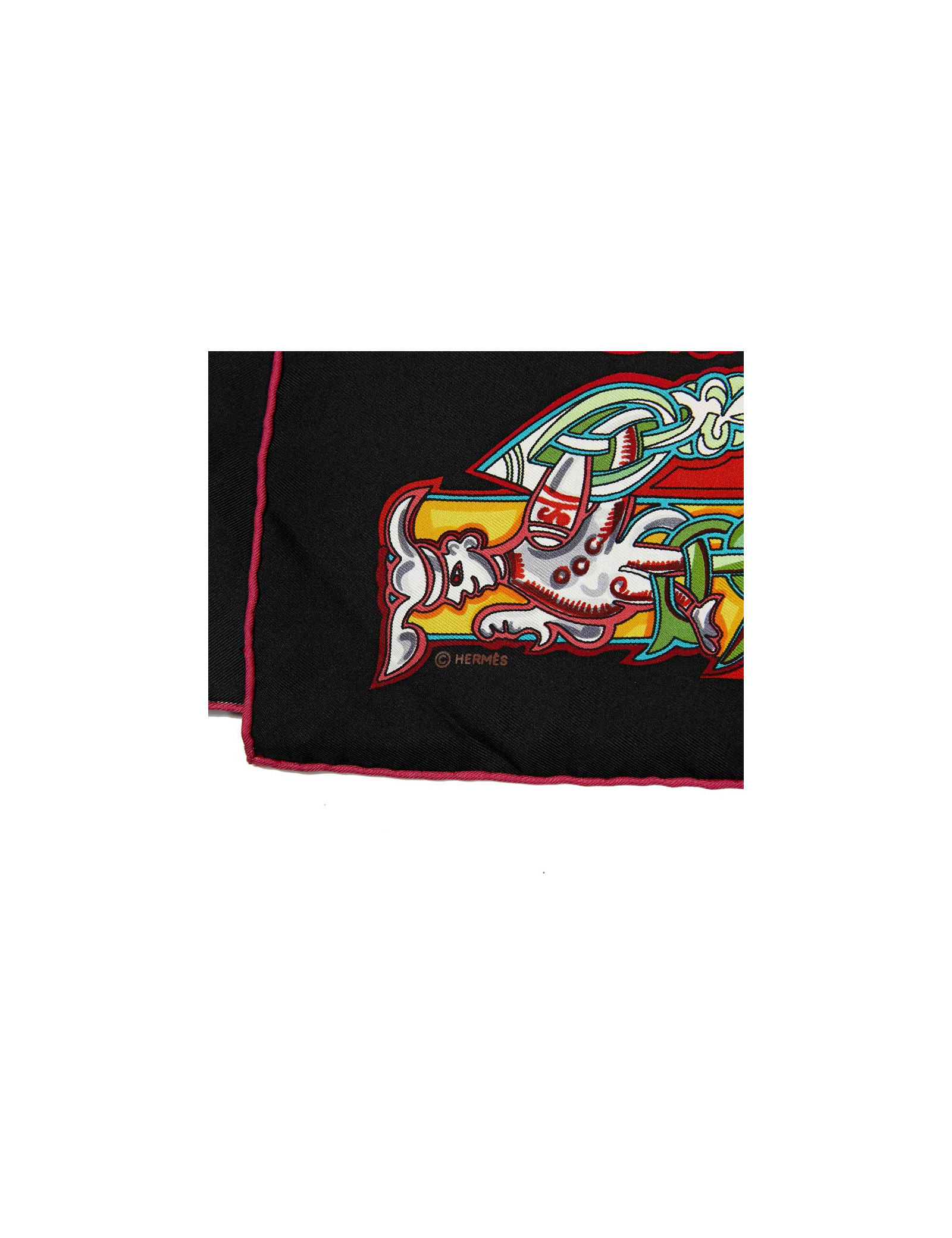 Carré L'Alphabet Russe HERMES en soie noire et multicolore
