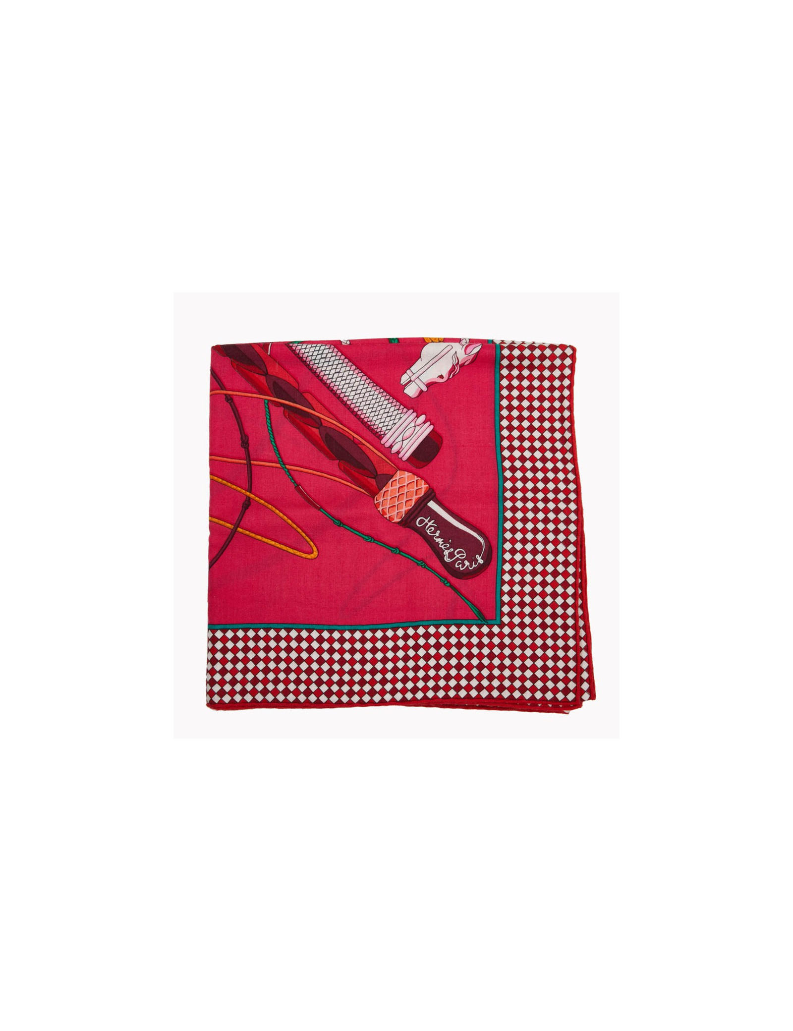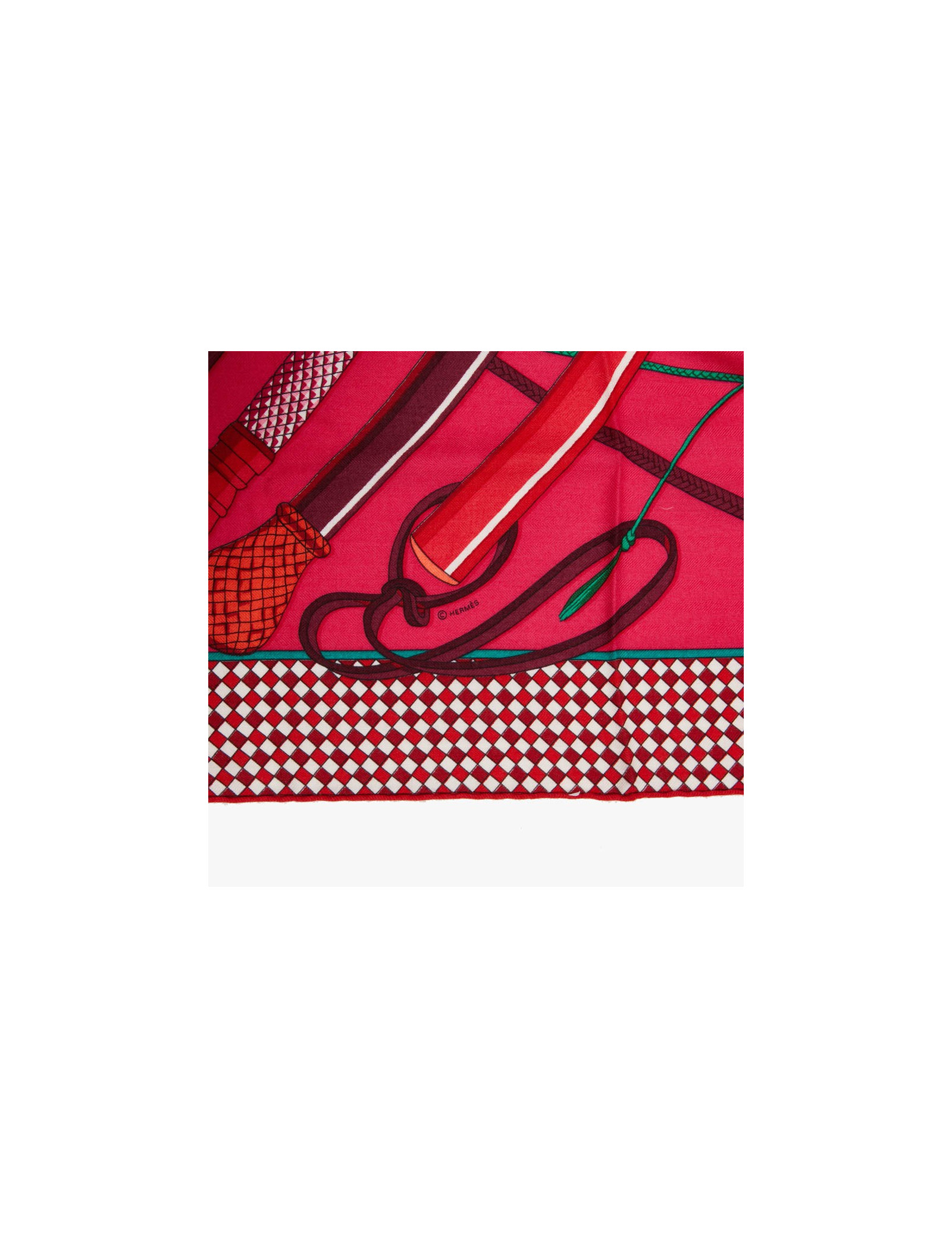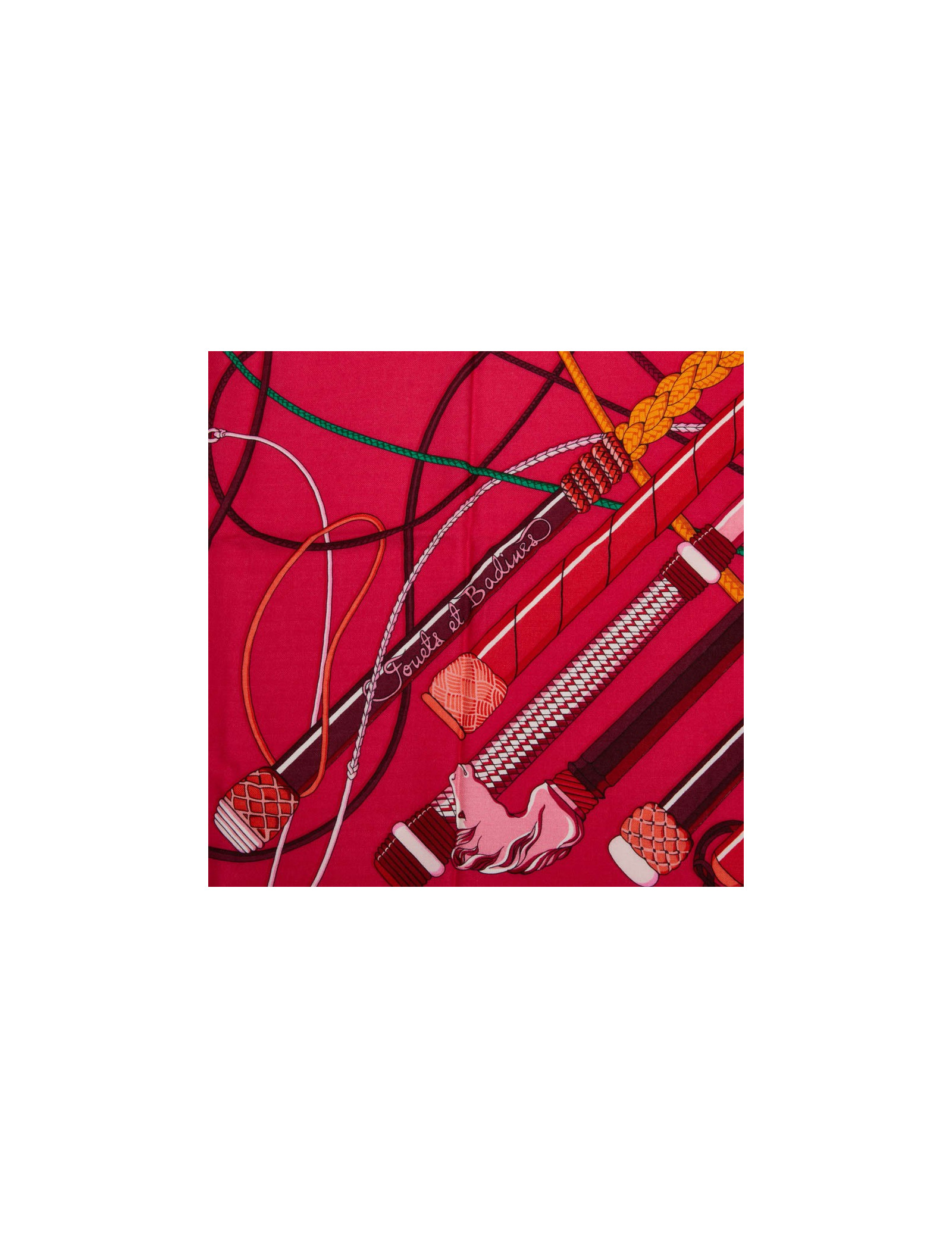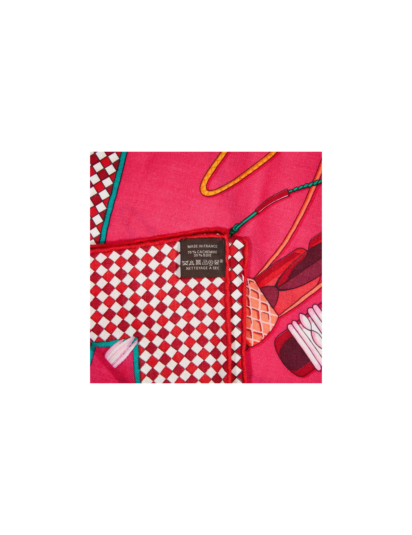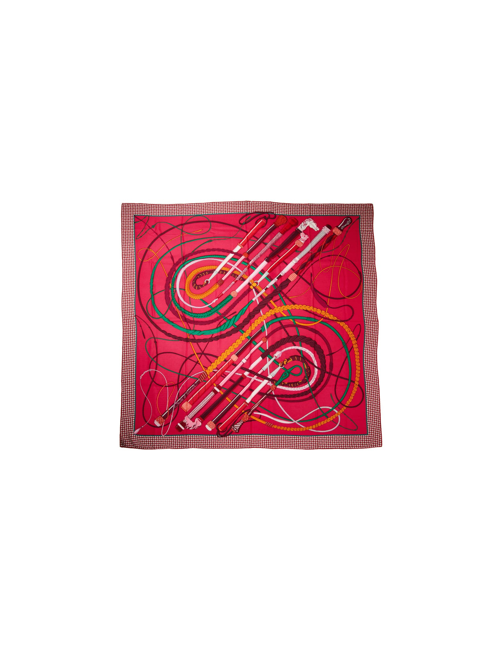 Ce grand châle Hermès est intitulé "fouets et badines", du XIX siècle. Le rose indien est la couleur prédominante. Il n'a jamais été porté.