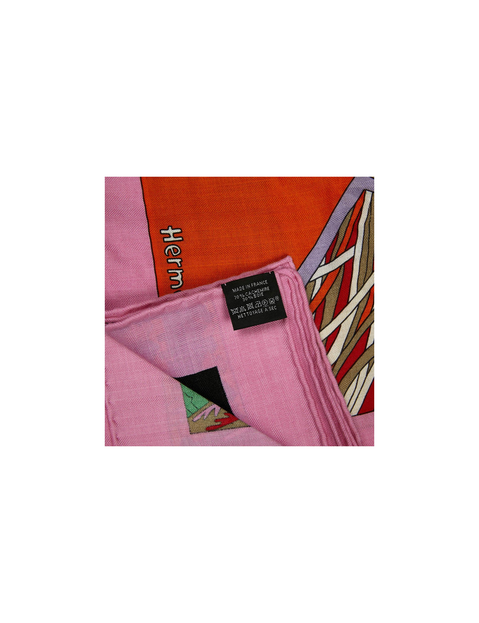 Châle HERMES A travers champs en cachemire rose