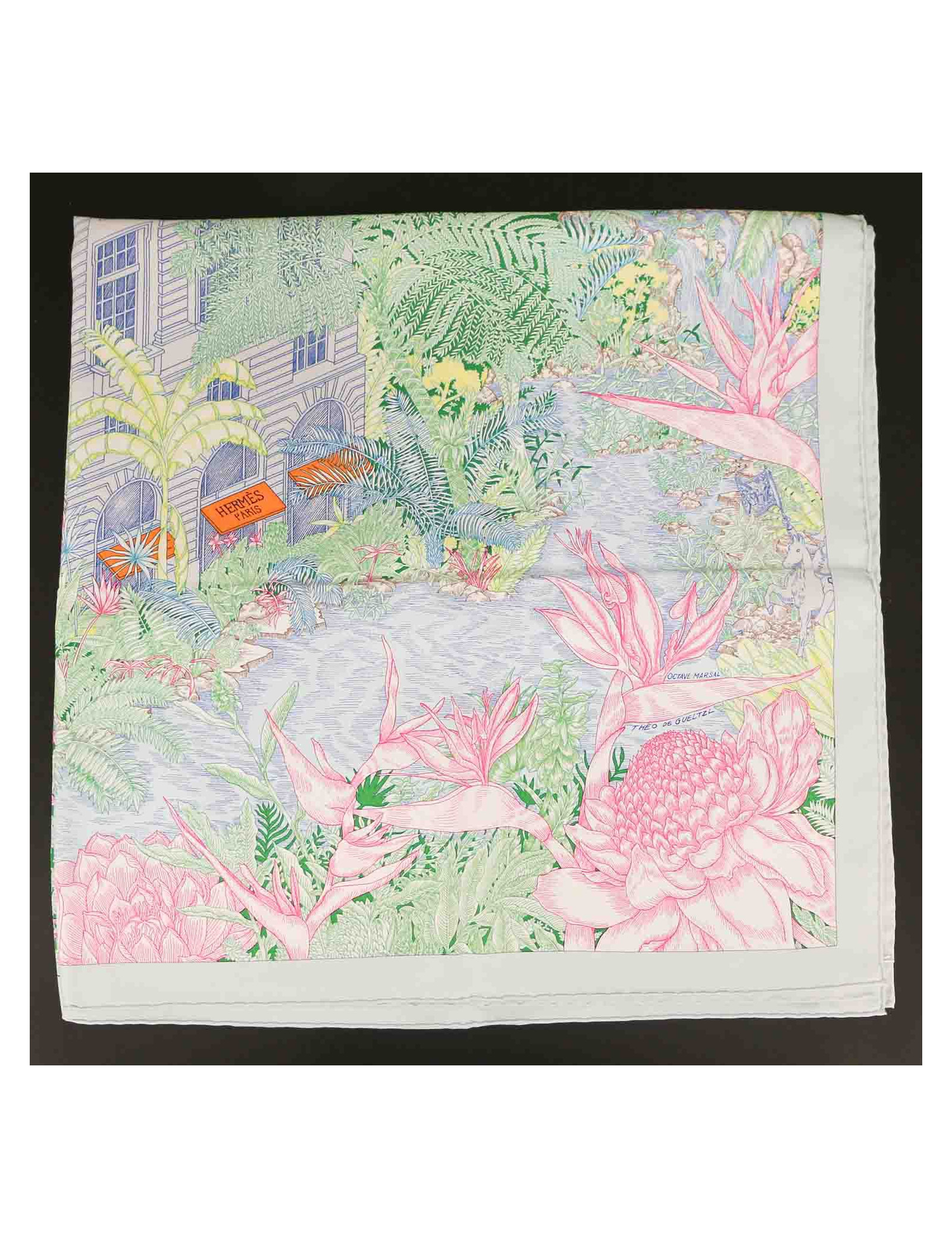 Derniers articles en stock FOULARD/ECHARPE Carré Régina HERMES soie HERMES 35471 940,00 € Rarissime carré Régina HERMES fleurs Condition : bon étatPays de fabrication : FranceMatière : 100% soieCouleur : rose pâle, vert, écruDimensions : 90 x 90 cmDesigner : Leïla MenchariAnnée : 1972Détails : Ce carré est très rare ! étiquette de composition absente. Le roulotté est en bon état, il y a des petites tâches sur les coins du foulards sur la... Ajouter au panier