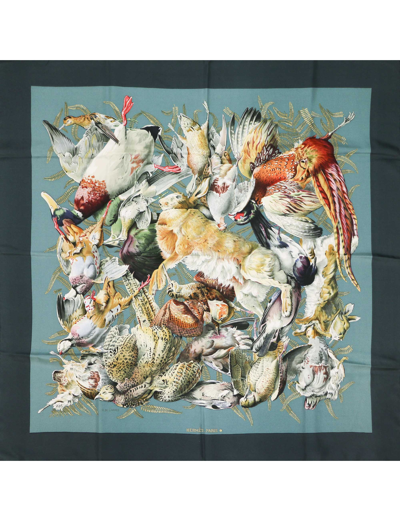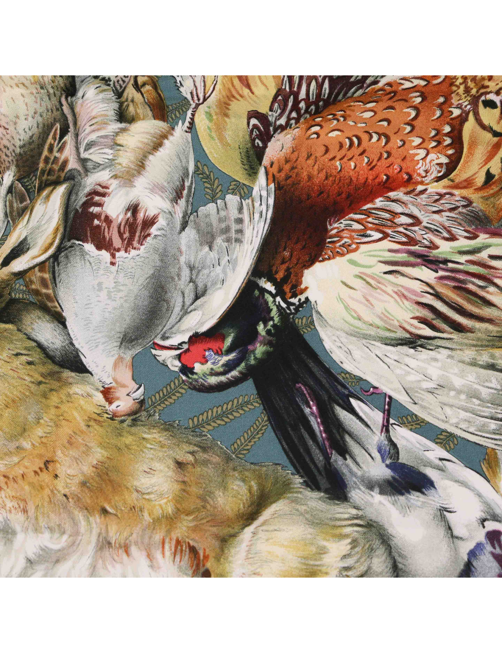 Le motif représente les trophées de la chasse : faisan, lapin, canard...