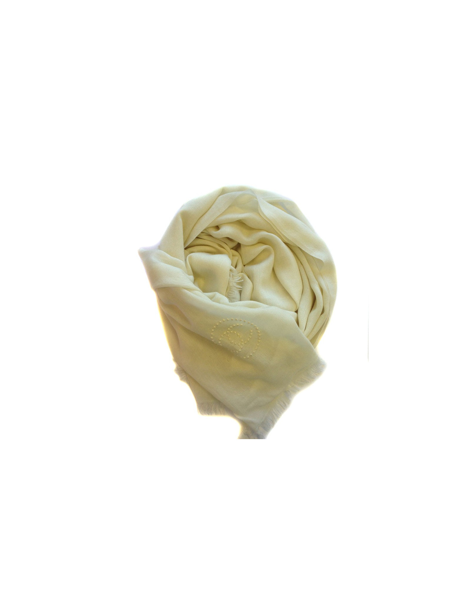Etole CHANEL écrue à bords frangés en cachemire, soie et laine
