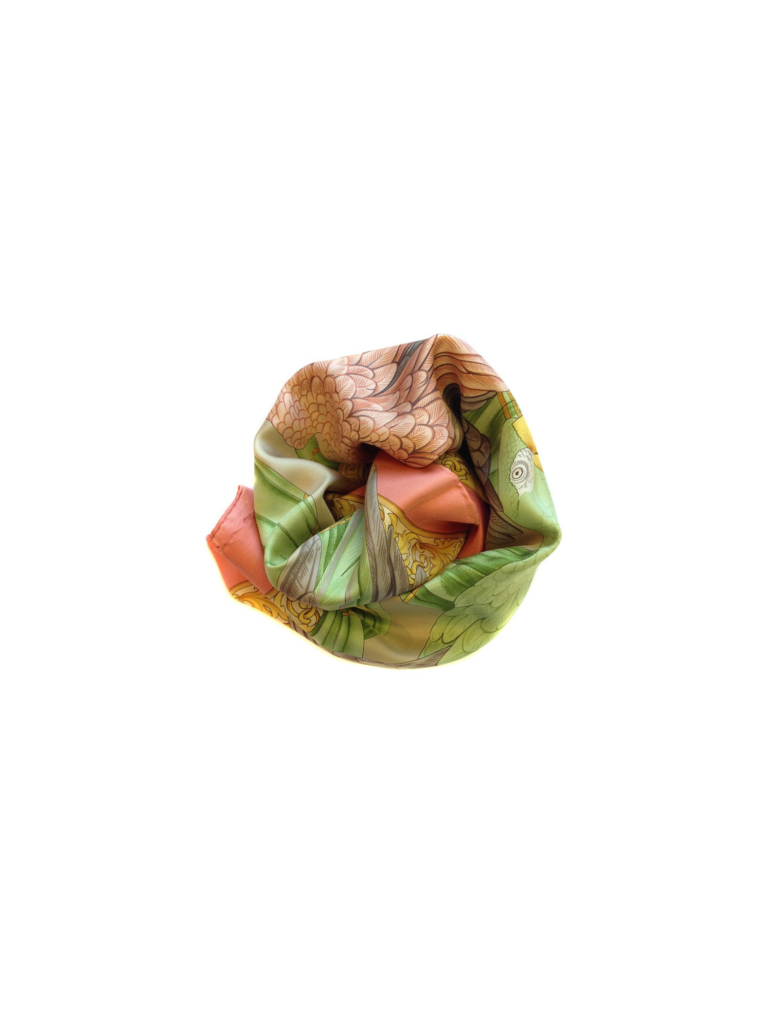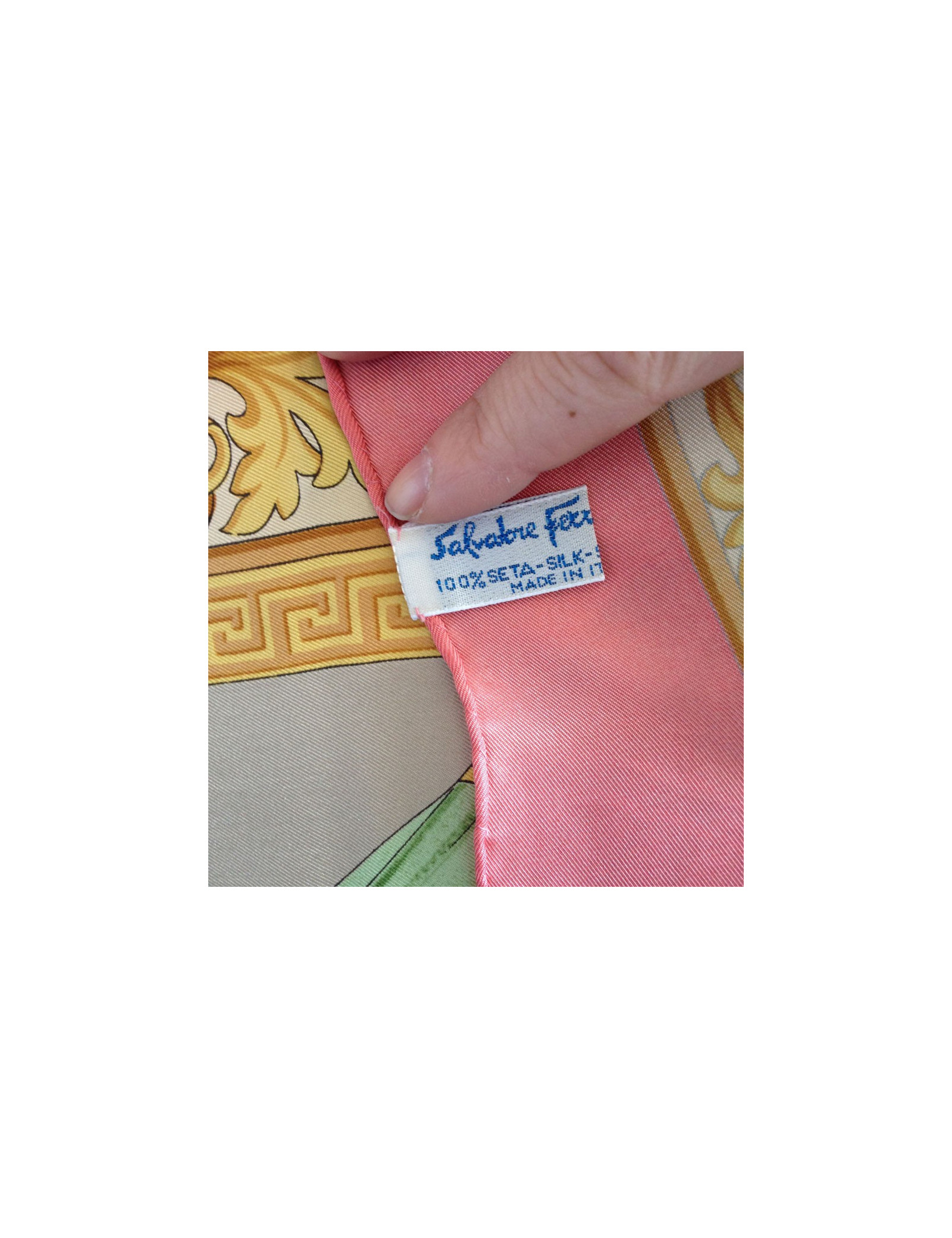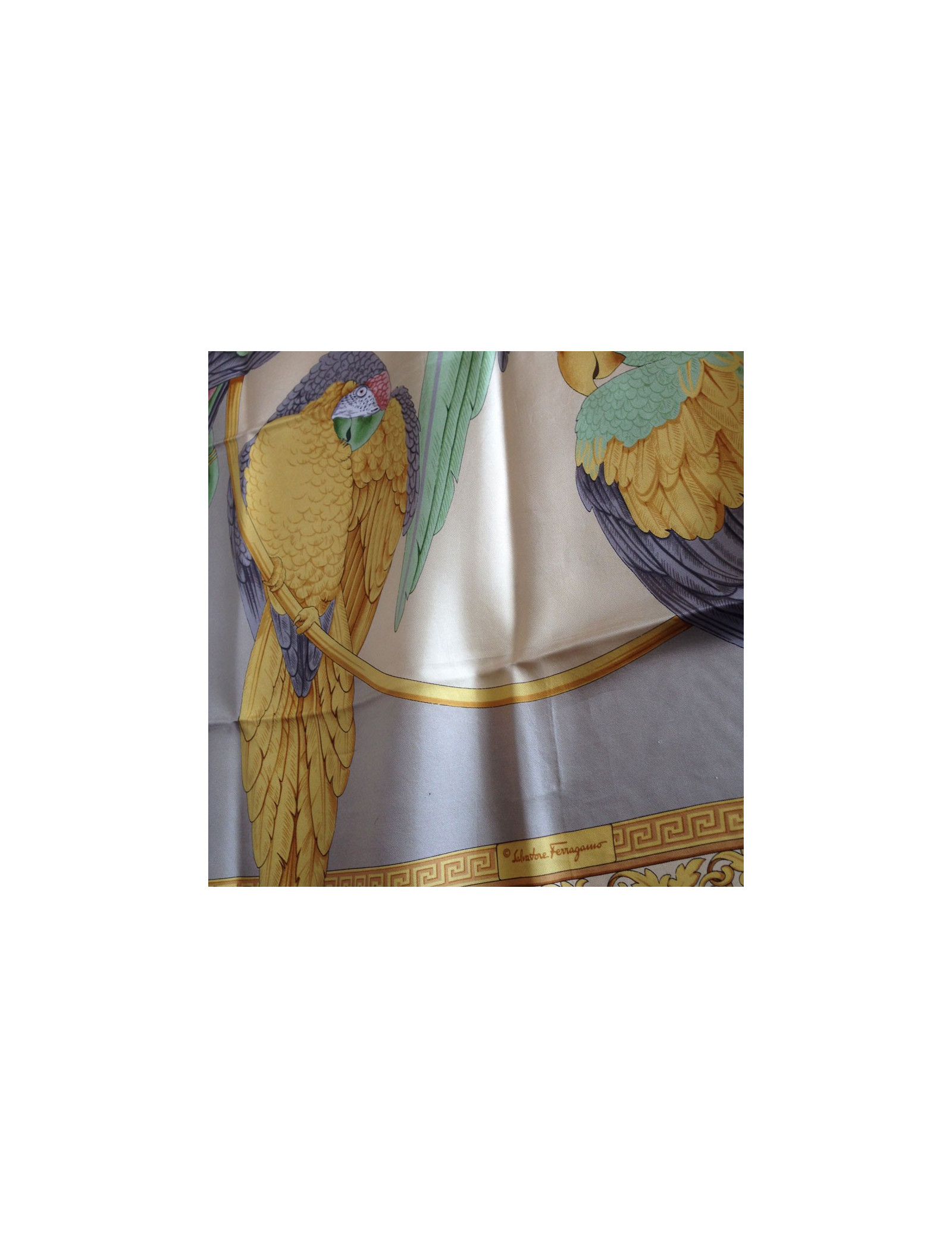 Carré de soie SALVATORE FERRAGAMO motif perroquets roses vintage