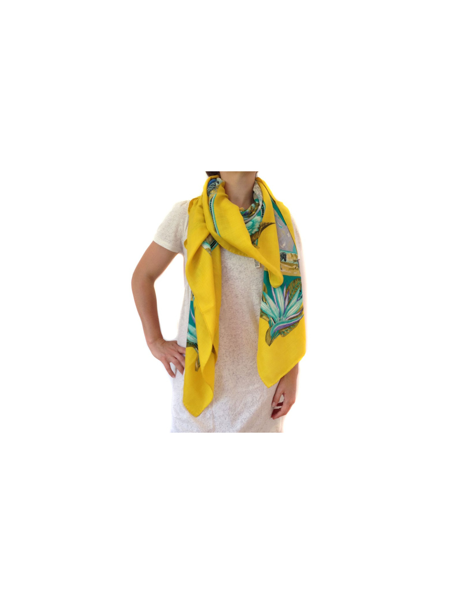 Châle HERMES "Tropiques" en cachemire et soie jaune