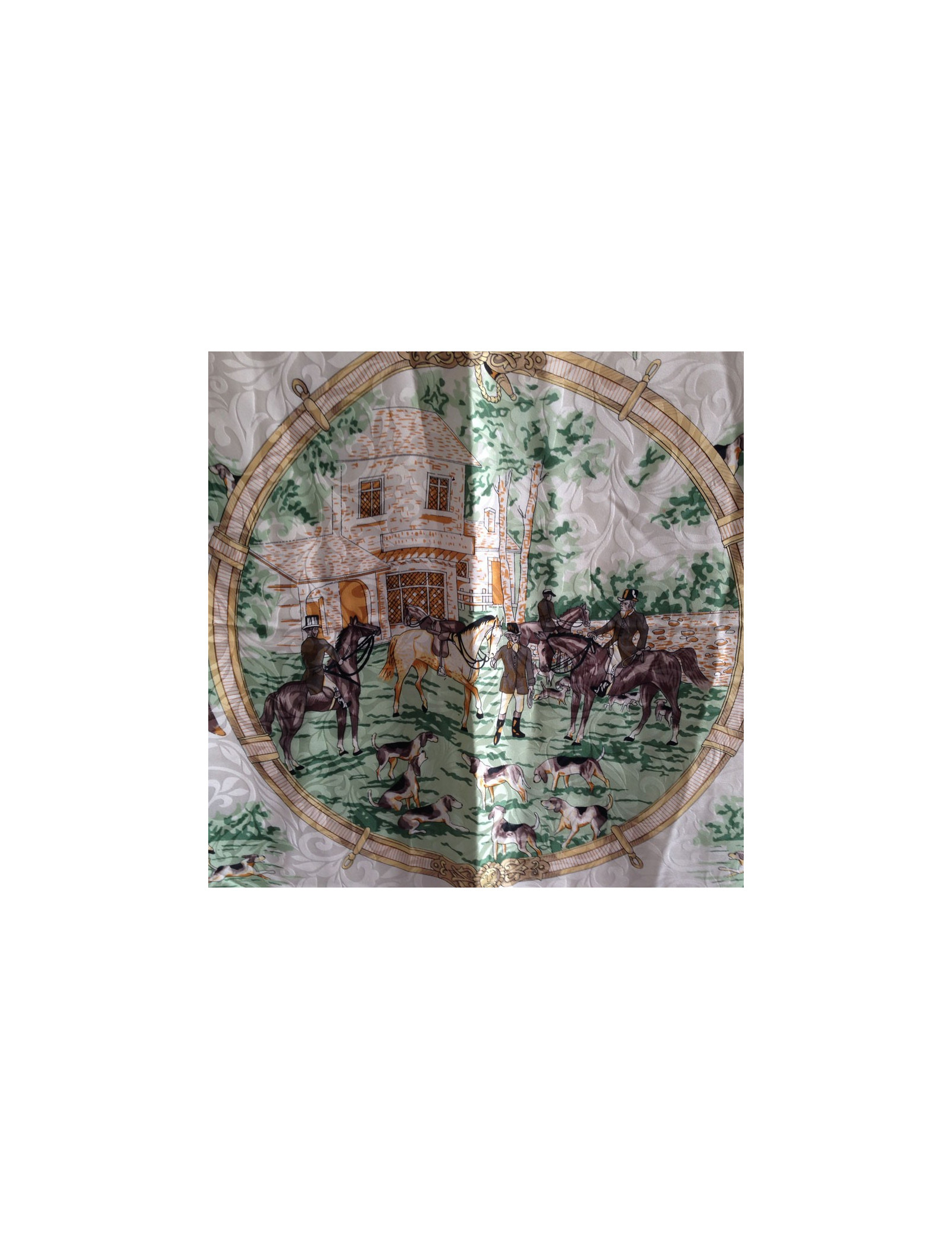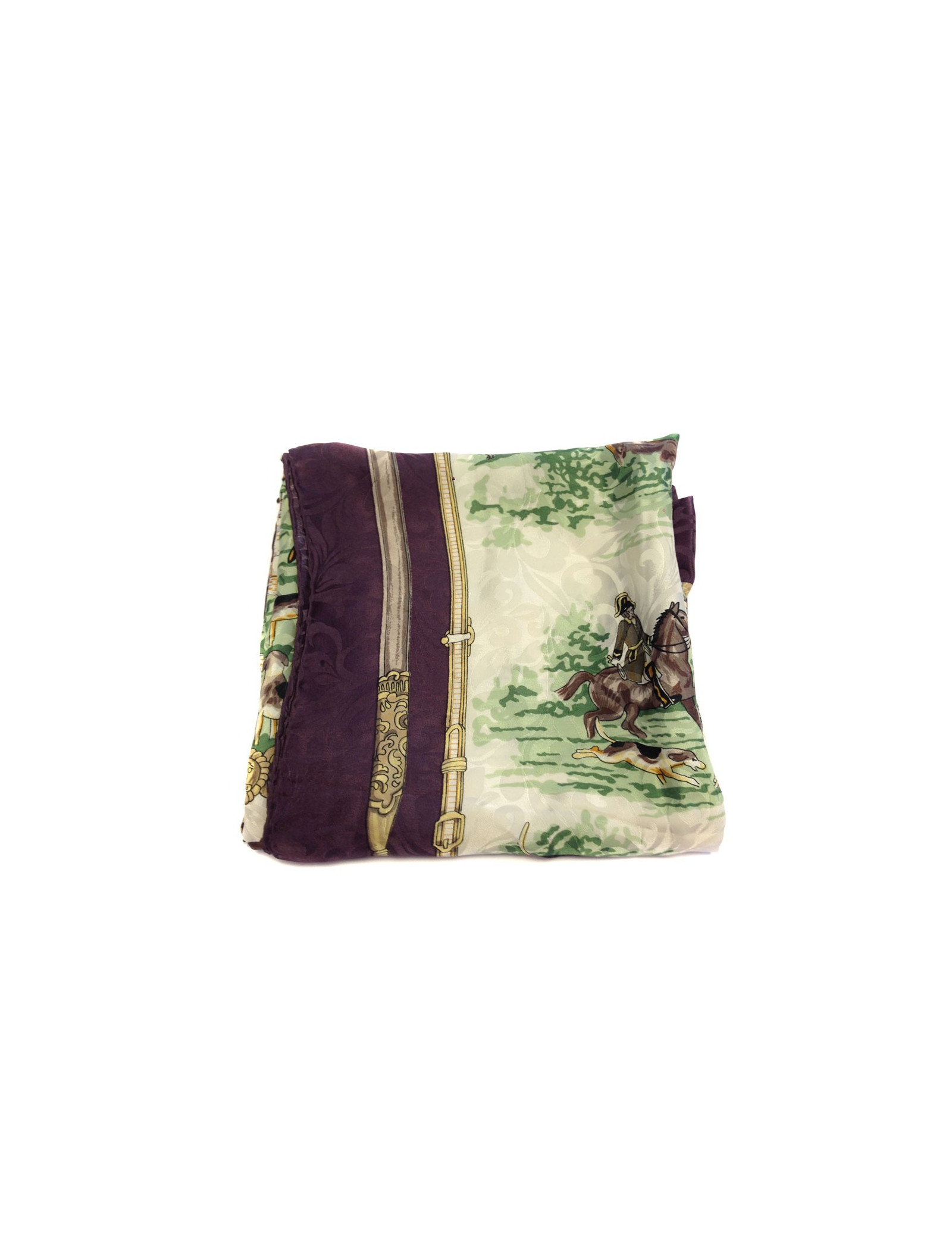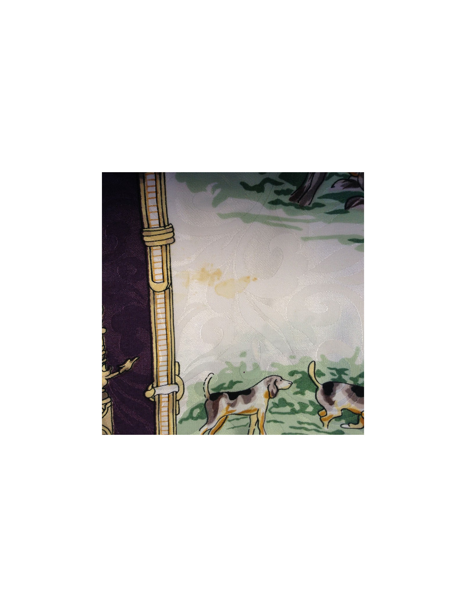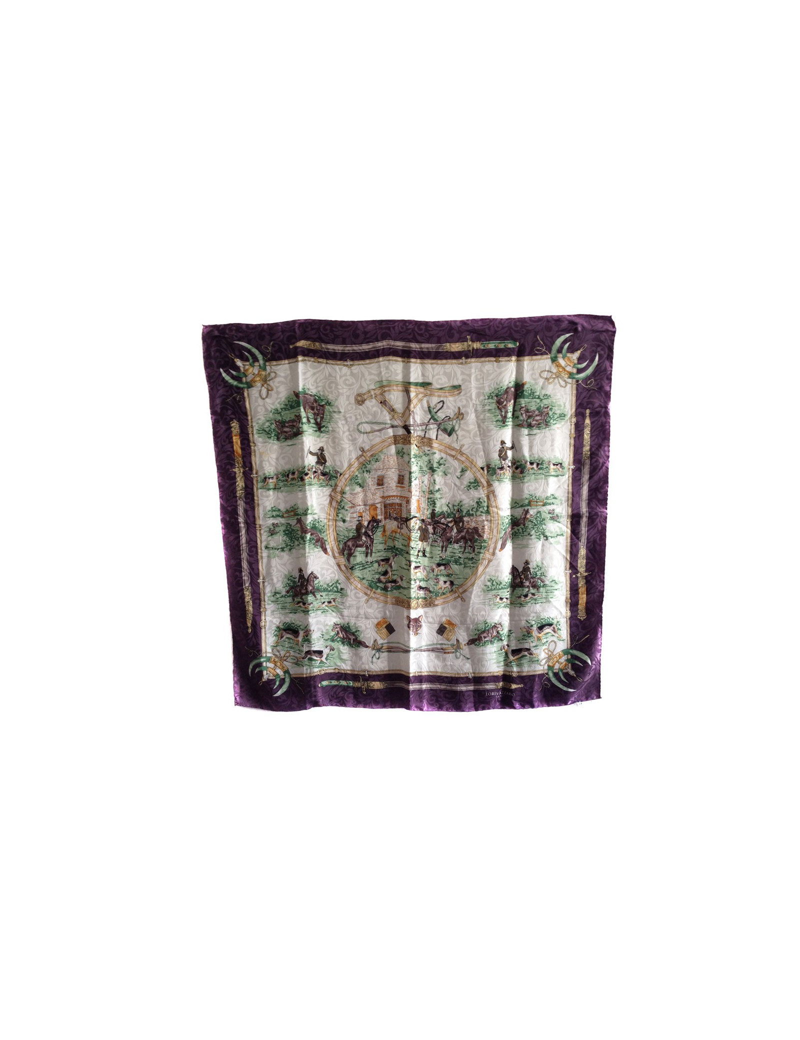 Beau foulard LORIS AZZARO en soie lourde. Bordure prune et fond ivoire.