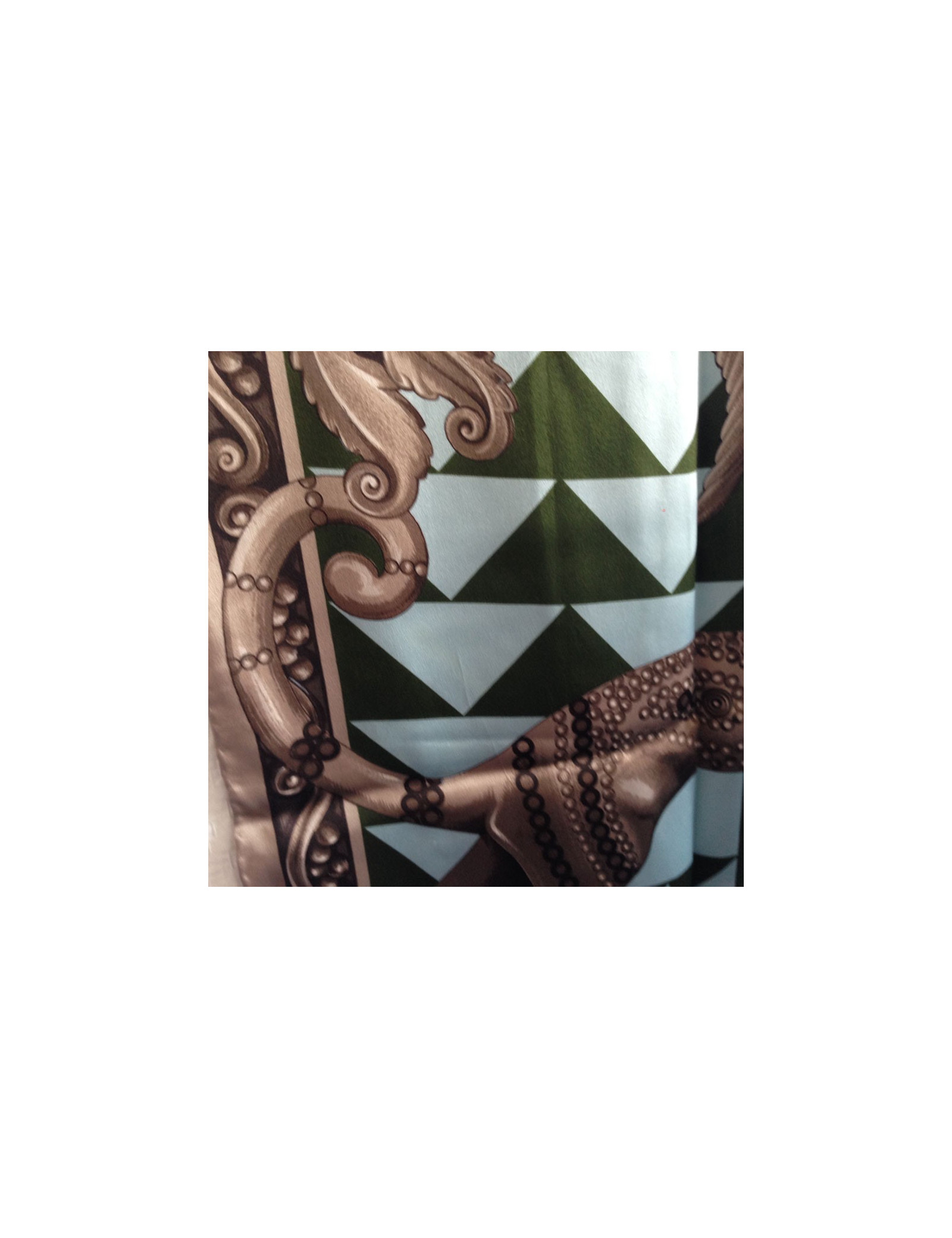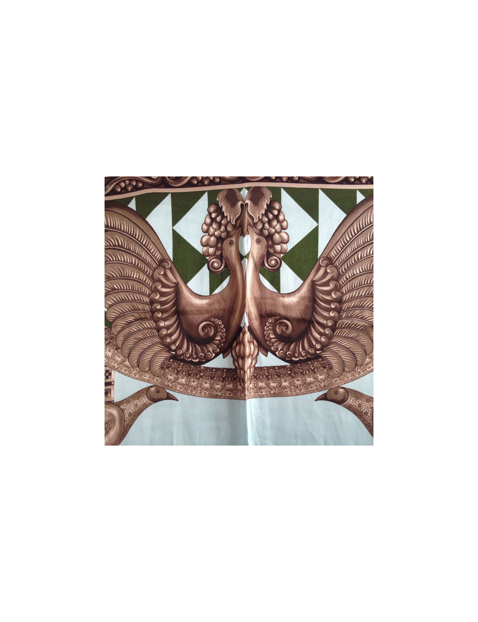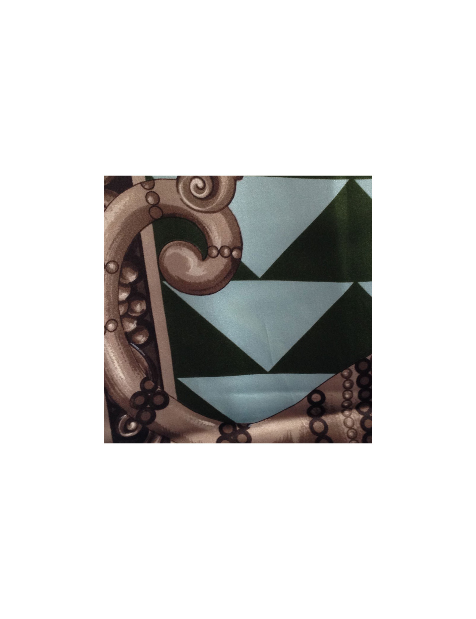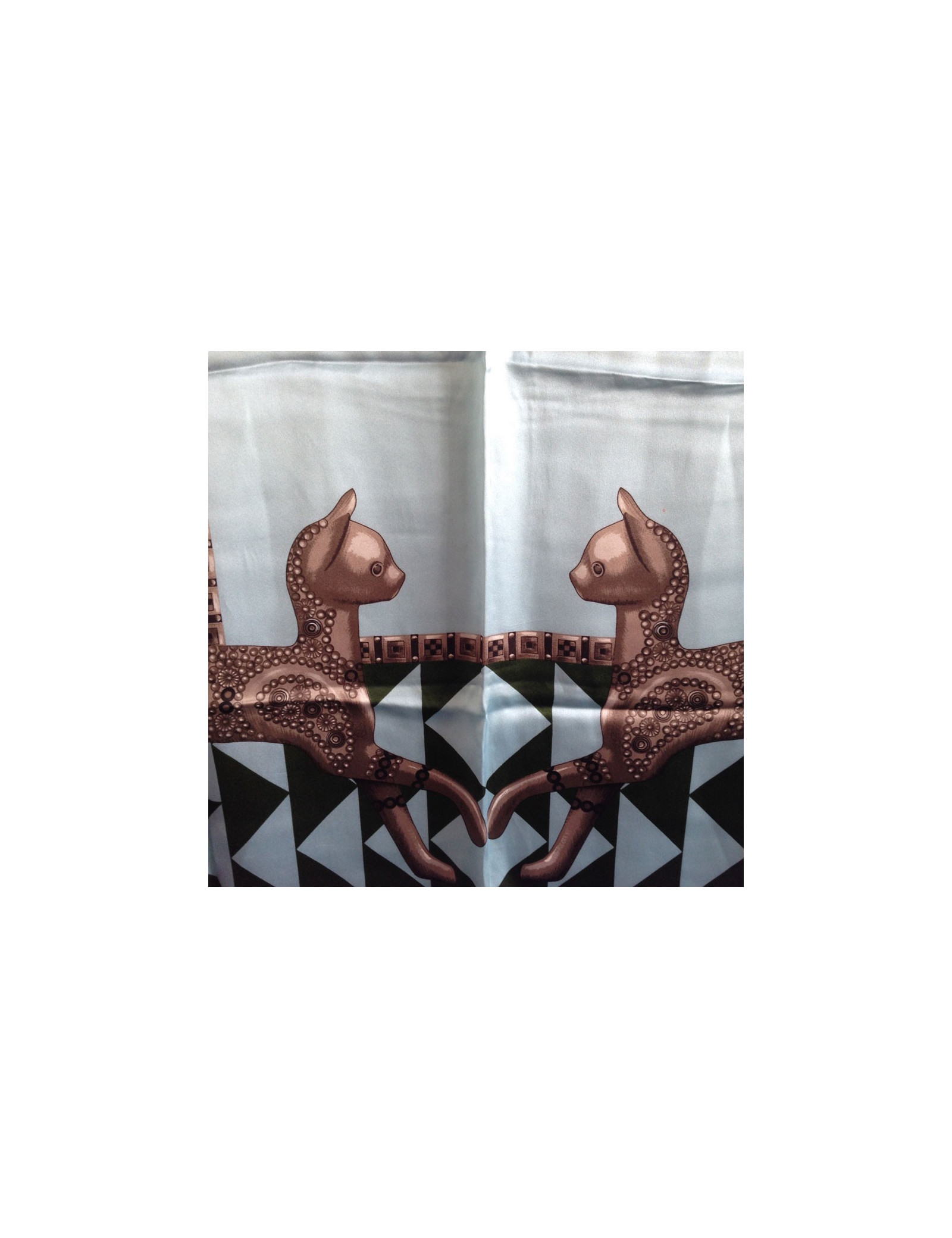Foulard LANVIN en soie bronze et bleu. Le roulotté est en bon état, légèrement décousu sur un coin.