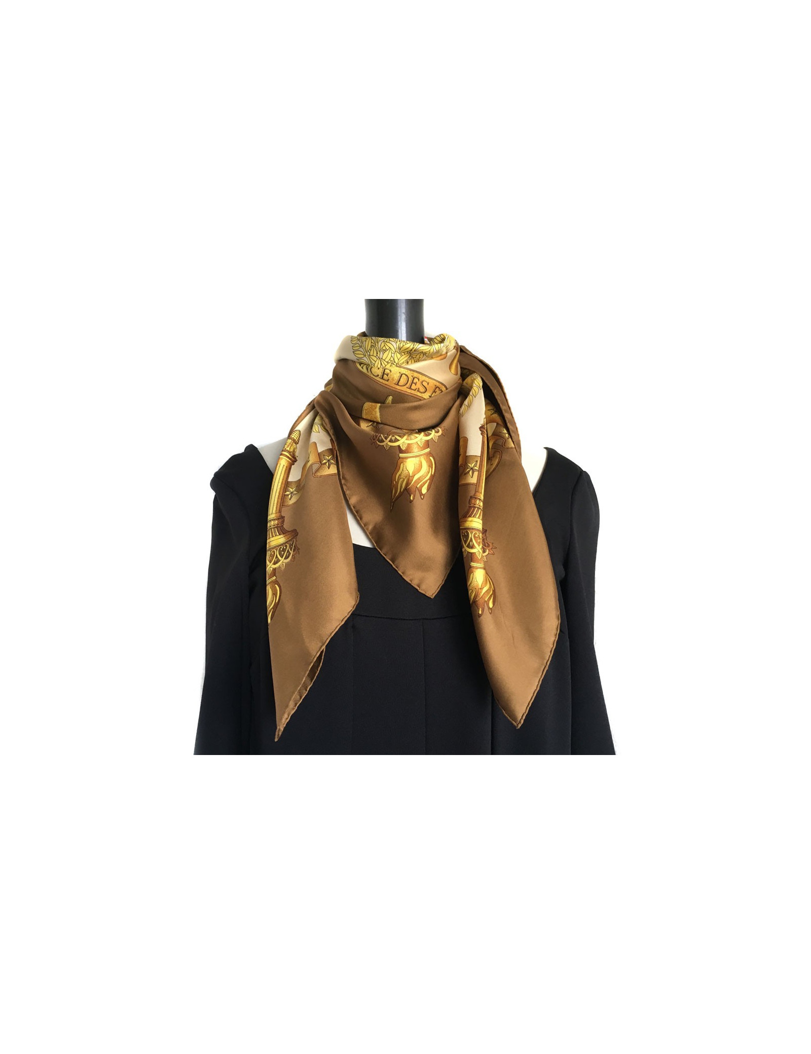Vendu FOULARD/ECHARPE Carré HERMES Gibiers soie HERMES 34995 340,00 € Carré HERMES Gibiers marron Condition : très bon étatPays de fabrication : FranceMatière : 100% soieCouleur : marron ,vertDimensions : 90 x 90 cmDesigner : Henri de LinaresAnnée : 1966, réédité en 1991,1997Détails : Vintage. Etiquette de marque non présente. Le roulotté est parfait. Voir