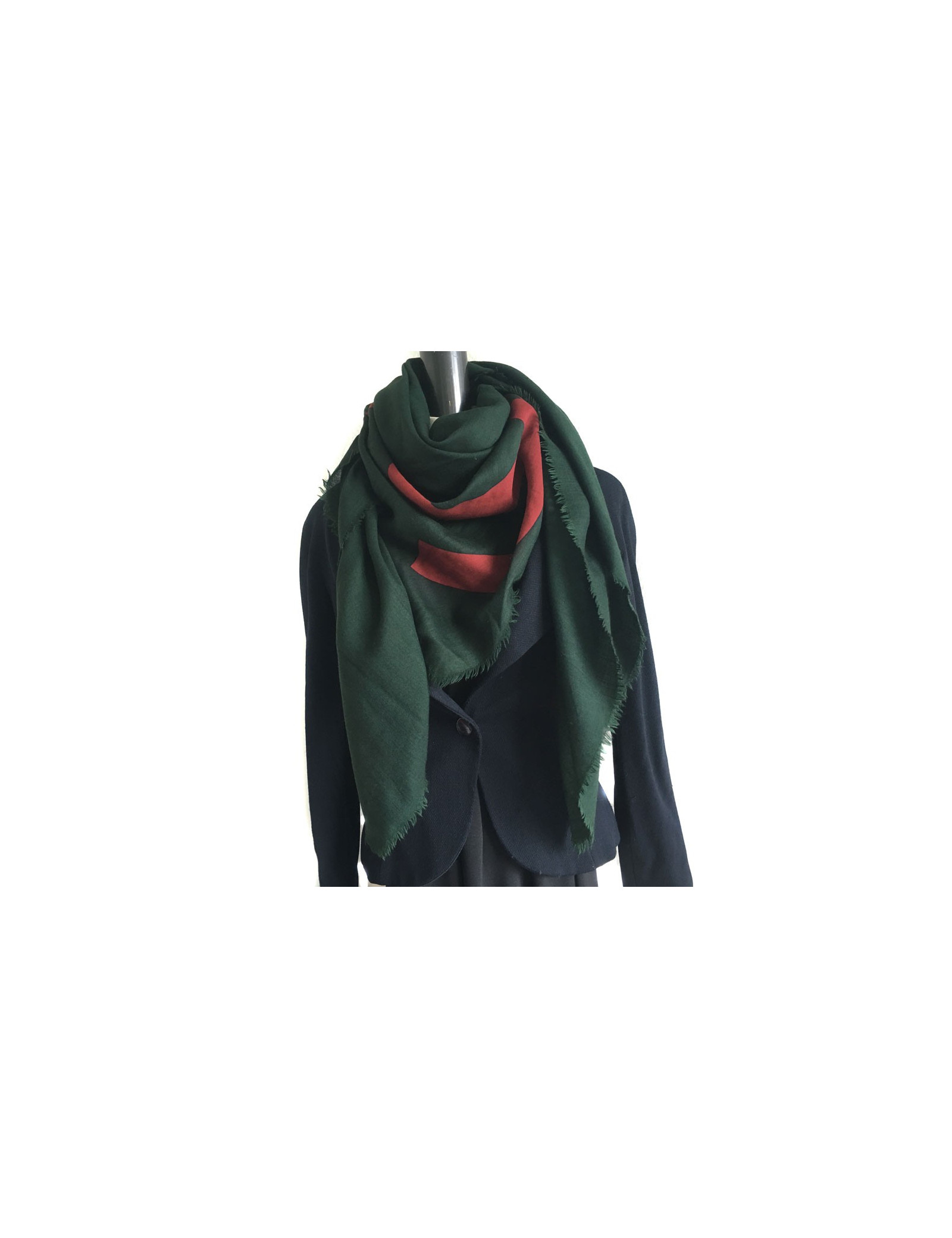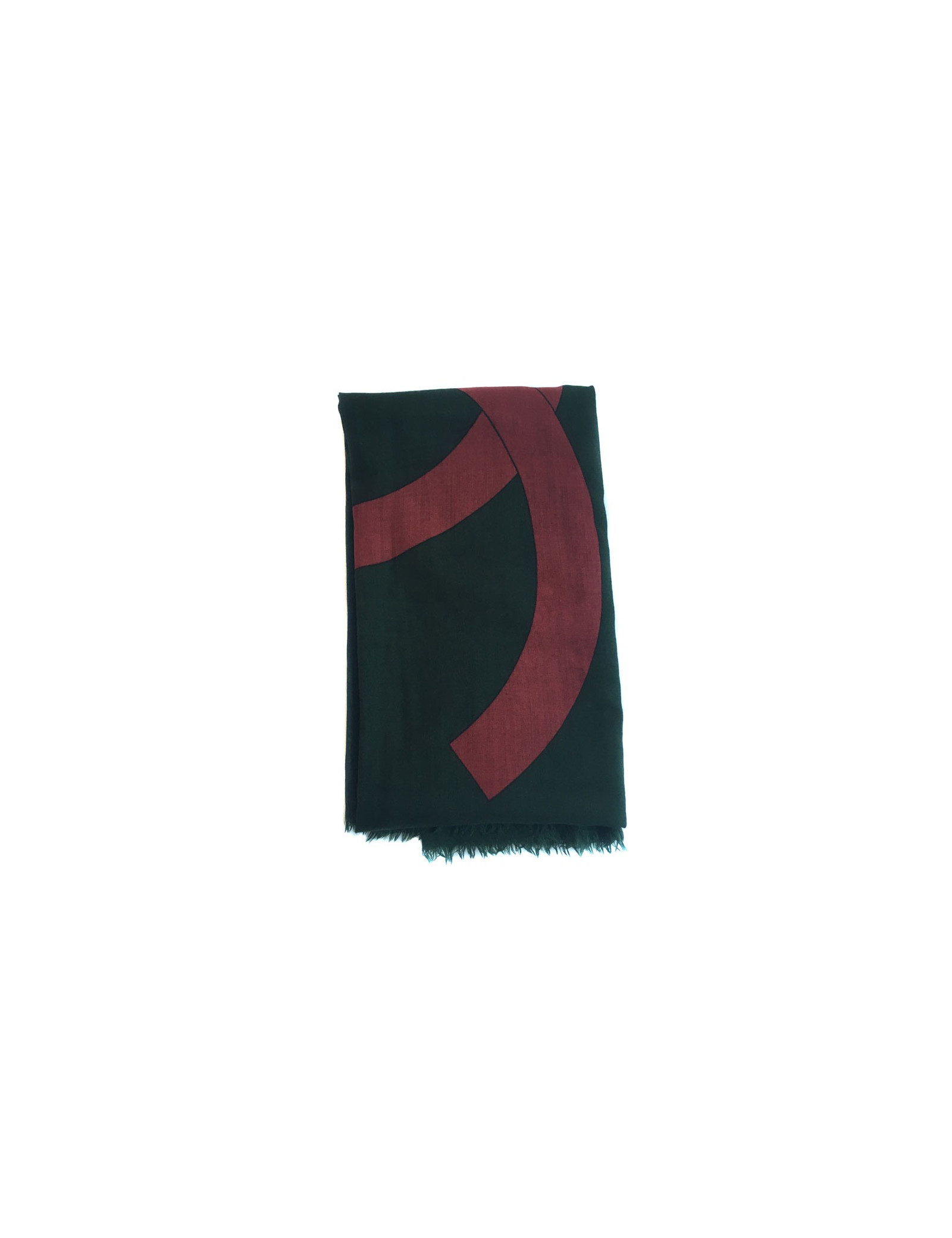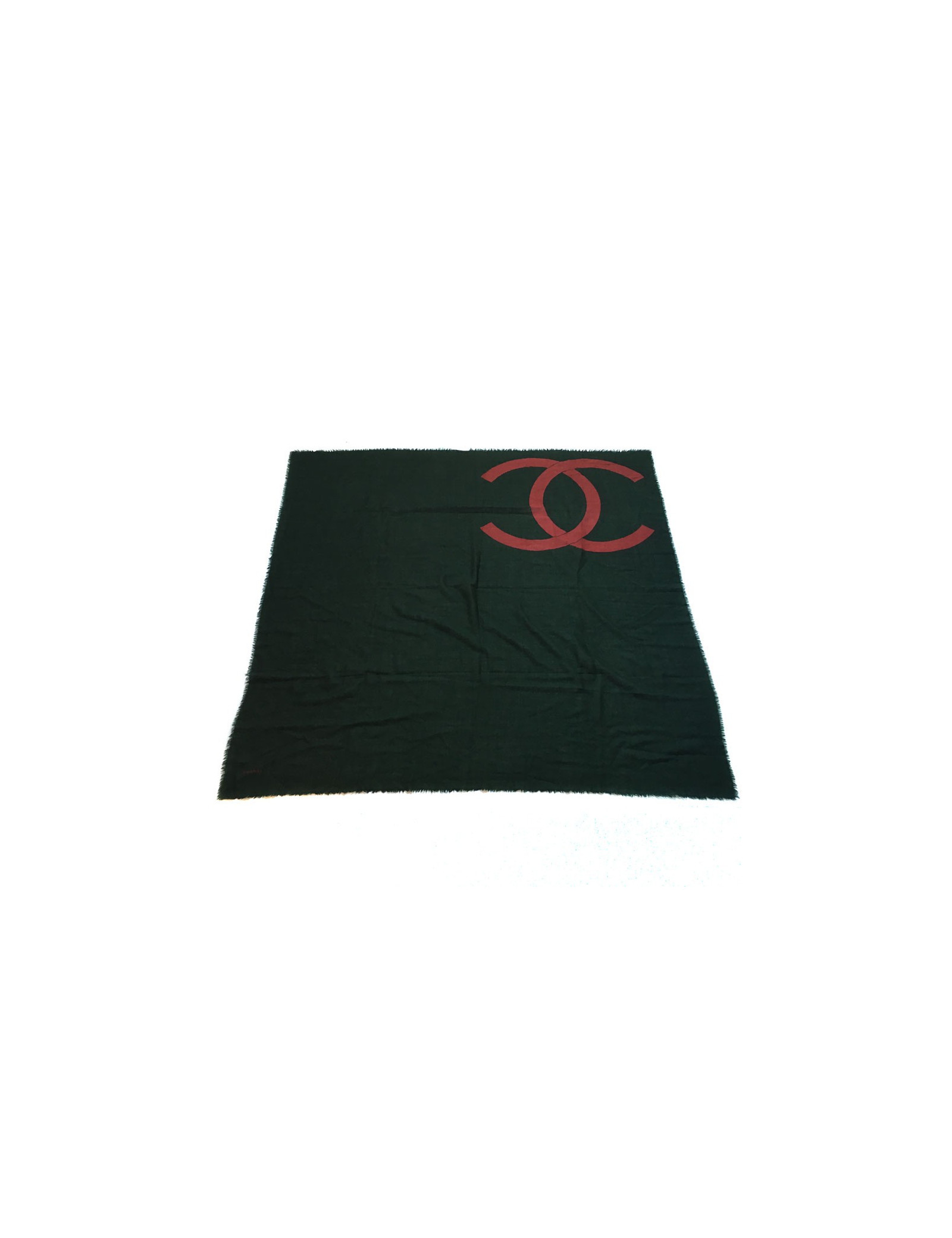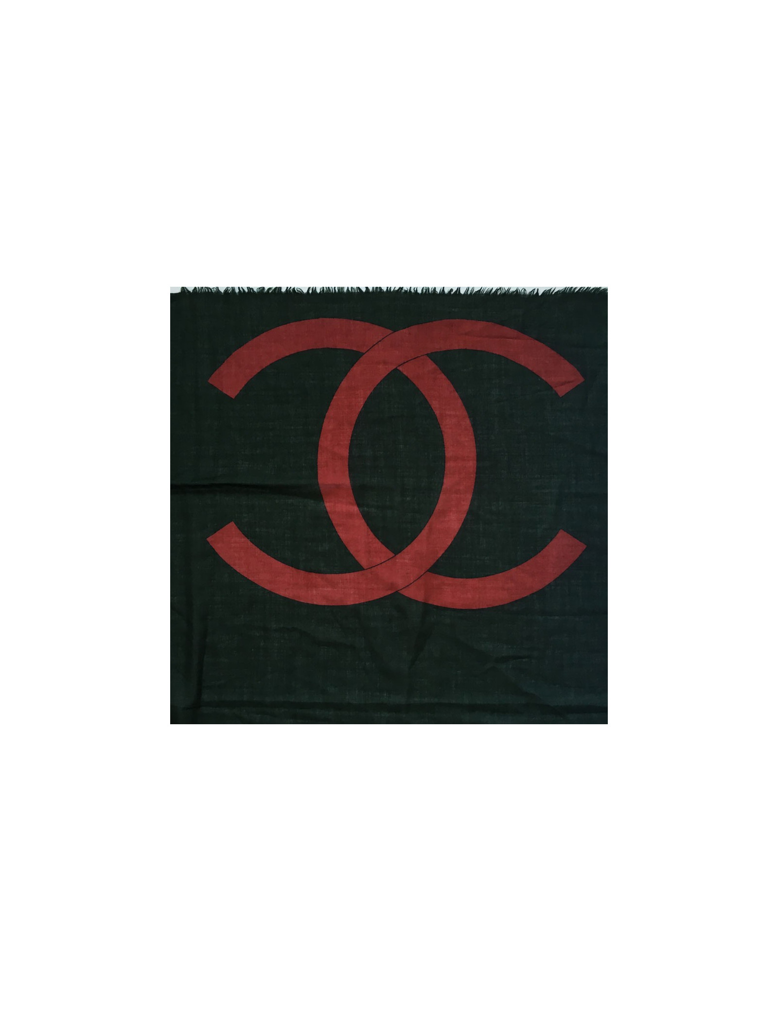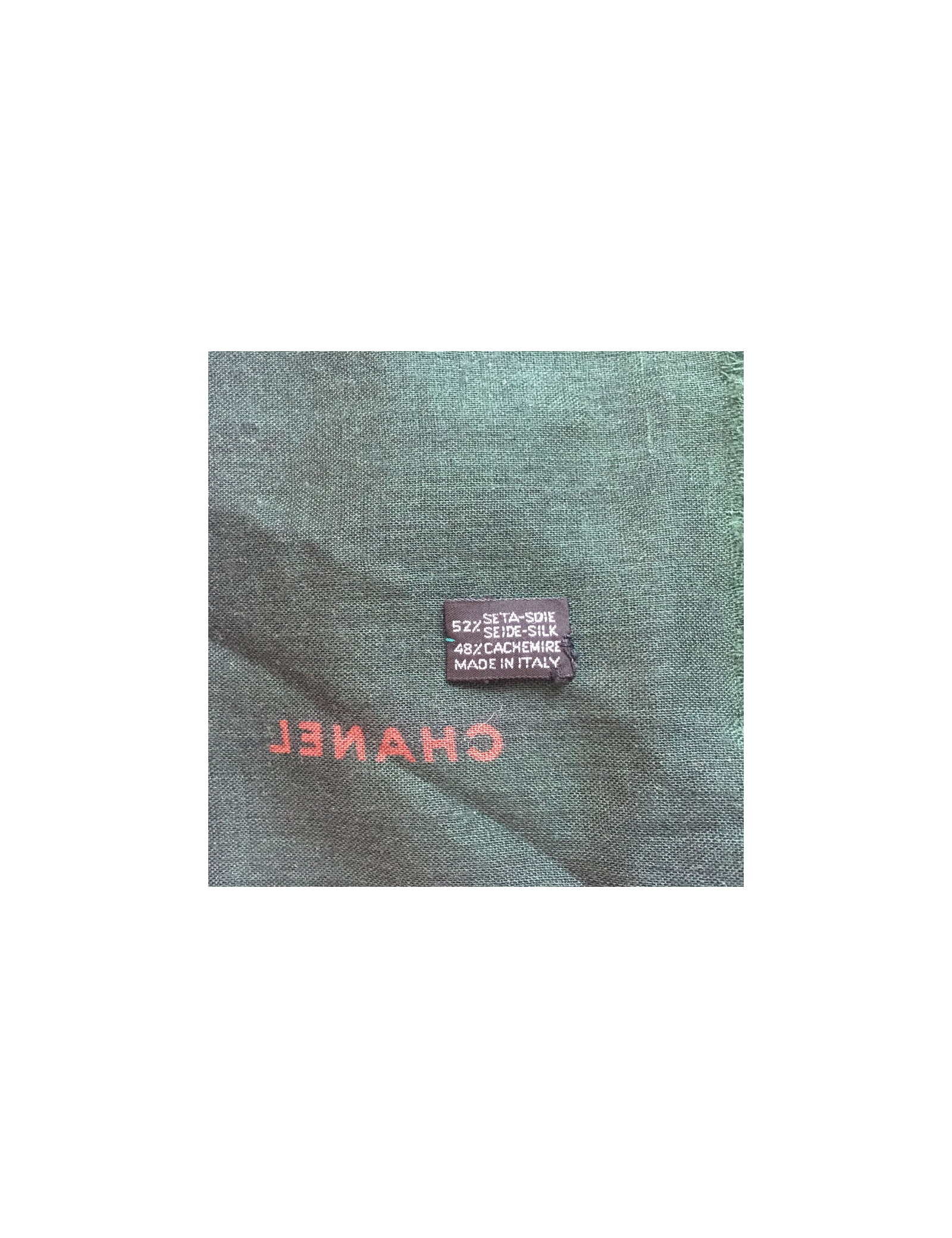 Étole CHANEL en soie et cachemire vert et rouge brique