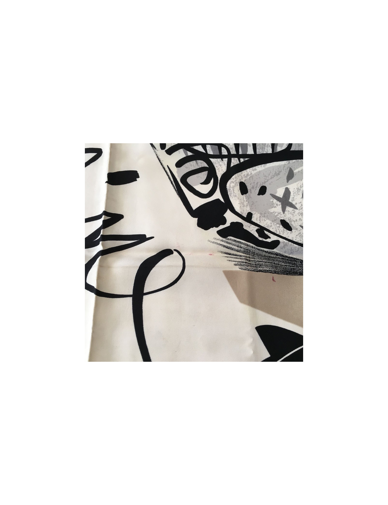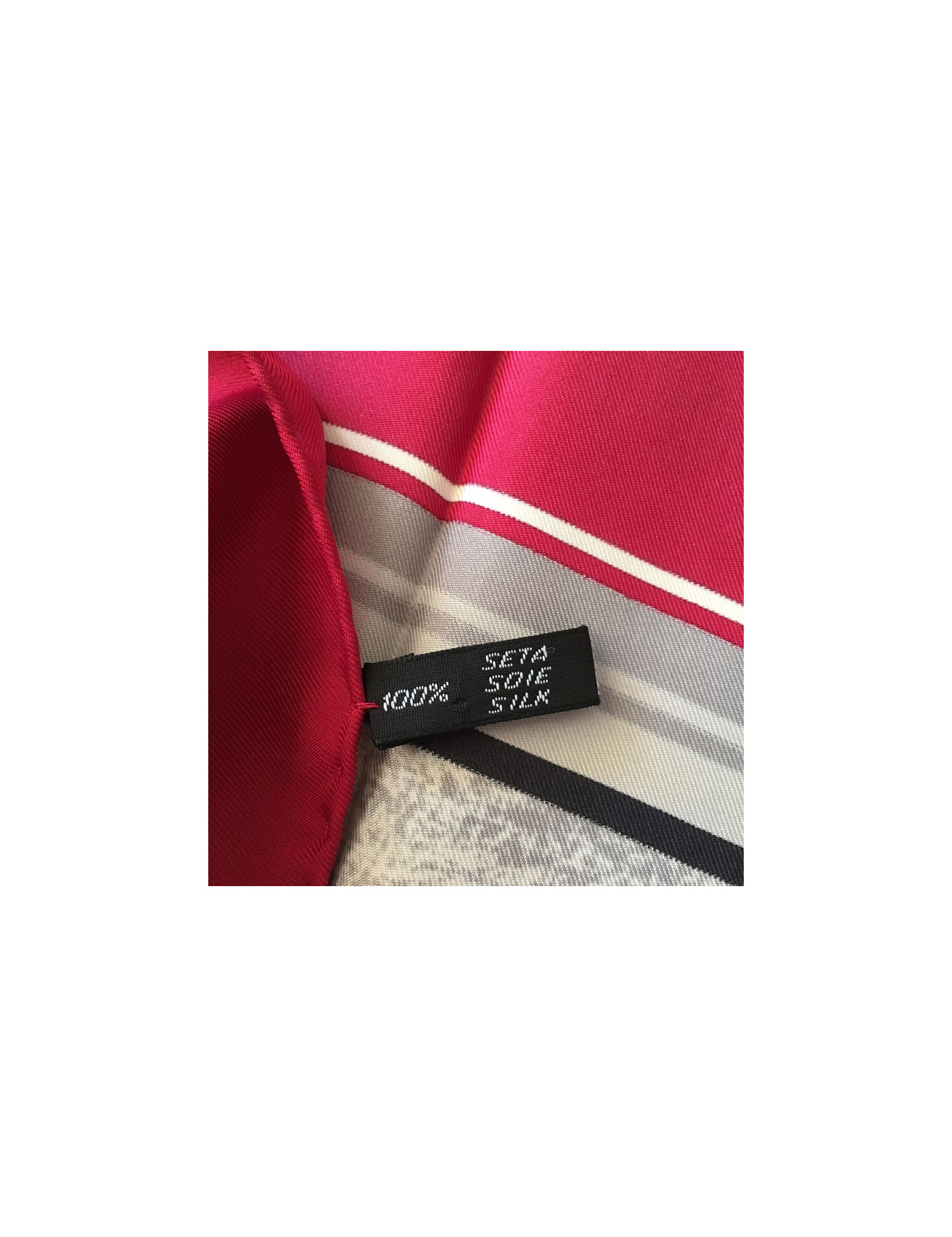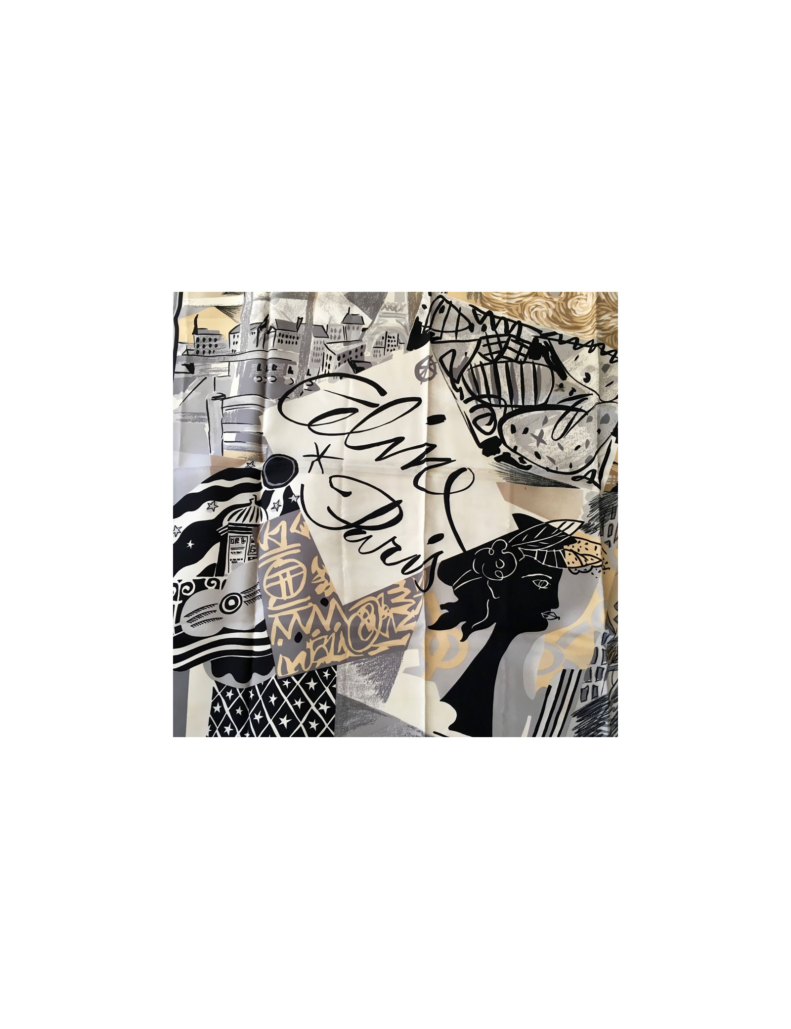 Carré de soie CELINE "Paris" dans les tons rouges, gris, noir. Foulard vintage.
