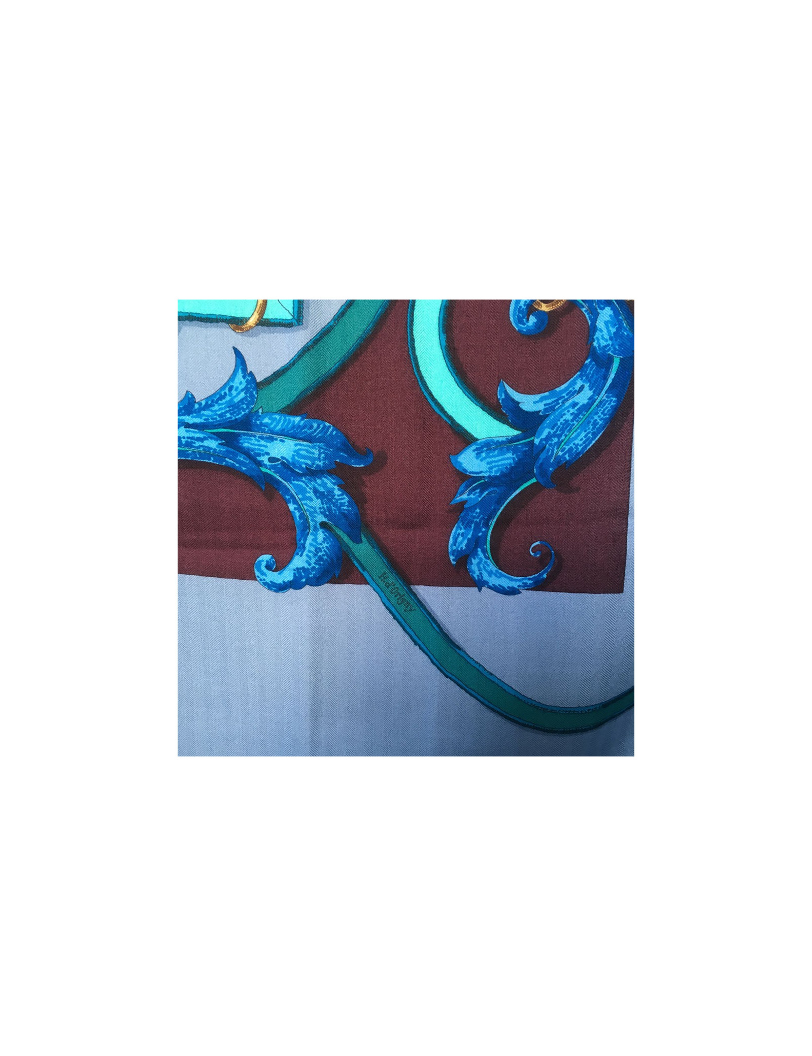 Châle HERMES "L'instruction du Roy" en cachemire et soie bordeaux, bleu et vert. Jamais porté. S des soldes