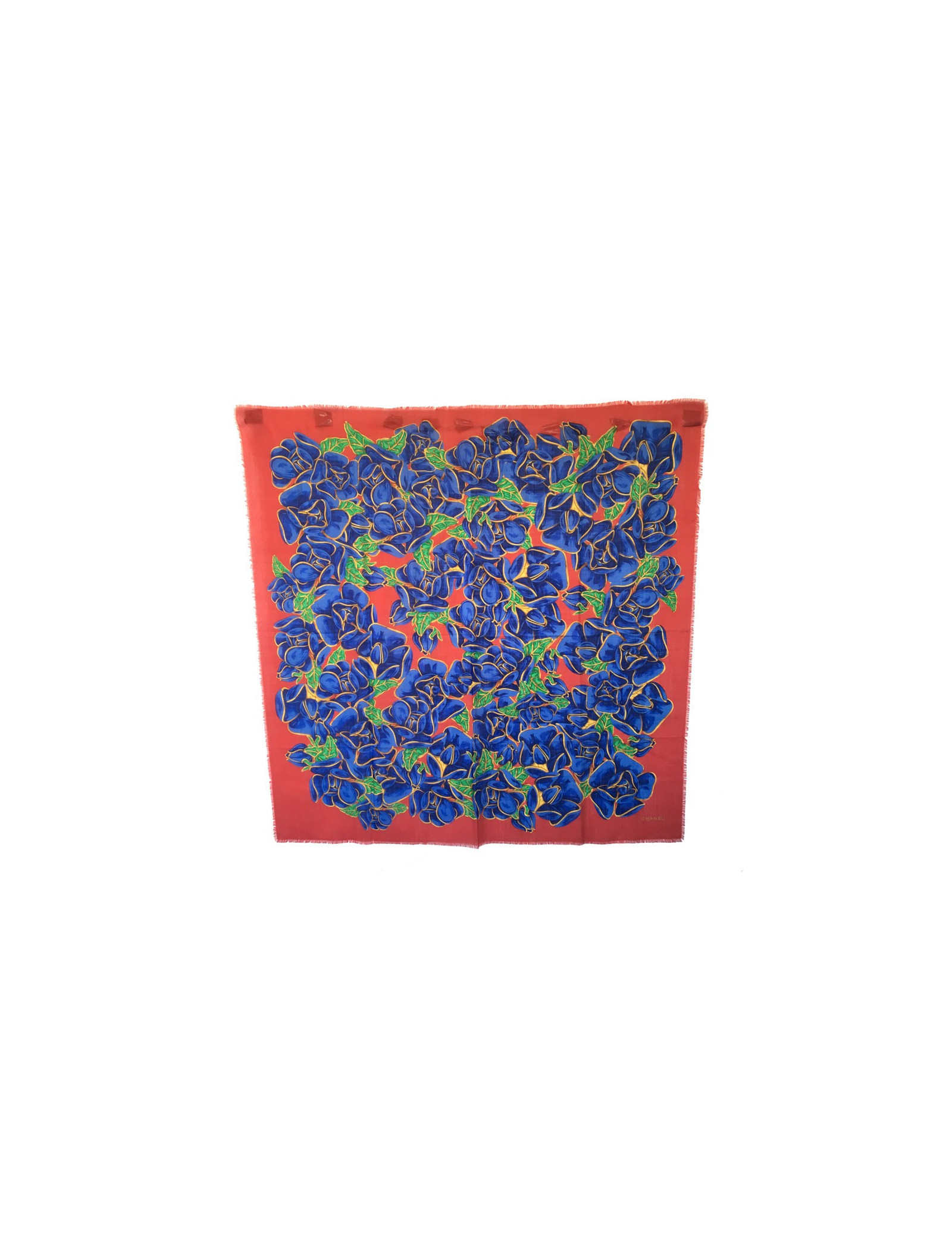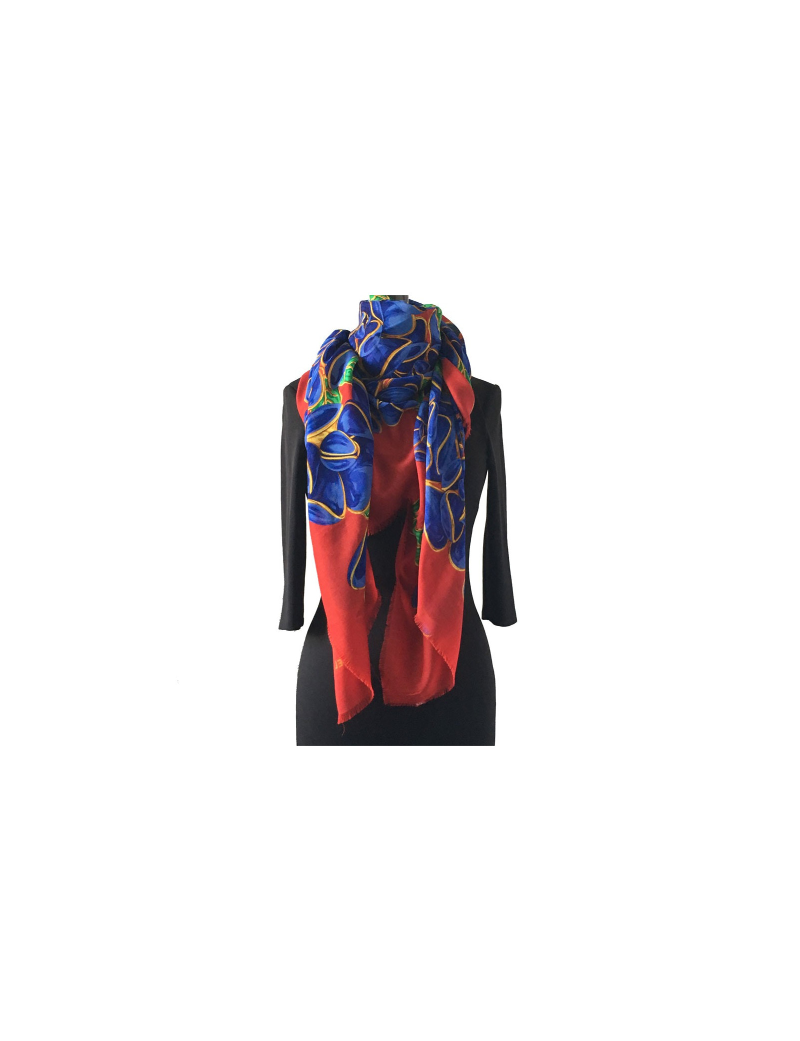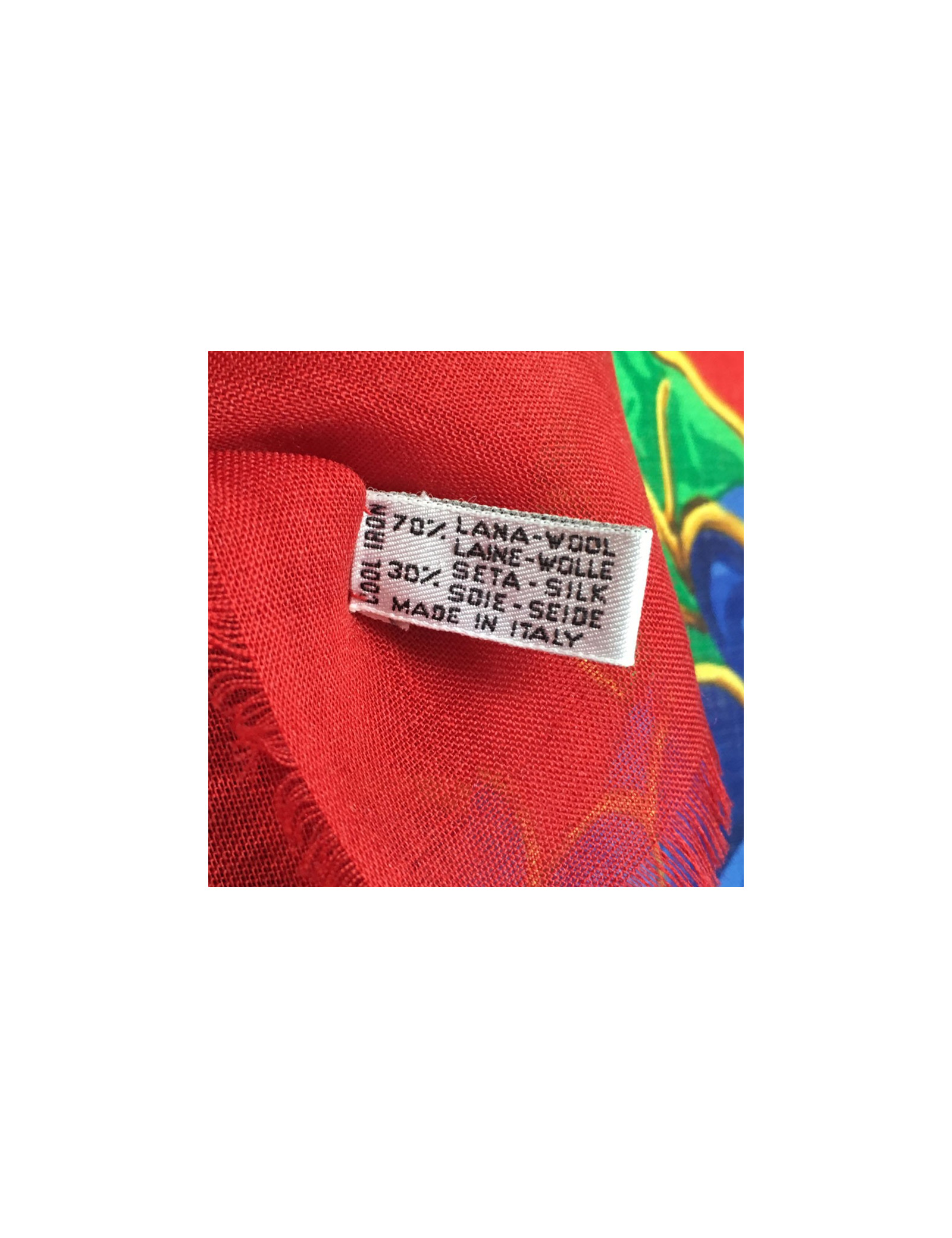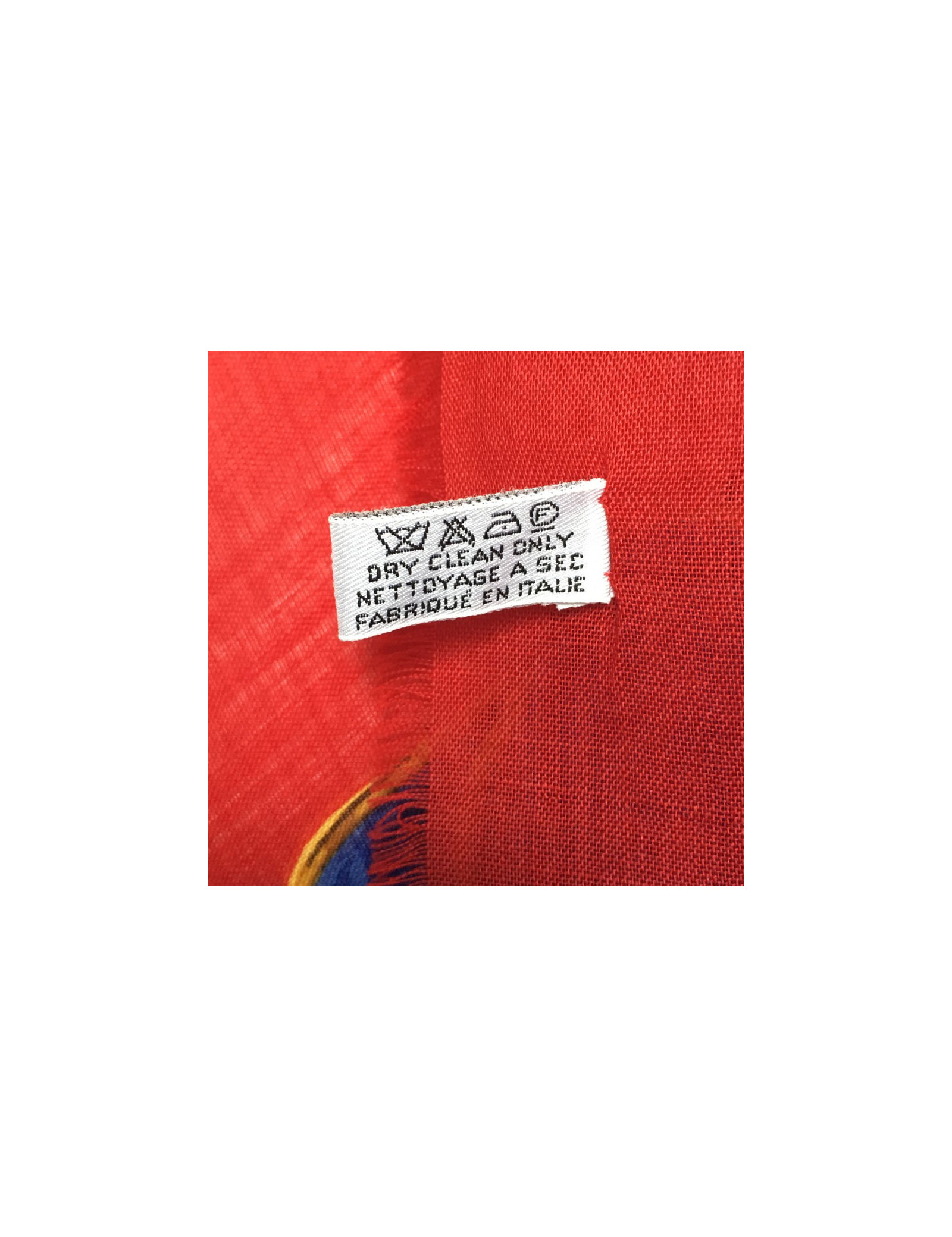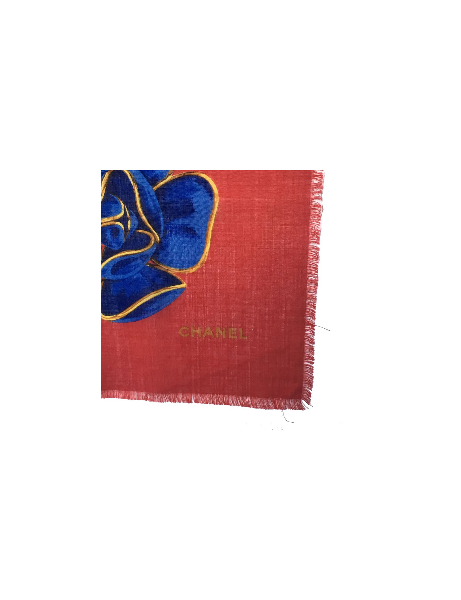 Châle CHANEL en laine et soie rouge, bleu, vert et or