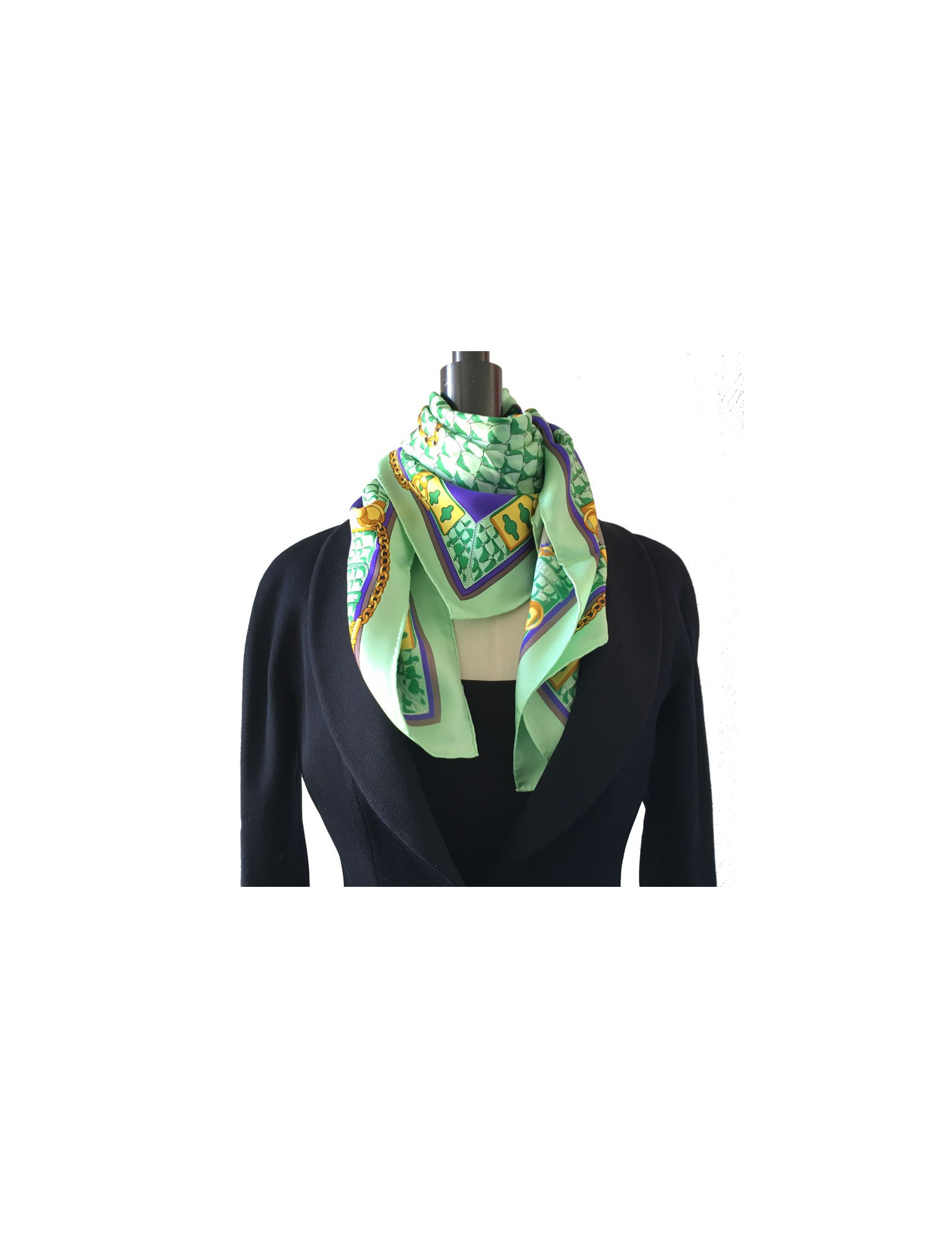 FOULARD/ECHARPE Carré Régina HERMES soie HERMES 35471 940,00 € Rarissime carré Régina HERMES fleurs Condition : bon étatPays de fabrication : FranceMatière : 100% soieCouleur : rose pâle, vert, écruDimensions : 90 x 90 cmDesigner : Leïla MenchariAnnée : 1972Détails : Ce carré est très rare ! étiquette de composition absente. Le roulotté est en bon état, il y a des petites tâches sur les coins du foulards sur la... Ajouter au panier