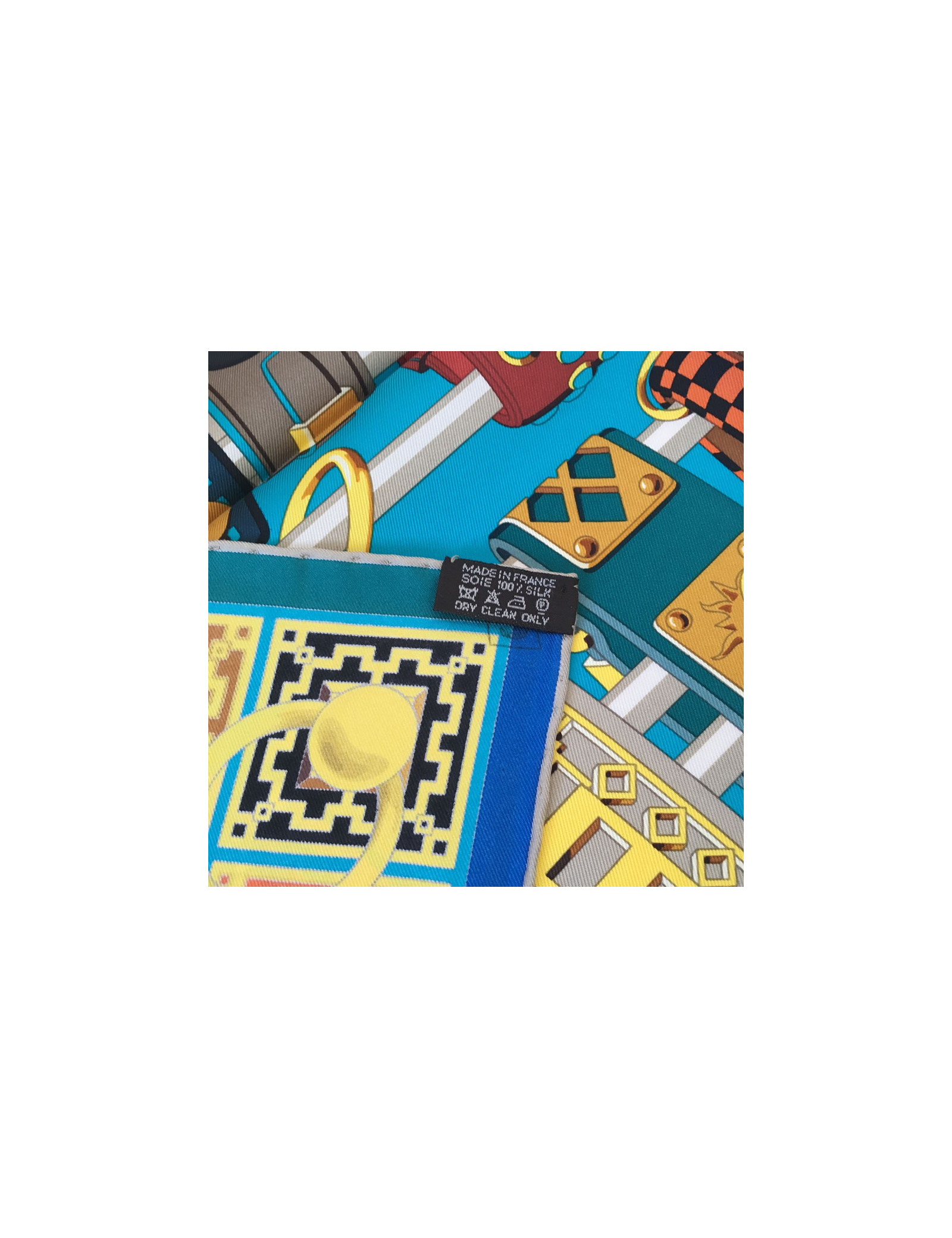 Carré HERMES "Colliers de chiens" en soie multicolore