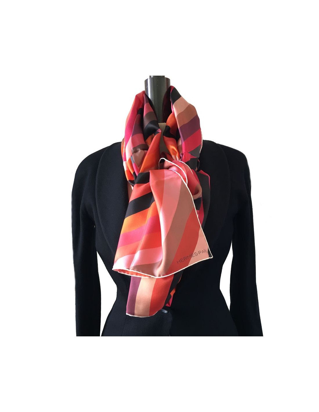 Châle HERMES "Marcelina" en soie polychrome.