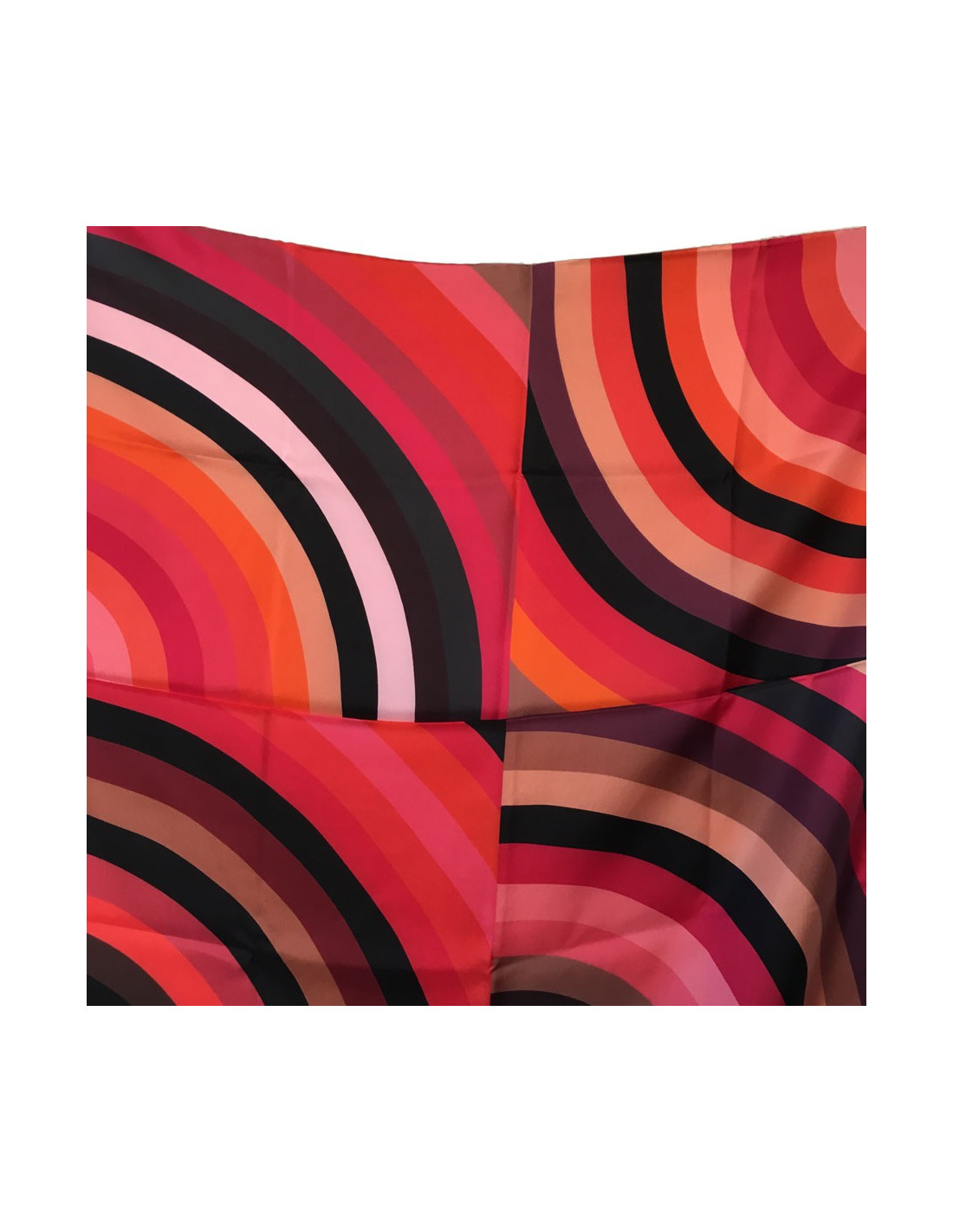 Détails : magnifique châle en twill plume, étiquette de matière présente. Le nom Marcellina évoque l'élégance italienne et représente des motifs géométriques aux couleurs vives.