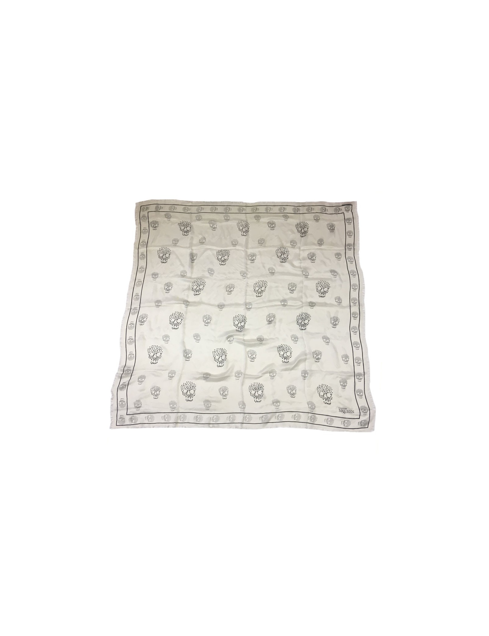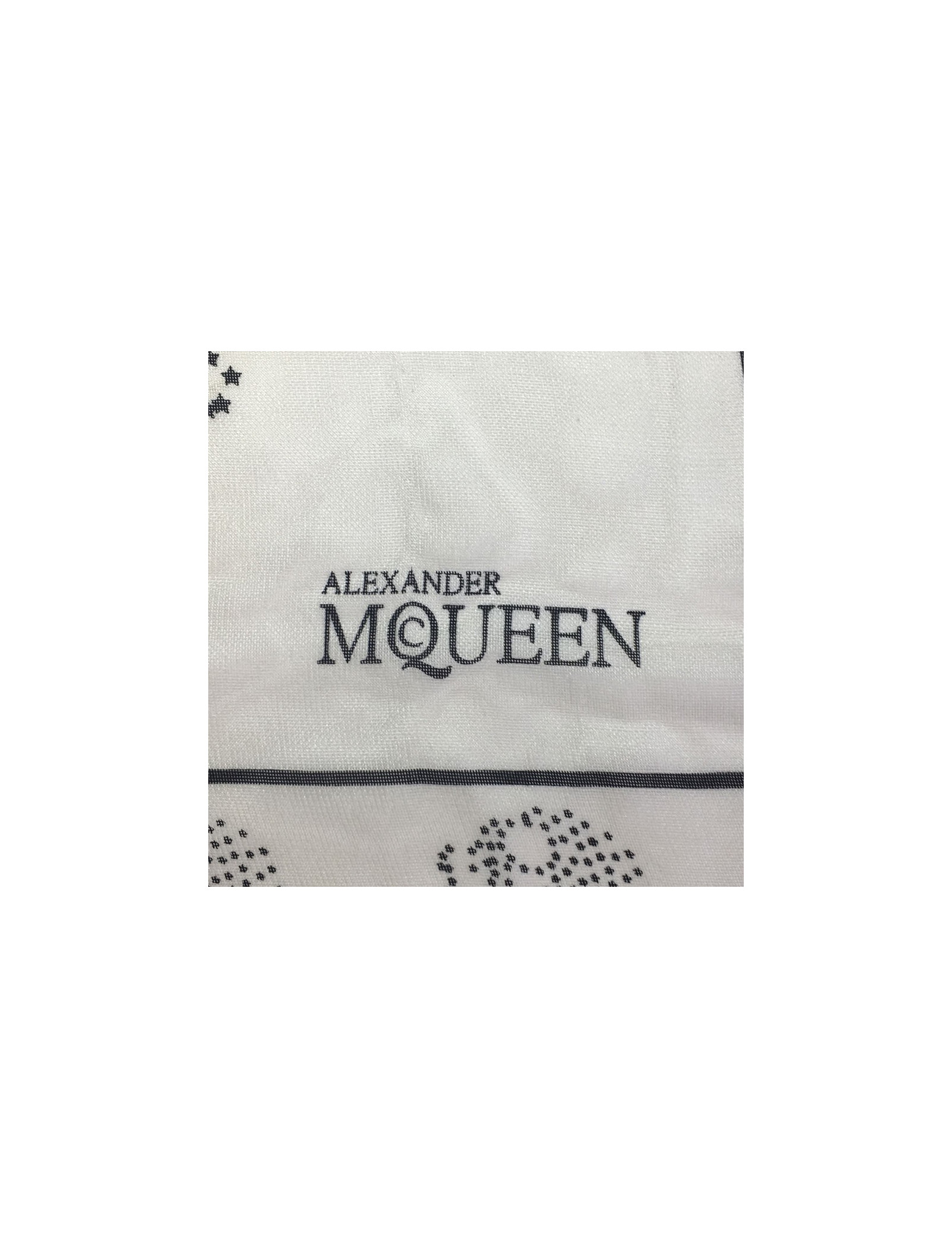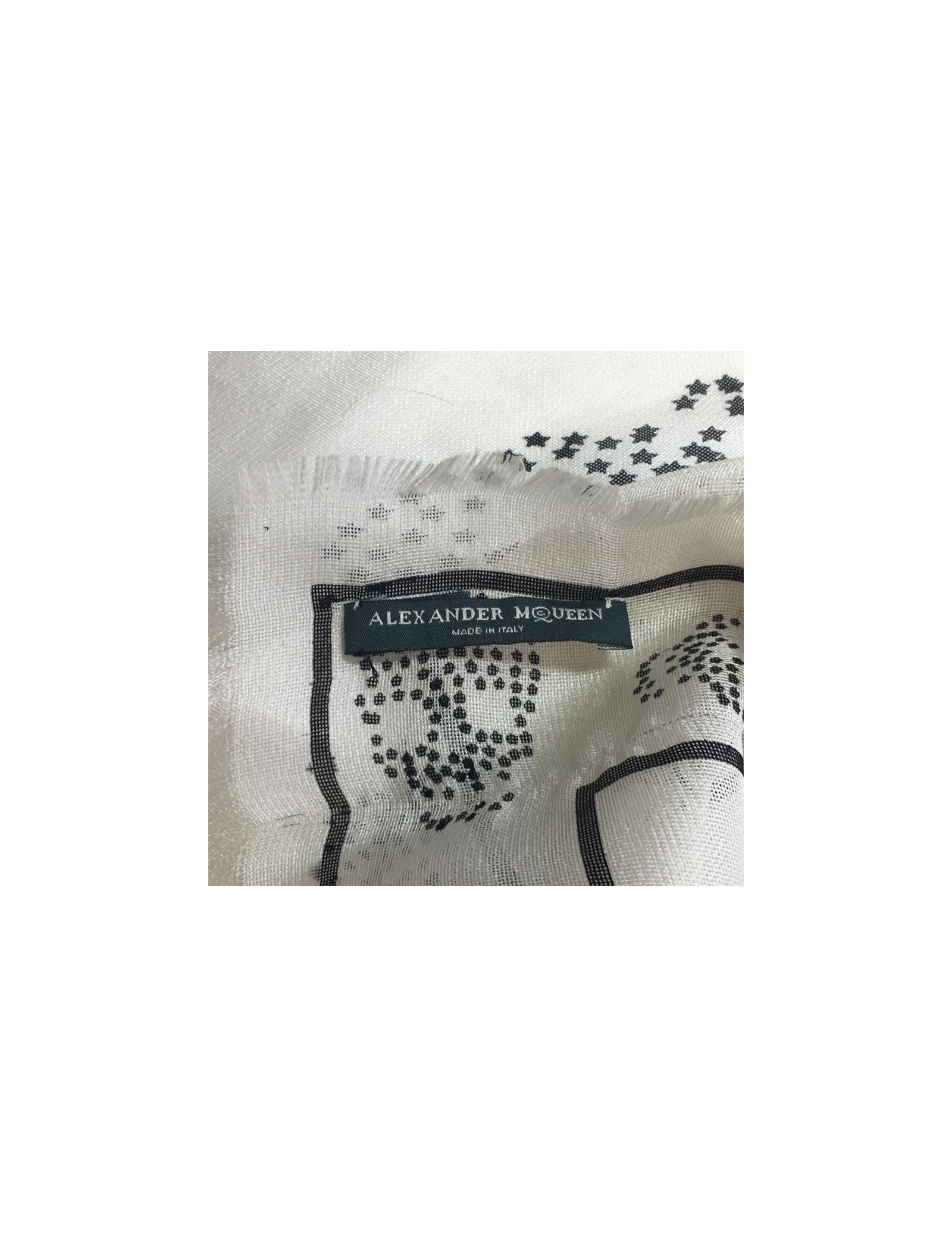 Etole Alexander McQueen en soie ivoire à petites franges. Motif: Têtes de mort en étoiles noires.