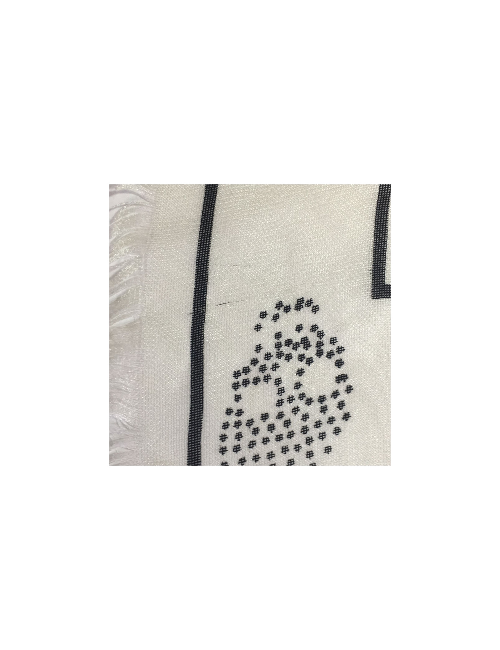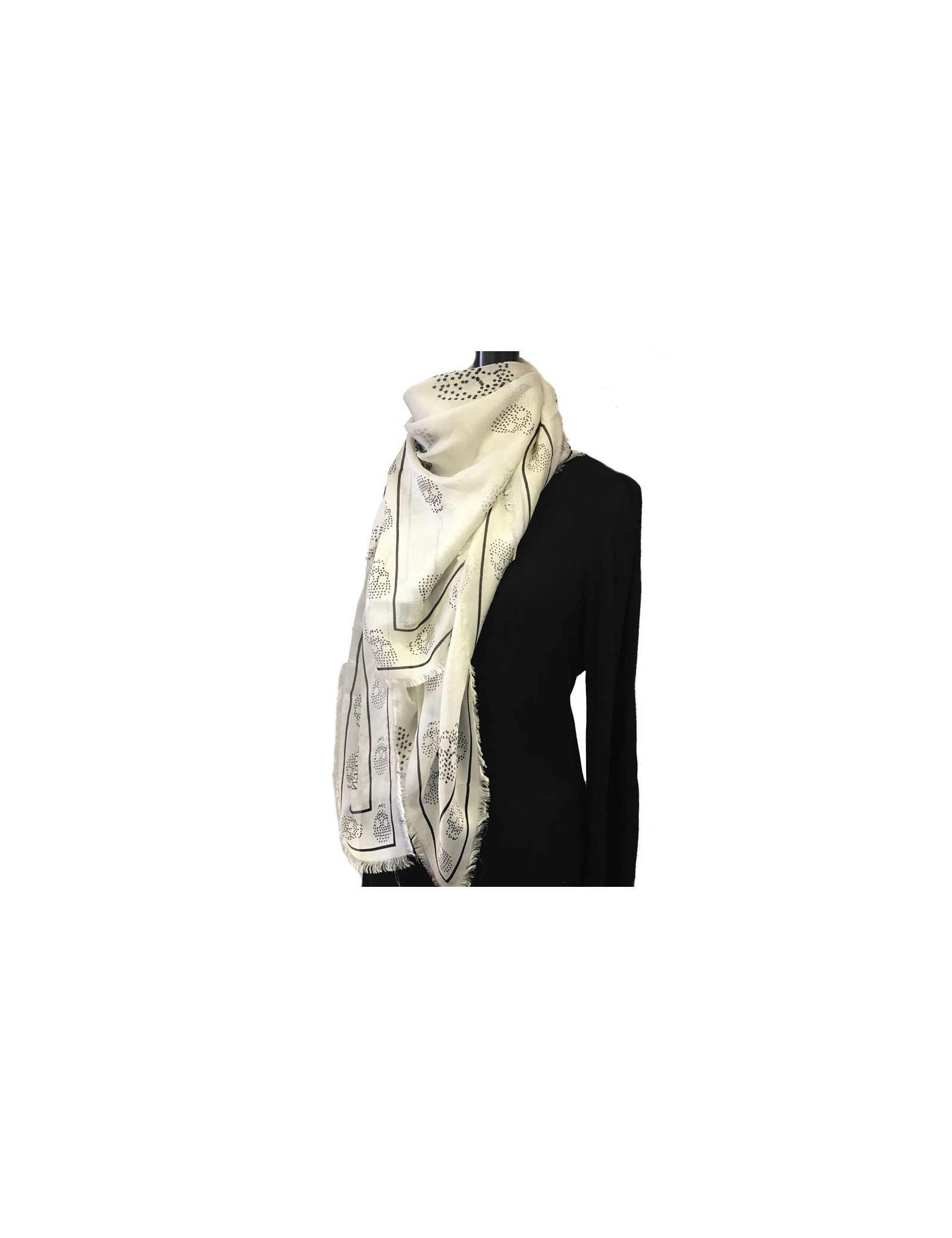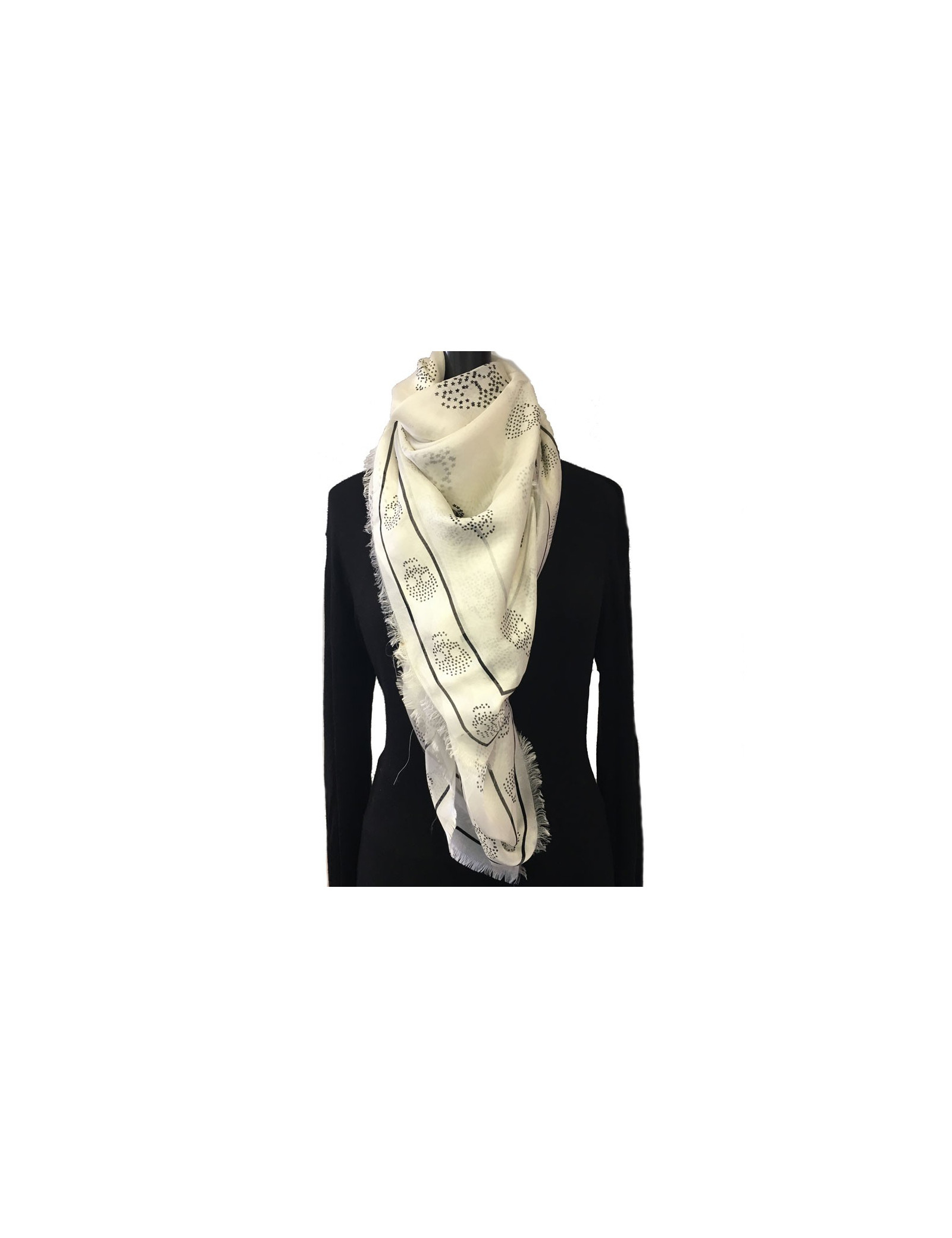 Etole Alexander McQueen en soie ivoire à petites franges. Motif: Têtes de mort en étoiles noires.