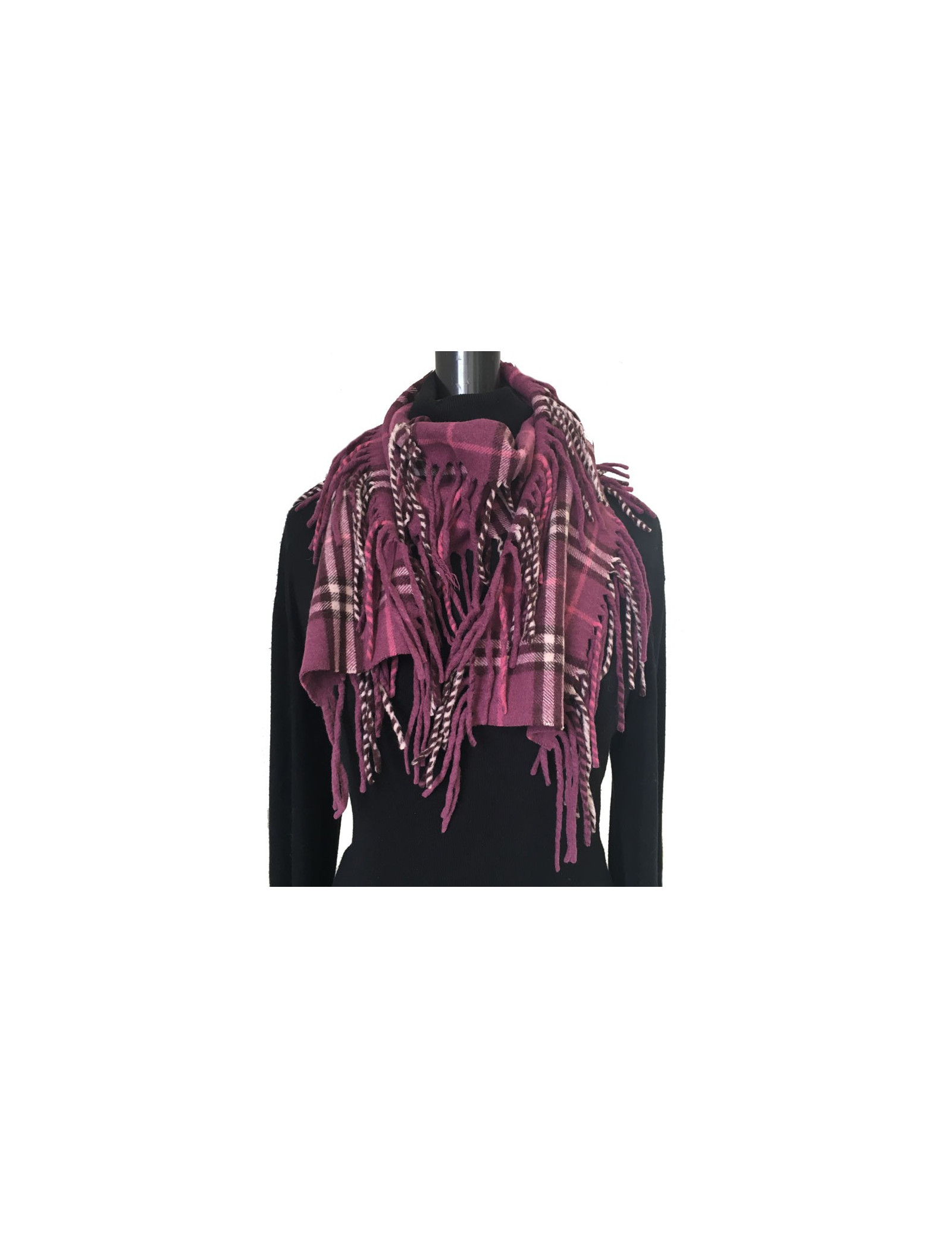 Echarpe BURBERRY à franges en cachemire prune