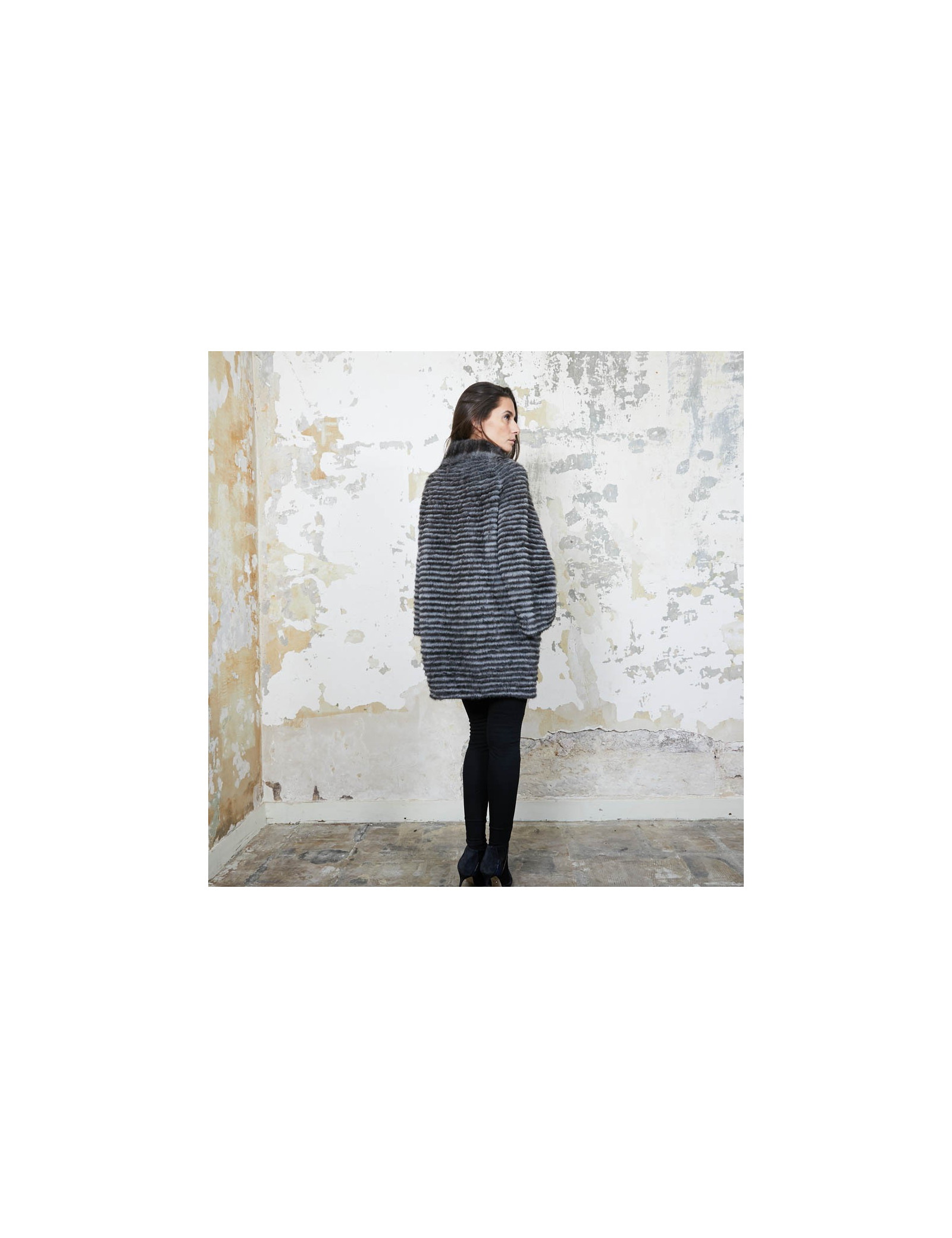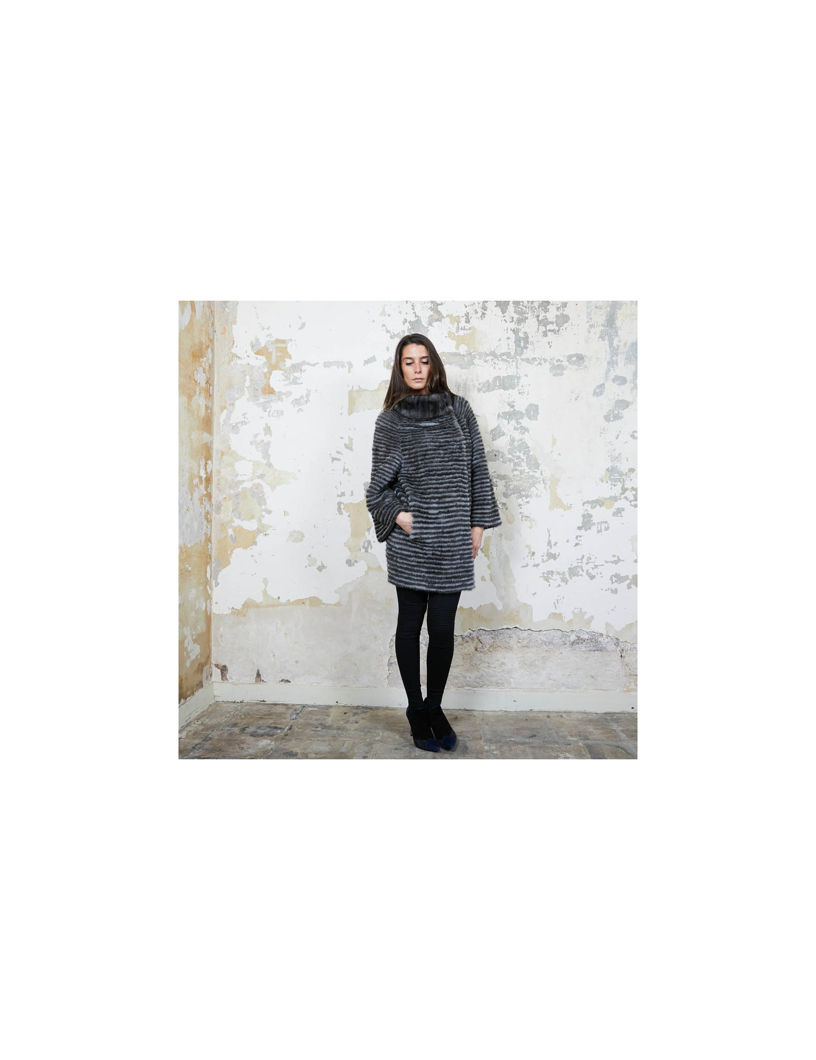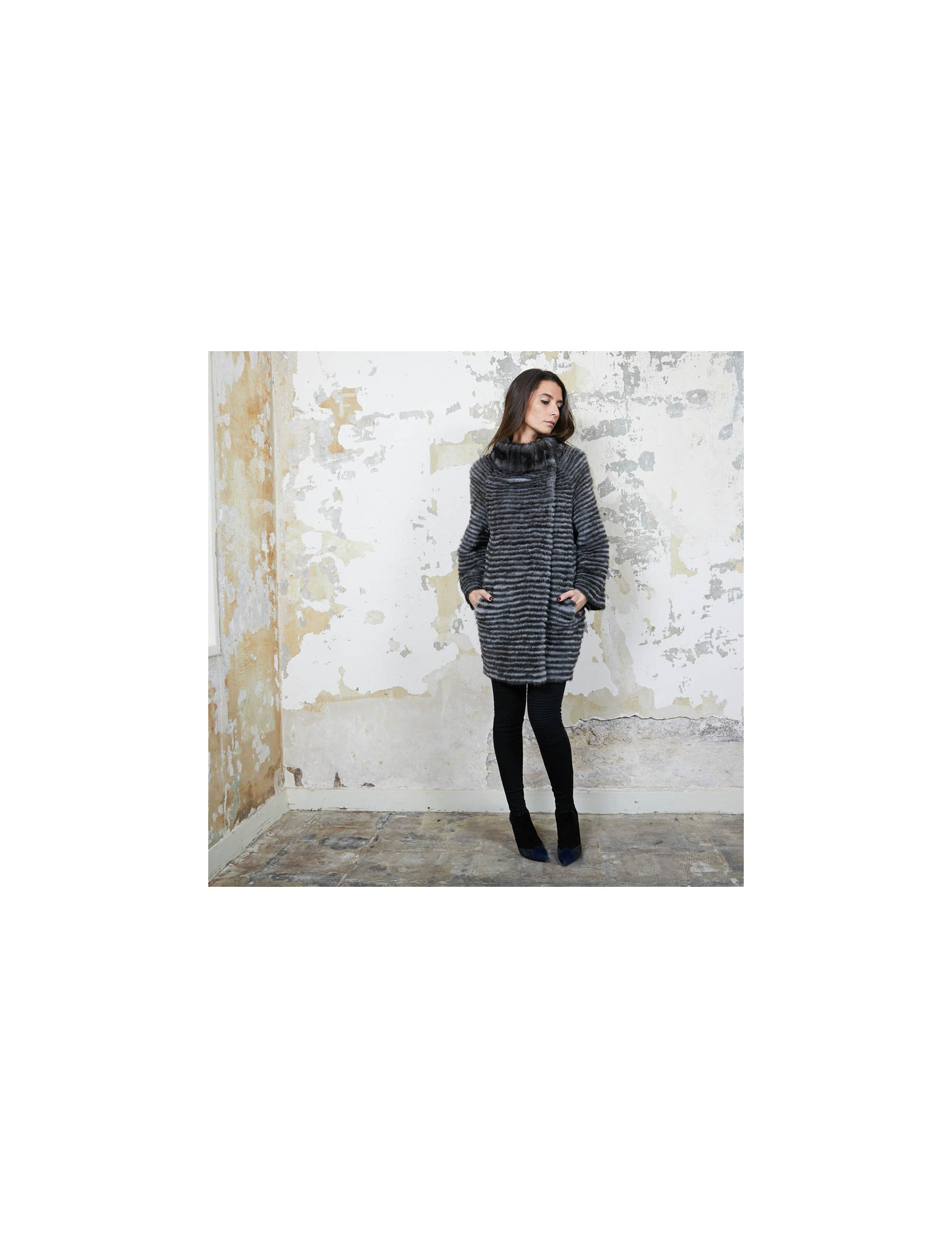 Superbe manteau T 38 Max&Moi en vison gris (bandes cousues sur la doublure) avec un large col cheminée.