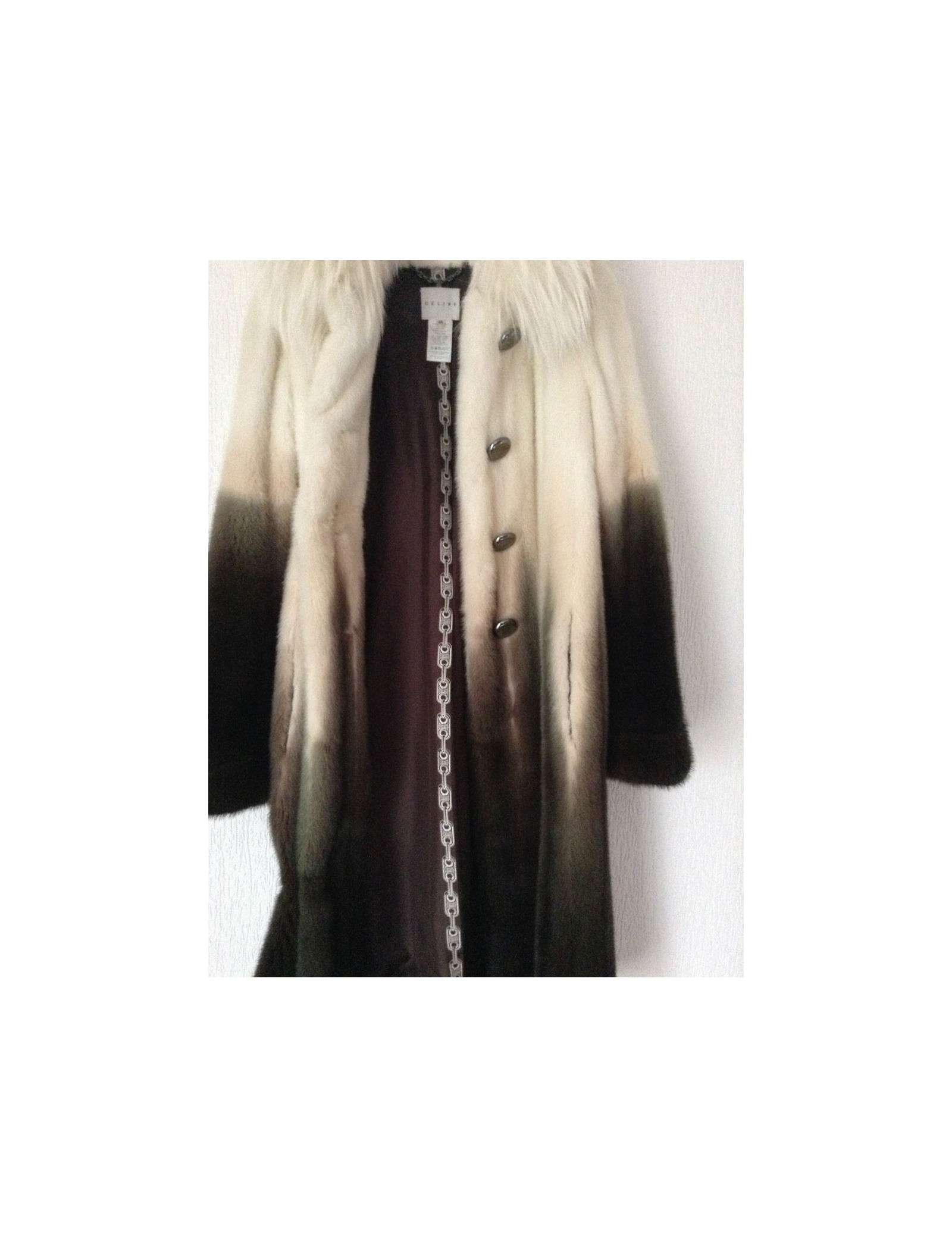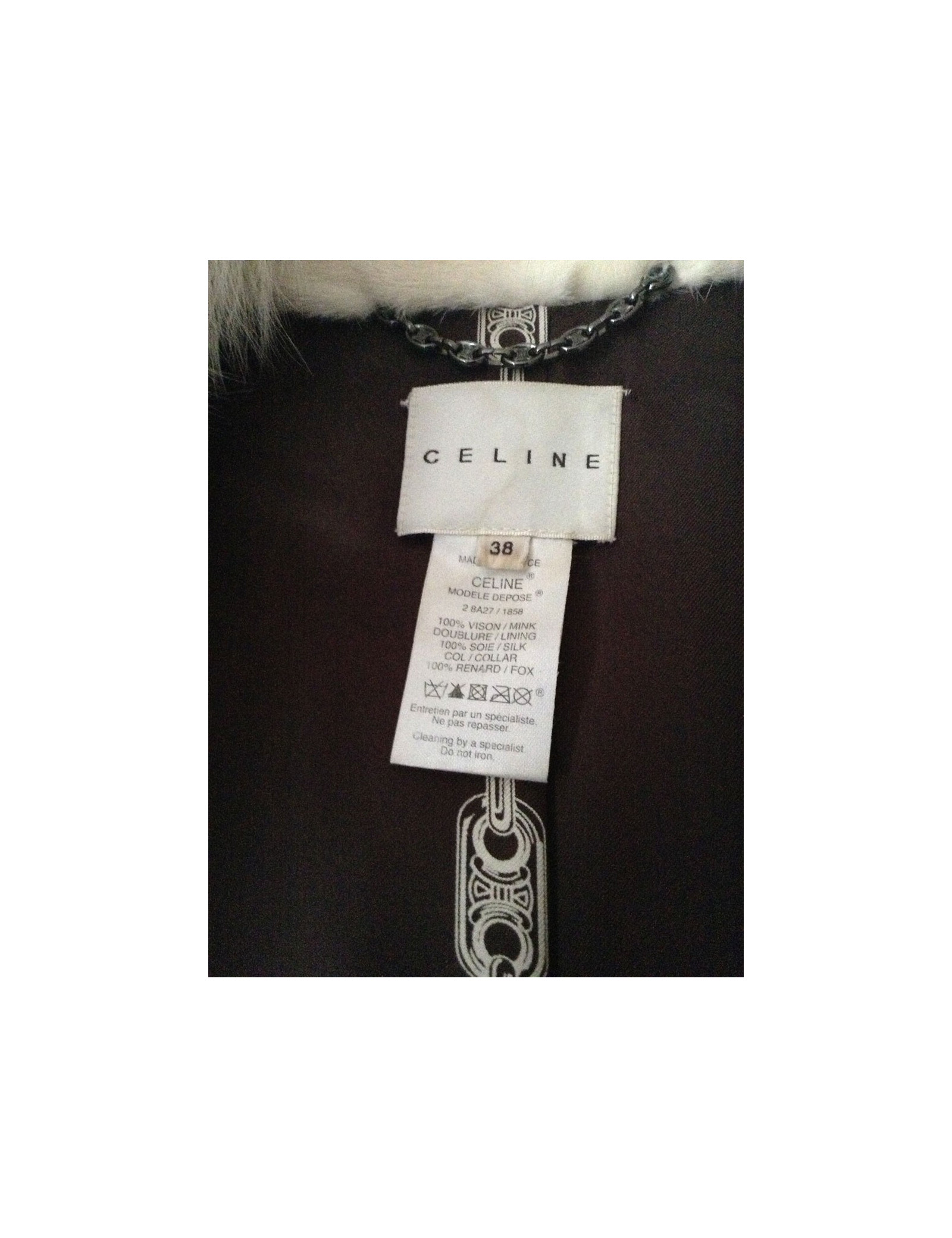 Magnifique Manteau Céline en vison 100%.Une très jolie pièce. Le Col blanc est en renard; les couleurs ont été harmonieusement choisies : marron, kaki, beige, écru; le dégradé est SUBLIME! La doublure est en soie 100% de couleur marron monogrammee Céline, THE MUST HAVE!