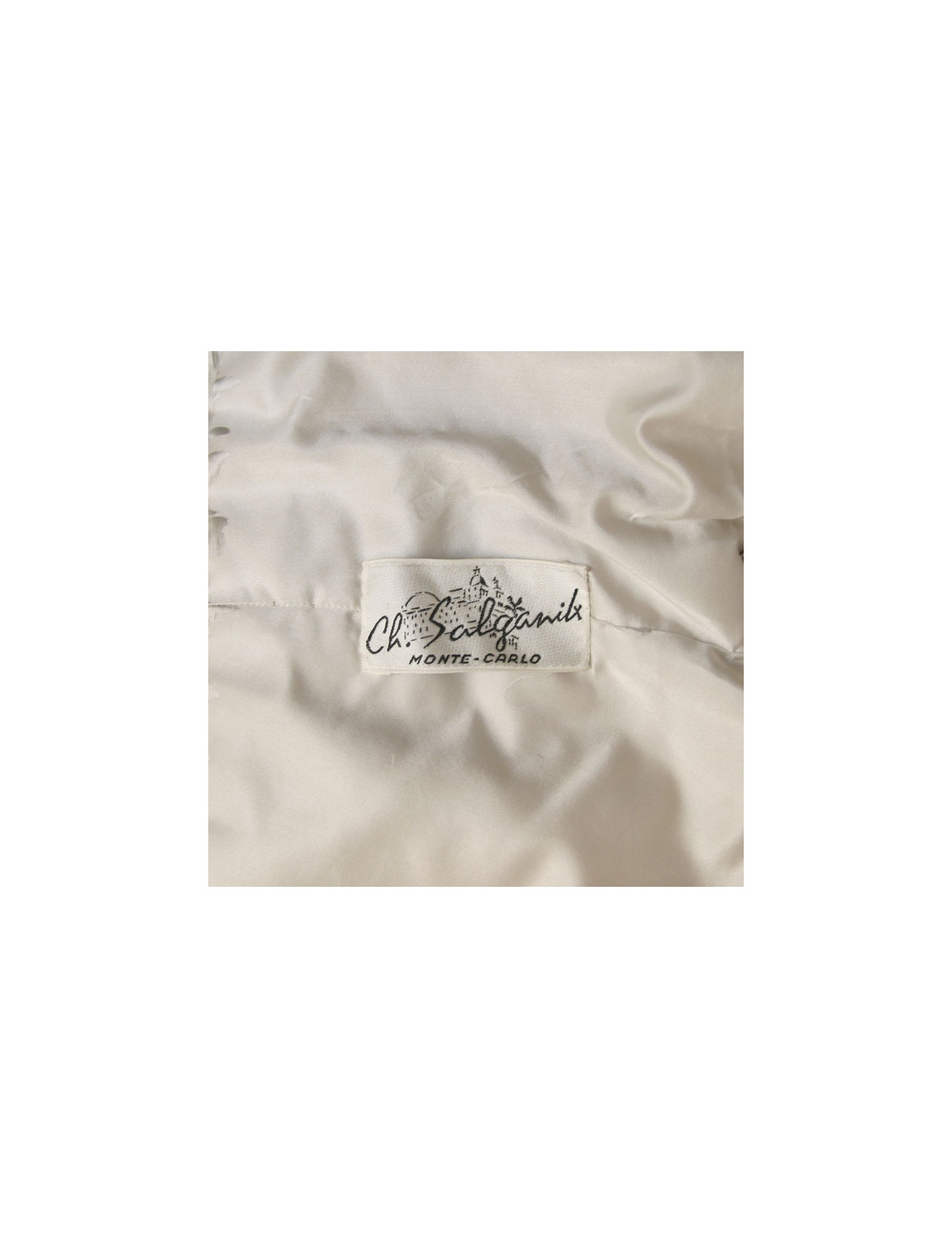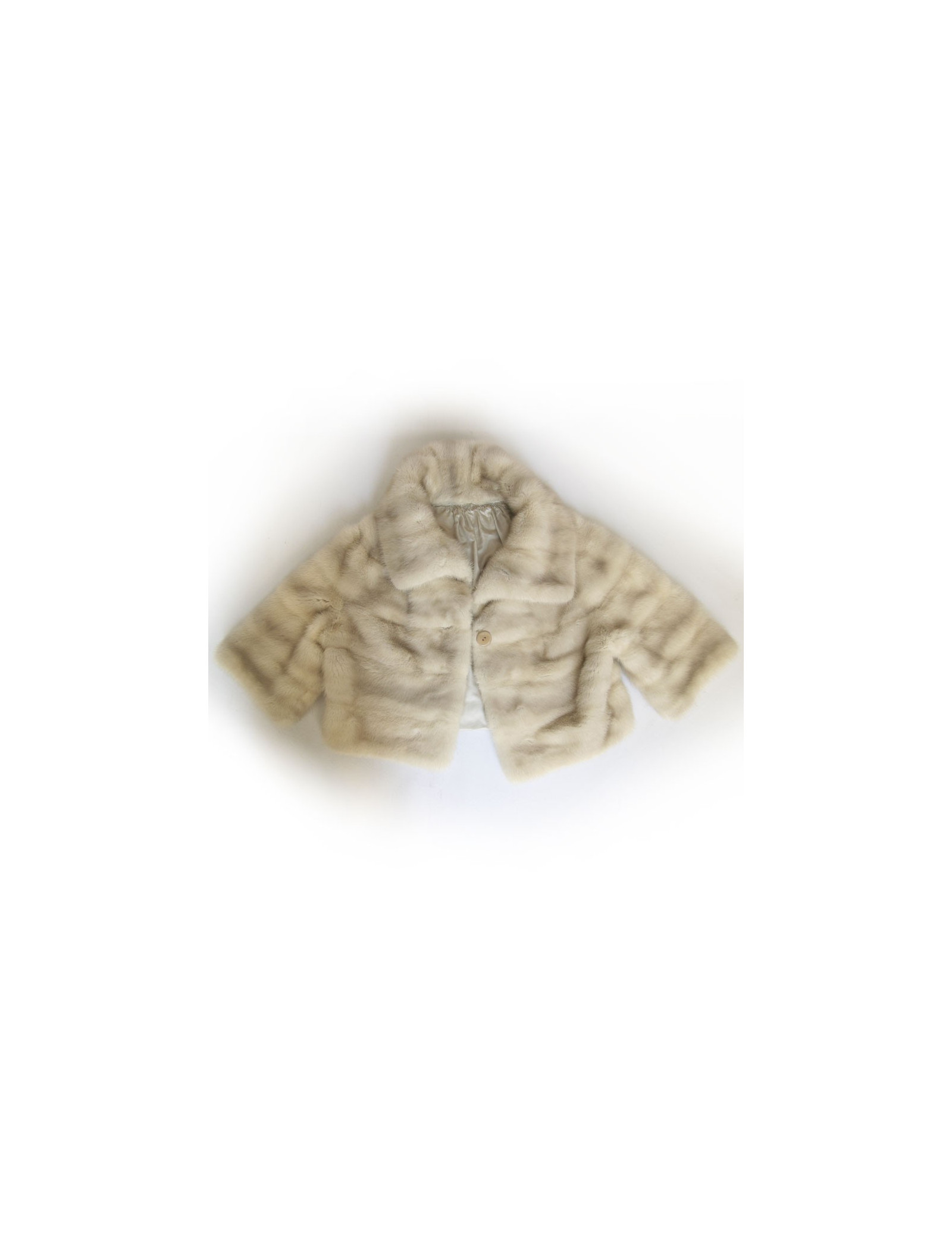 Magnifique veste en vison de couleur écru dégradé de gris, Ch. Salganick, Monte Carlo. Taille 38. Pas d'étiquette de taille. Doublure en soie. Fermeture 1 bouton nacré. 1 poche intérieure. En très bon état.
