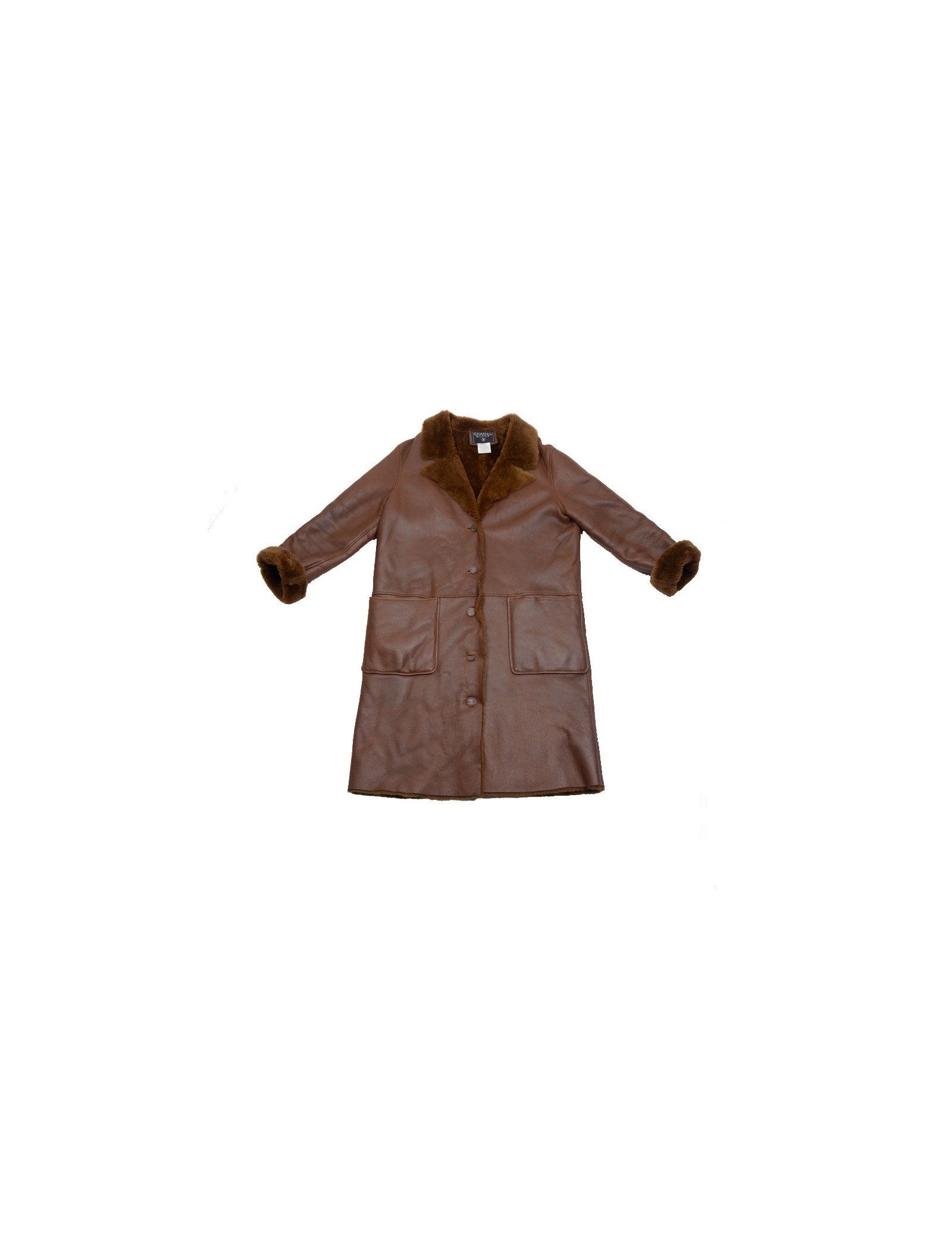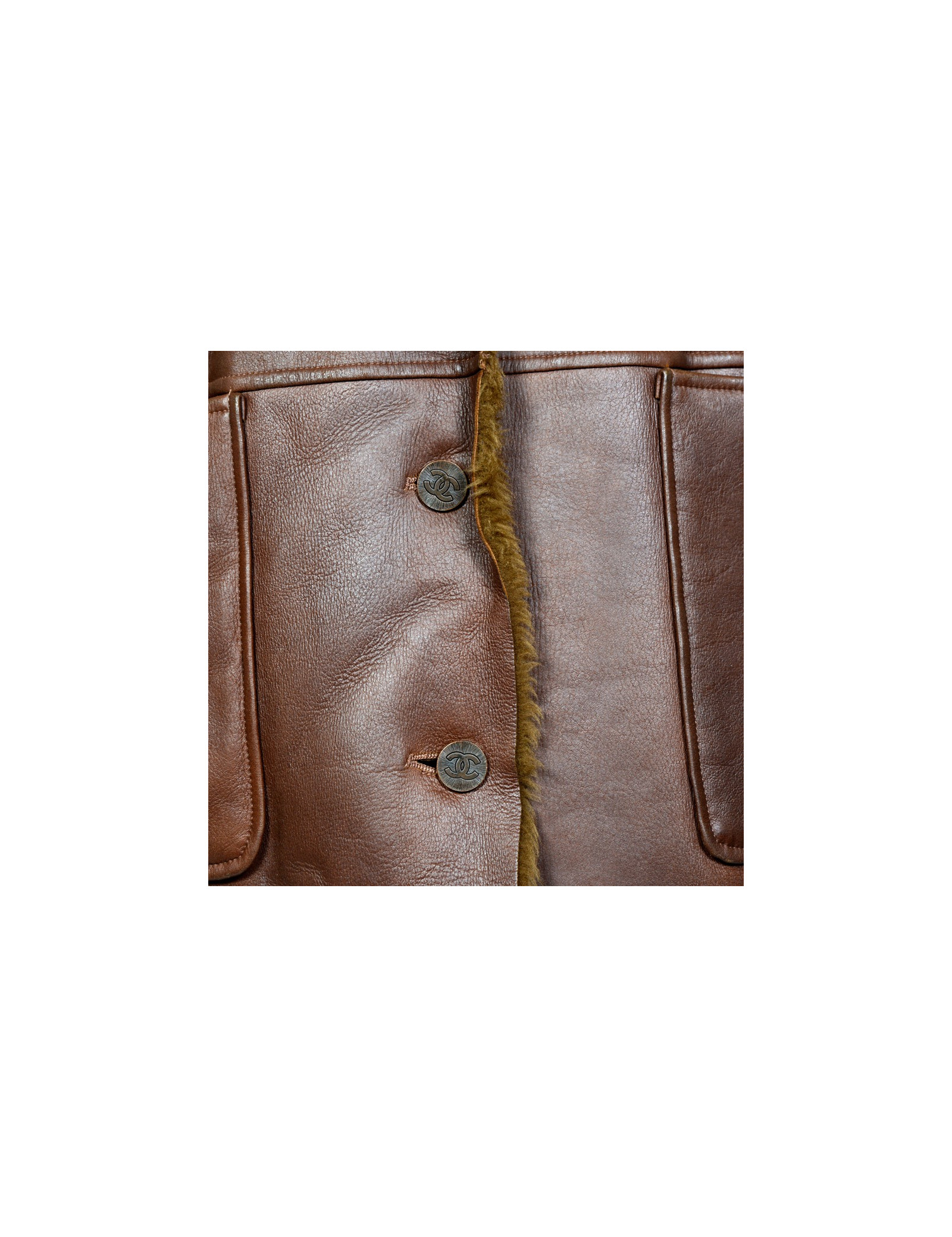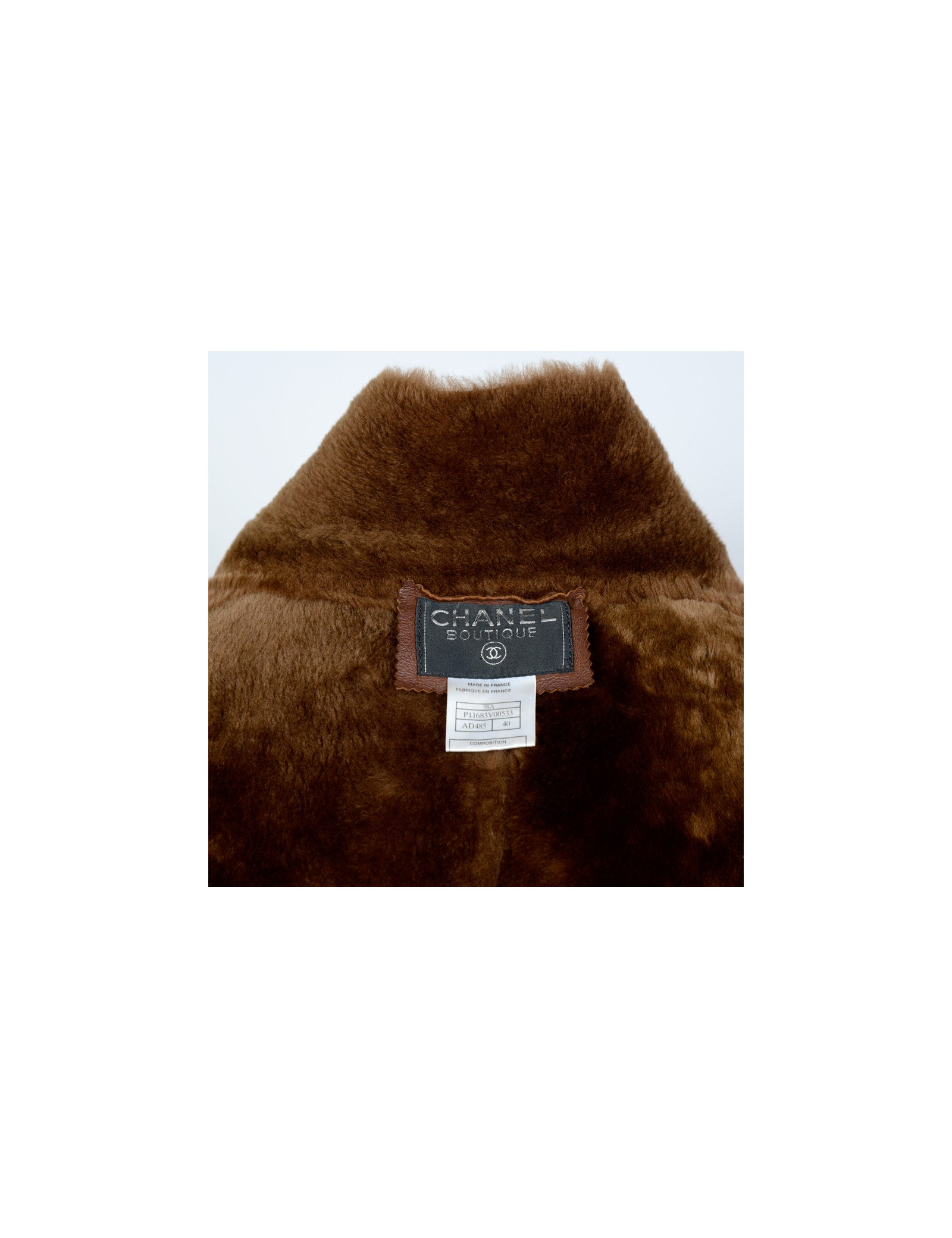Magnifique manteau Chanel en peau retournée de couleur marron. Taille 40. Il dispose de deux poches plaquées à l'avant. Fermeture 5 boutons siglés "CC". Les manches sont reglables, vous pouvez les retournées à votre guise. En très bon état.