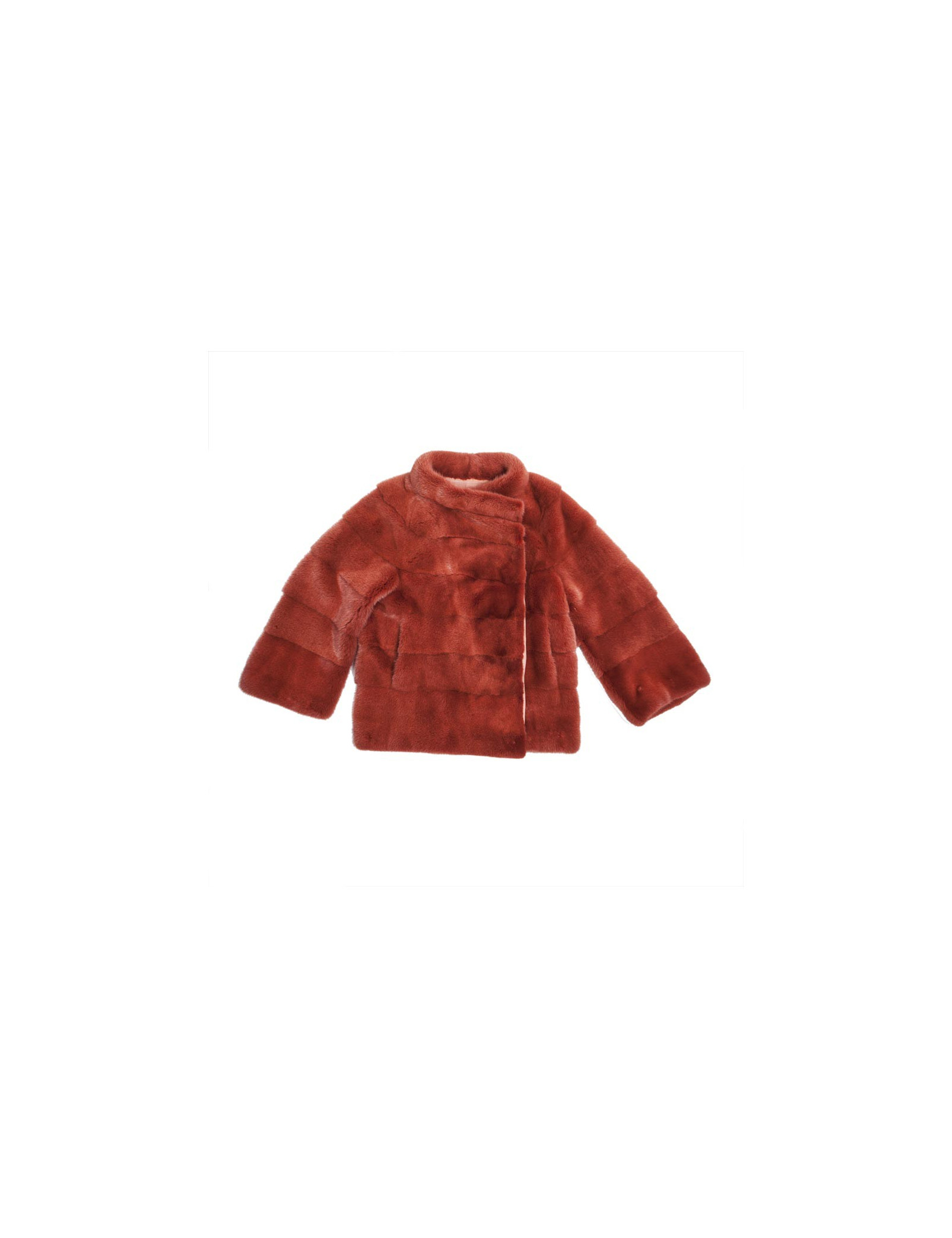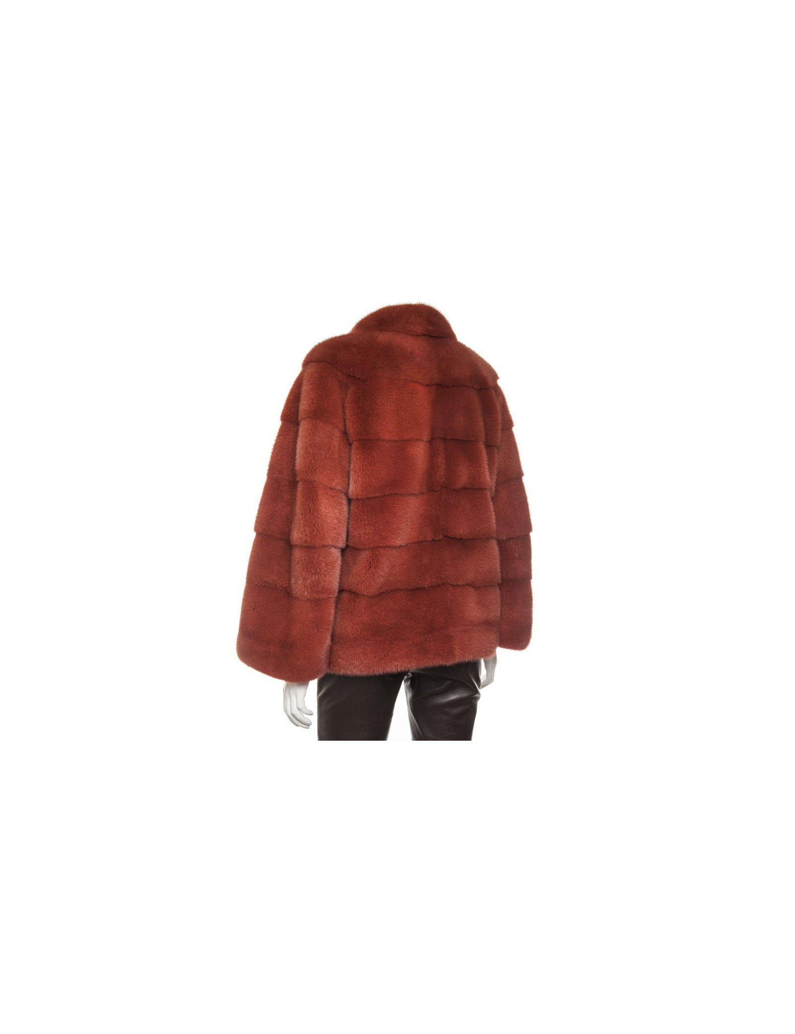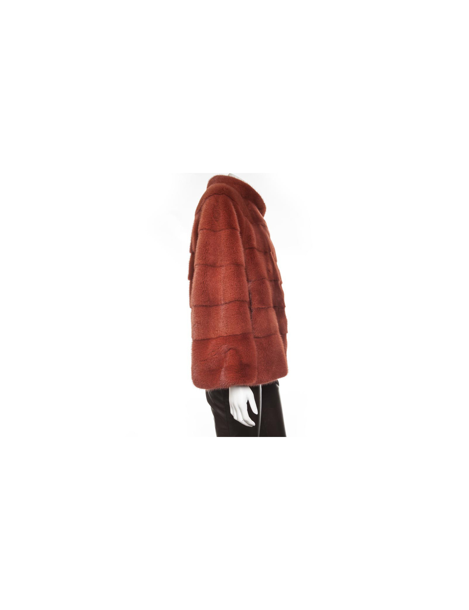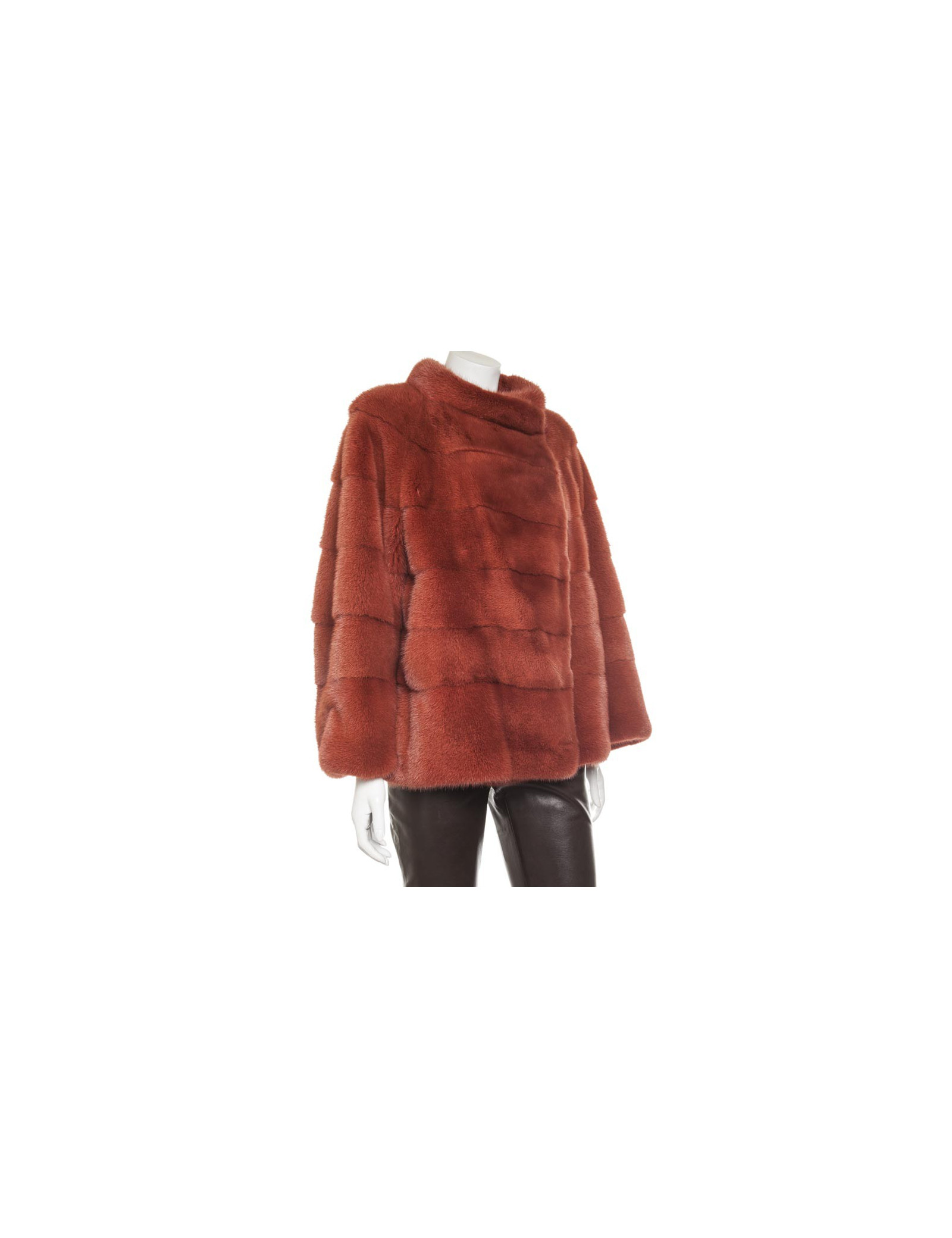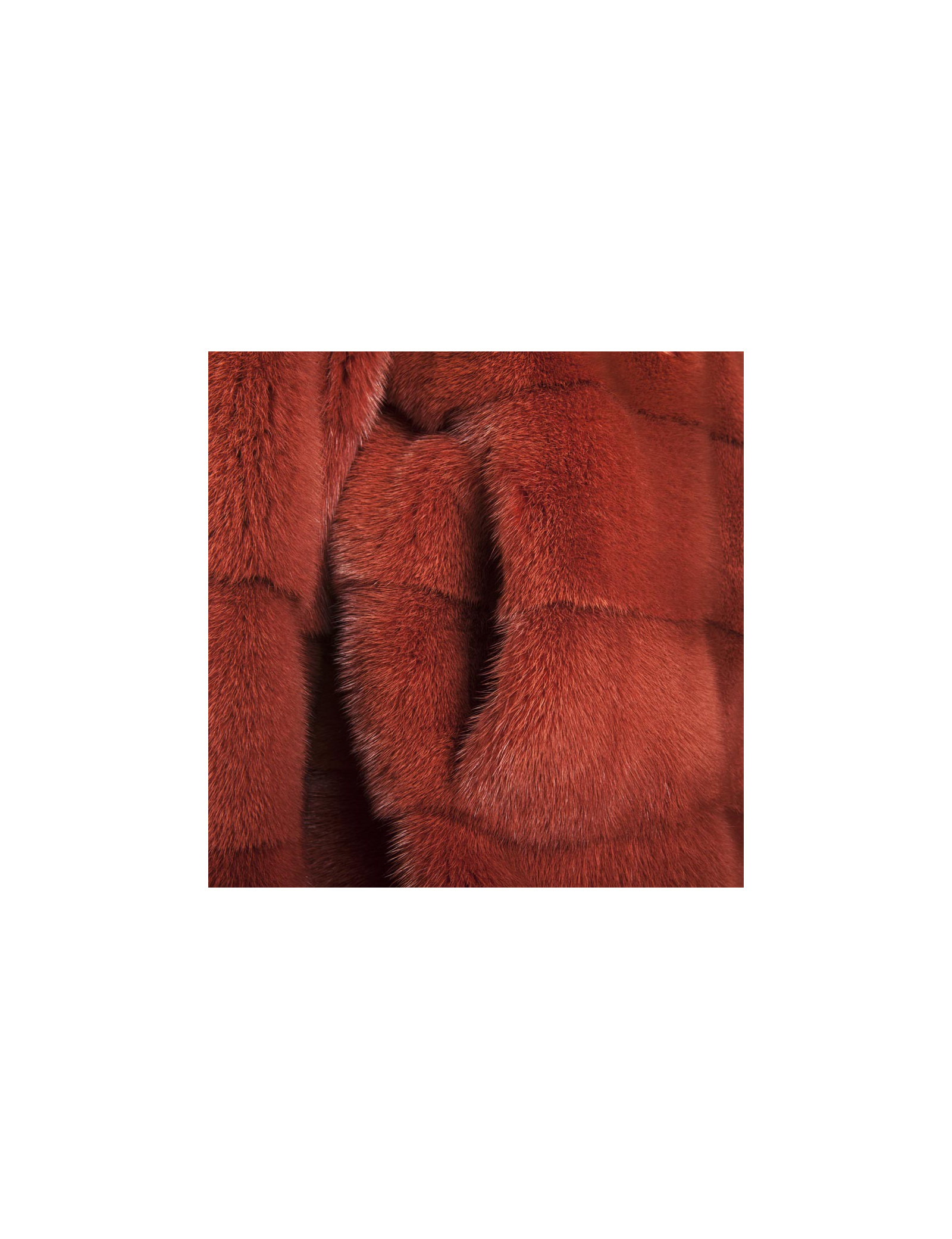 Magnifique veste en vison Place.....,couleur rouille doublée de mousseline de soie couleur saumon. elle se ferme juste au niveau du col par un crochet. Deux poches sur les côtés.