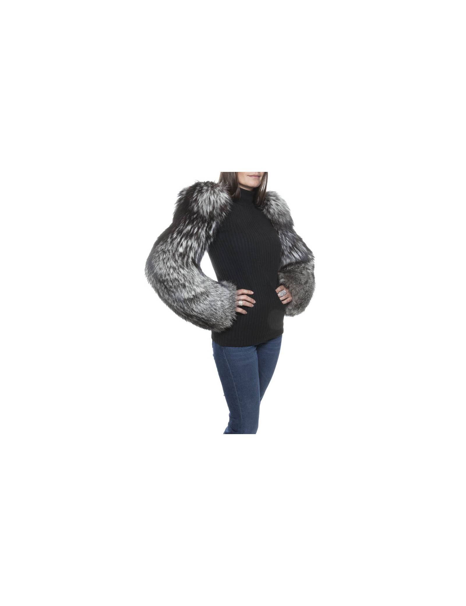 Sublimes manches en renard argenté Paule KA avec des épaulettes se portent façon boléro, elles se nouent dans le dos. Taille 36 fr