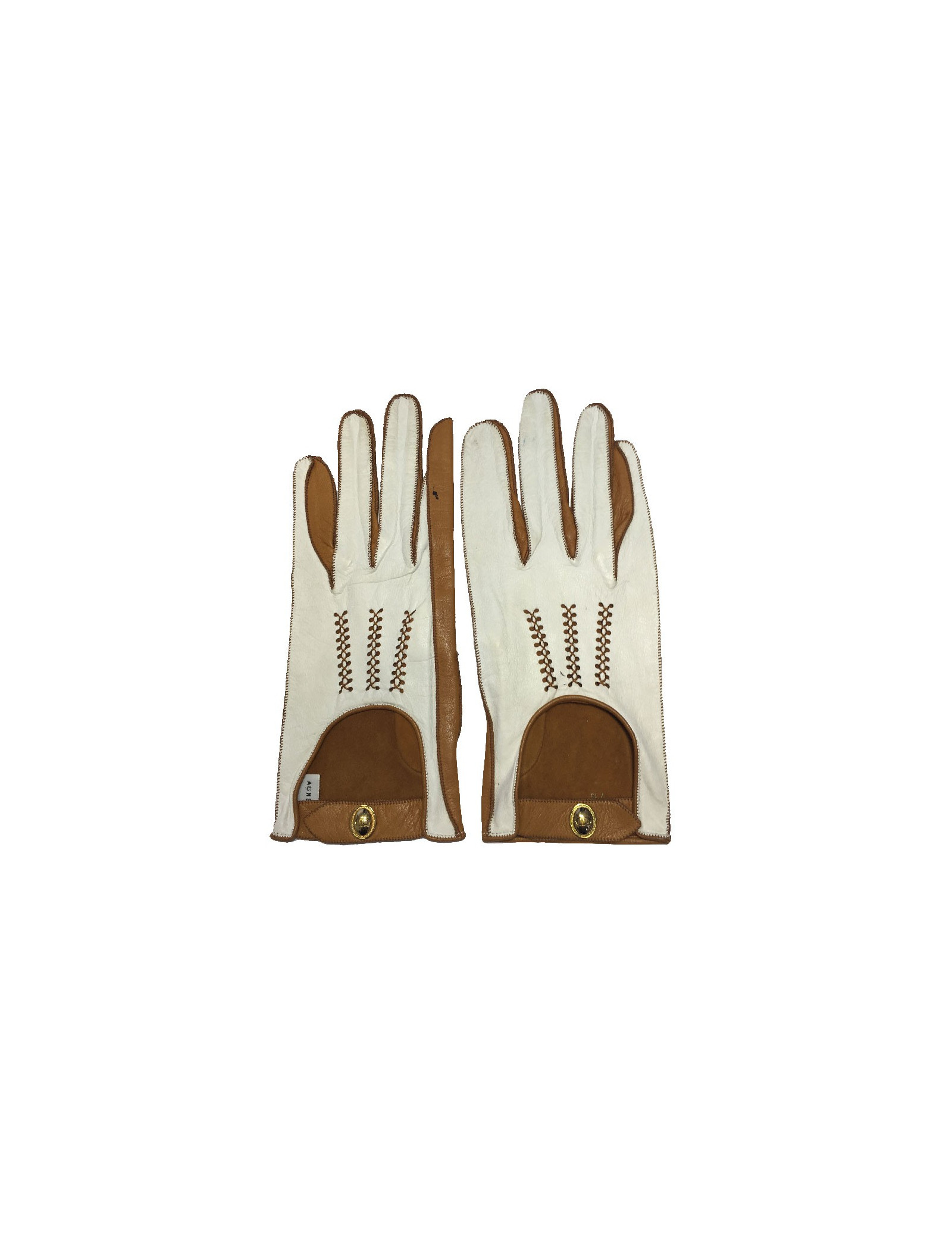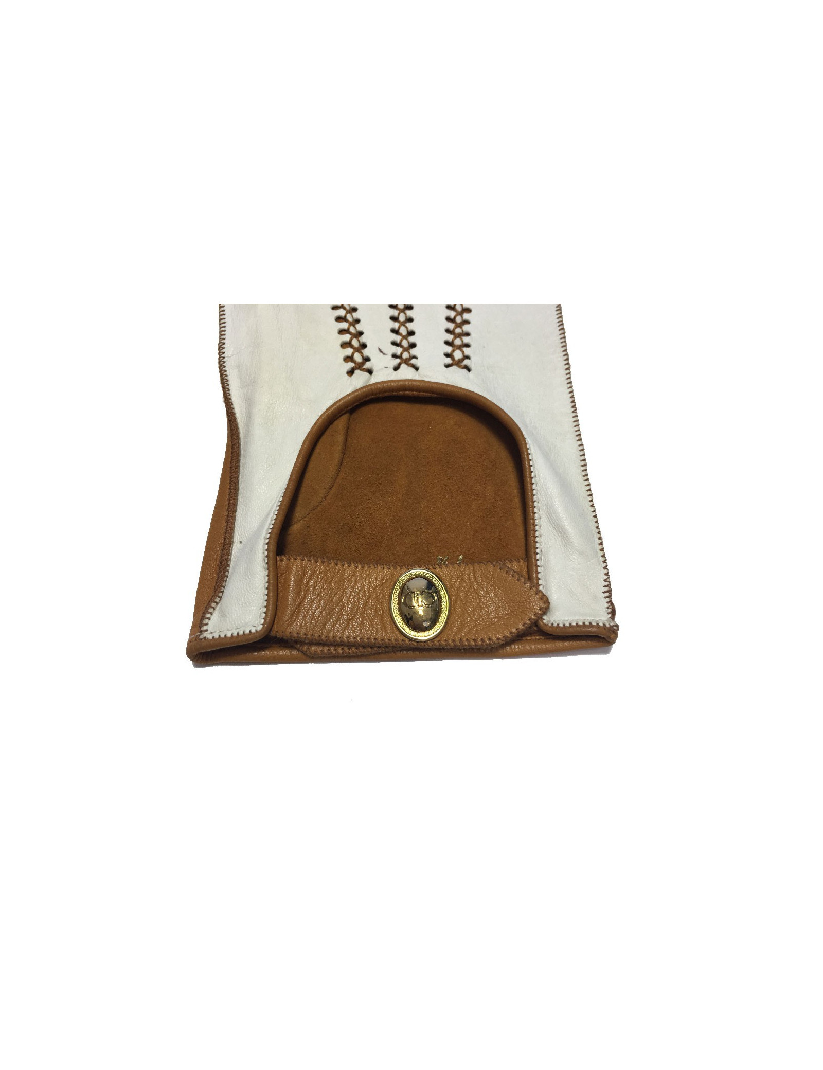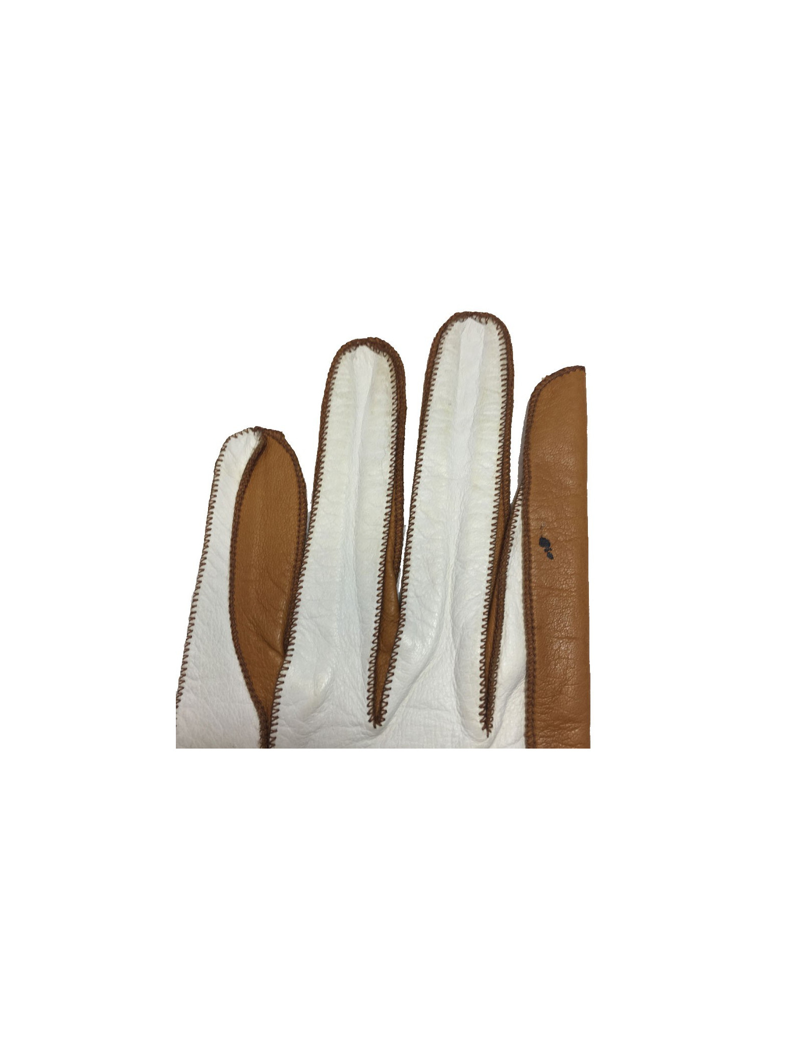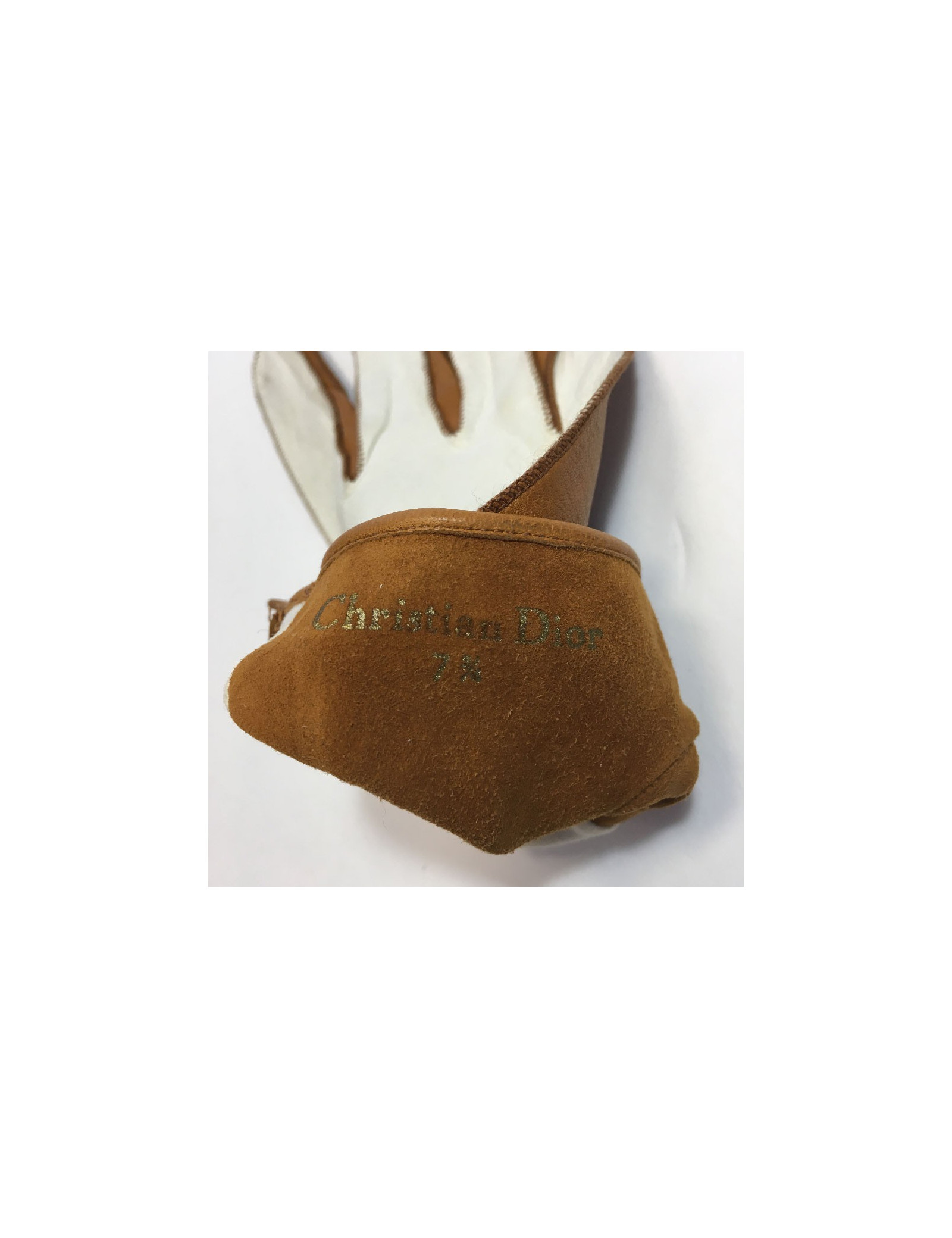 Gants Christian Dior en cuir d'agneau bicolore blanc et caramel. Taille 7 3/4.
