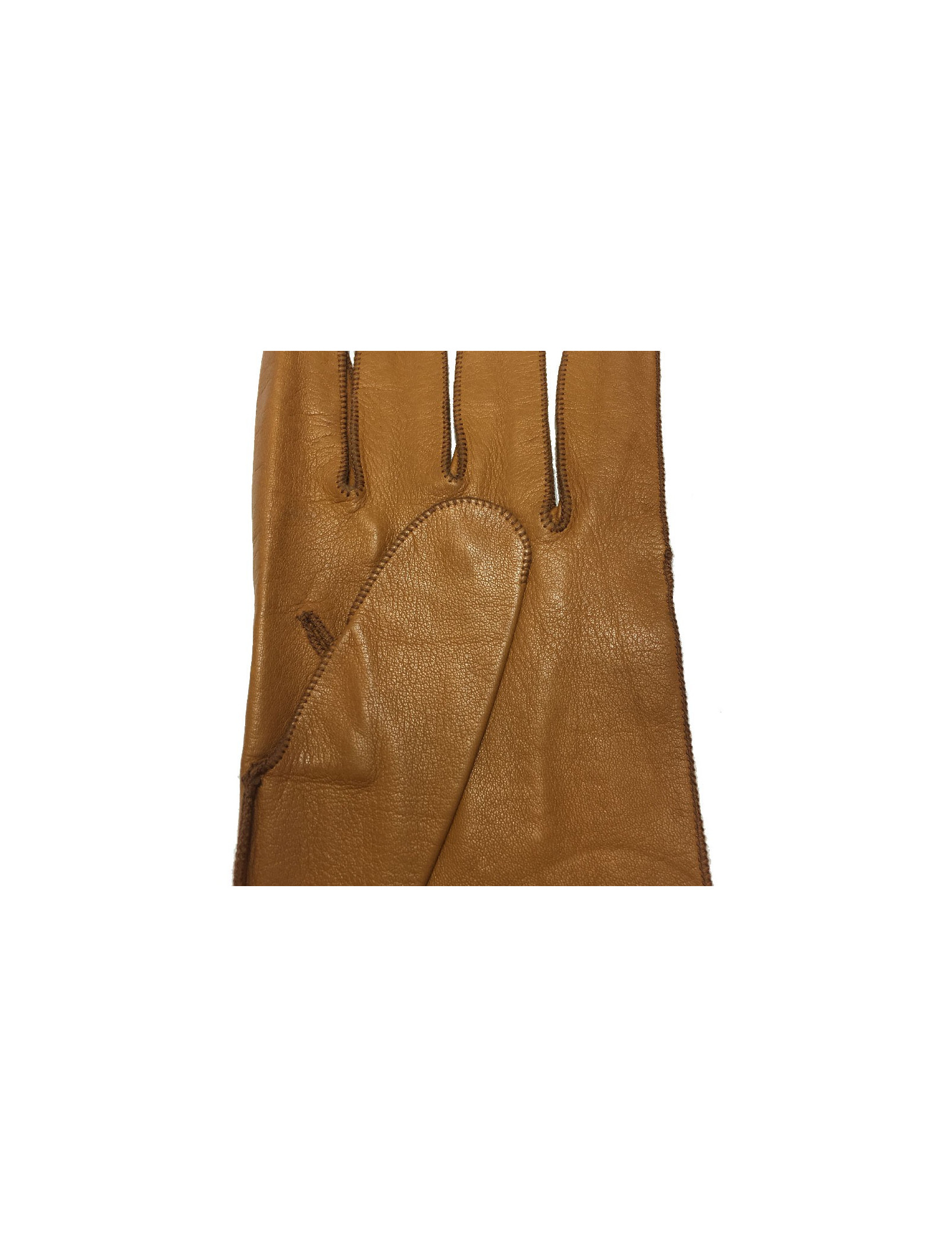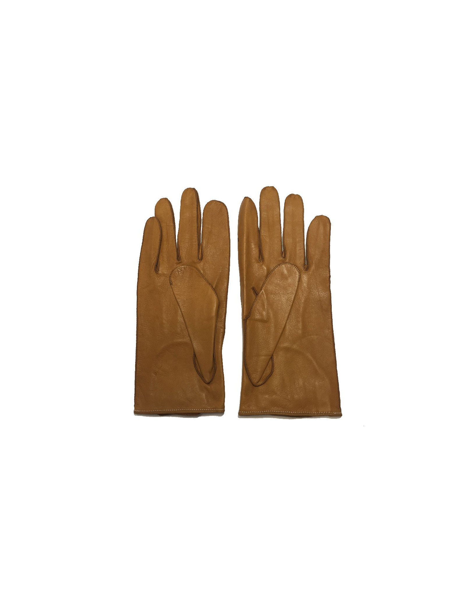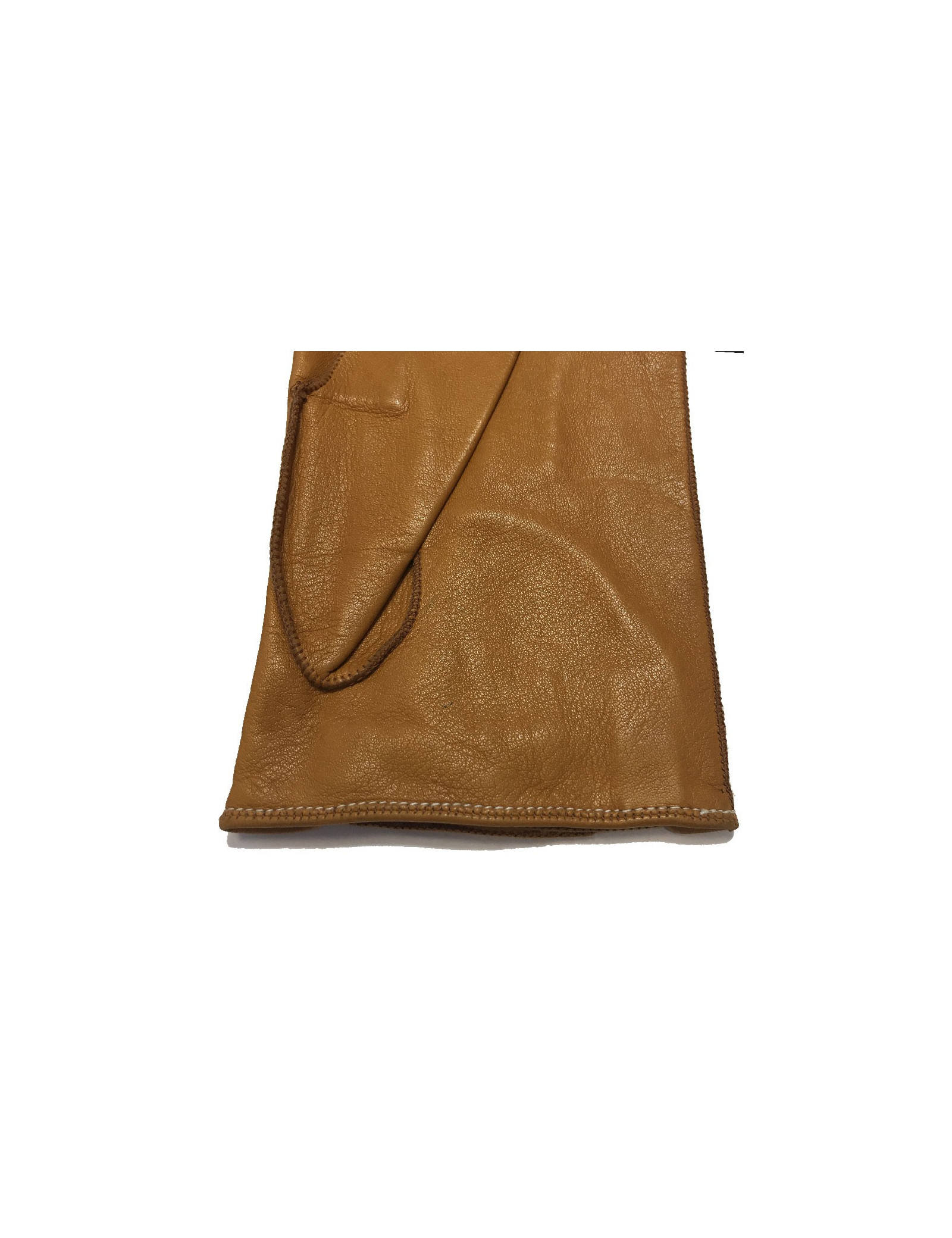 En bon état. De petites tâches de stylo sur le cuir (voir photos). Intérieur en suède caramel. Les gants se ferment au niveau des poignets par un bouton pression doré.