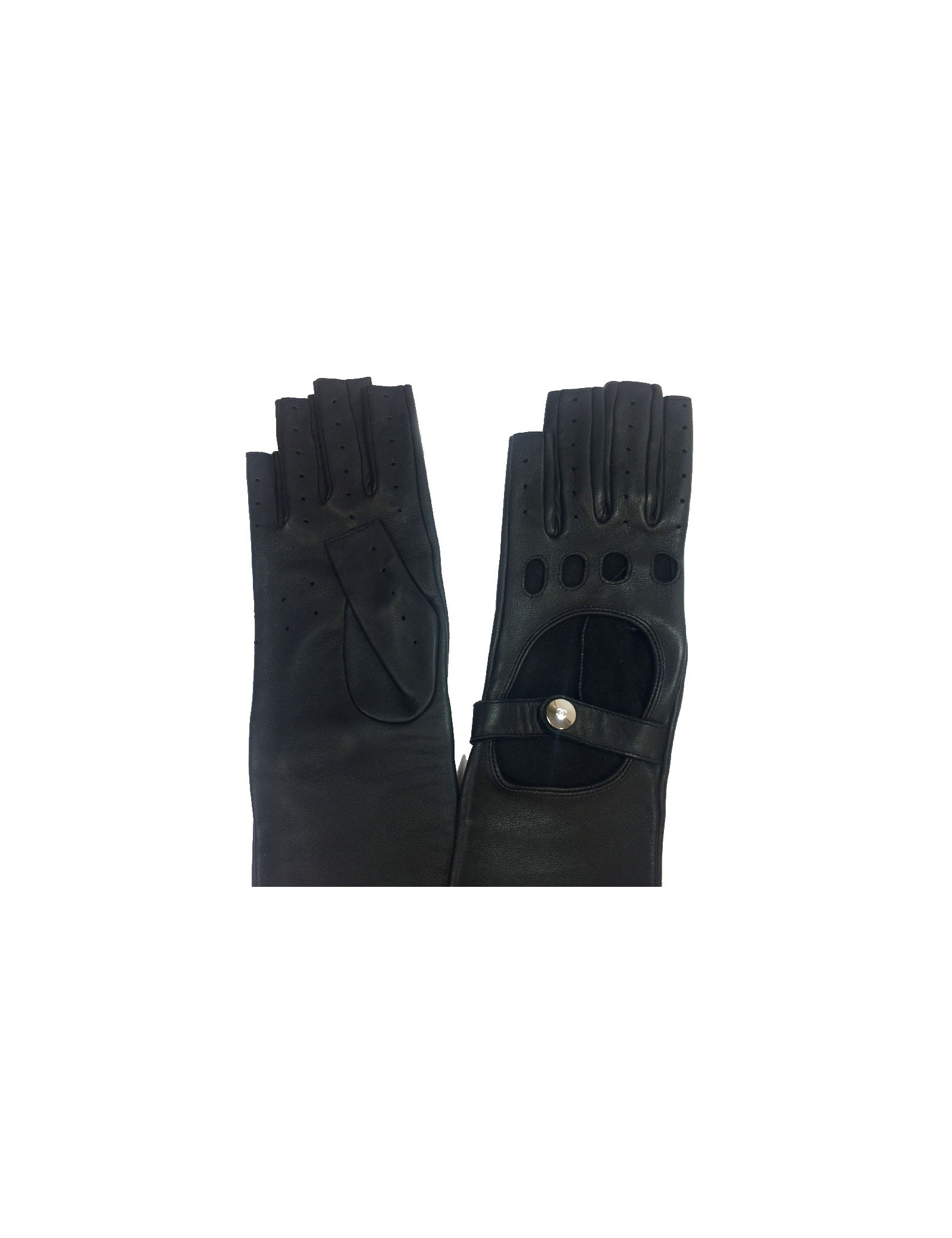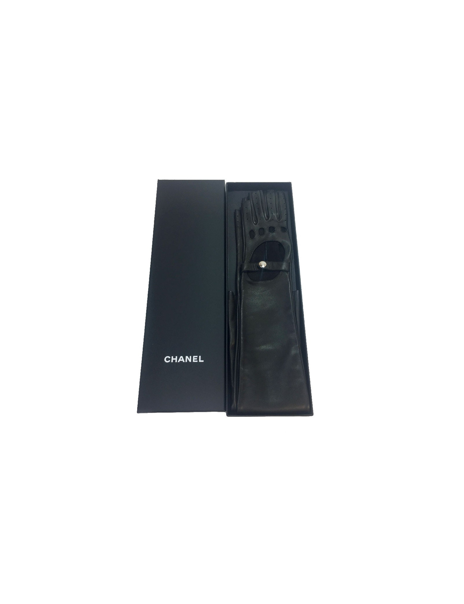 Longues mitaines CHANEL T7 en cuir d'agneau noir