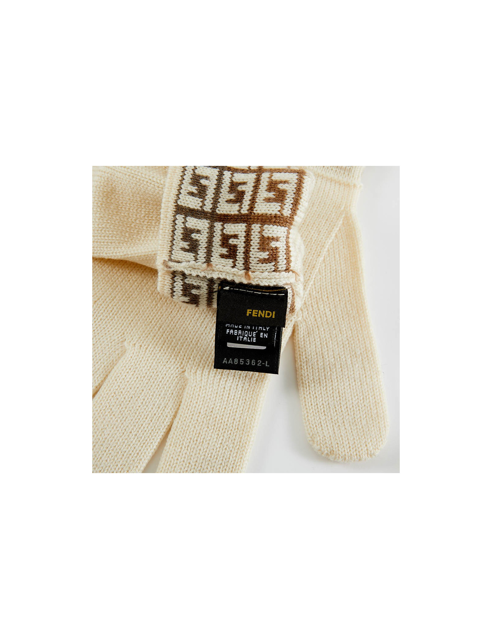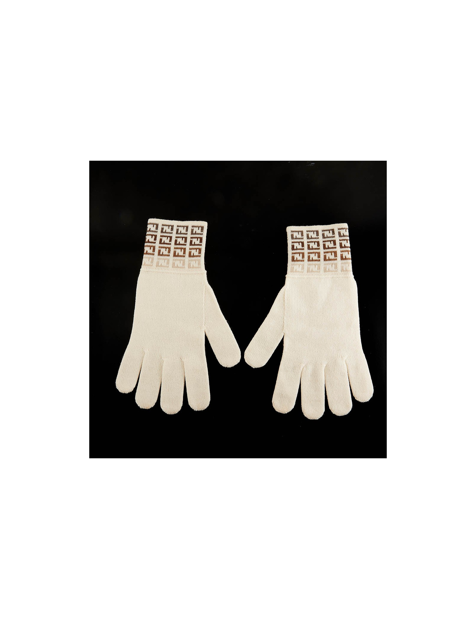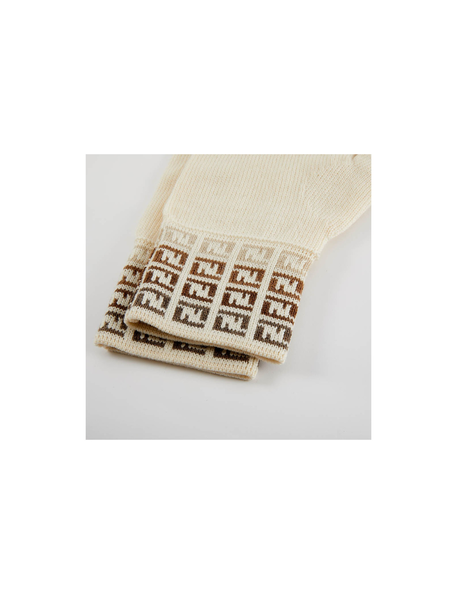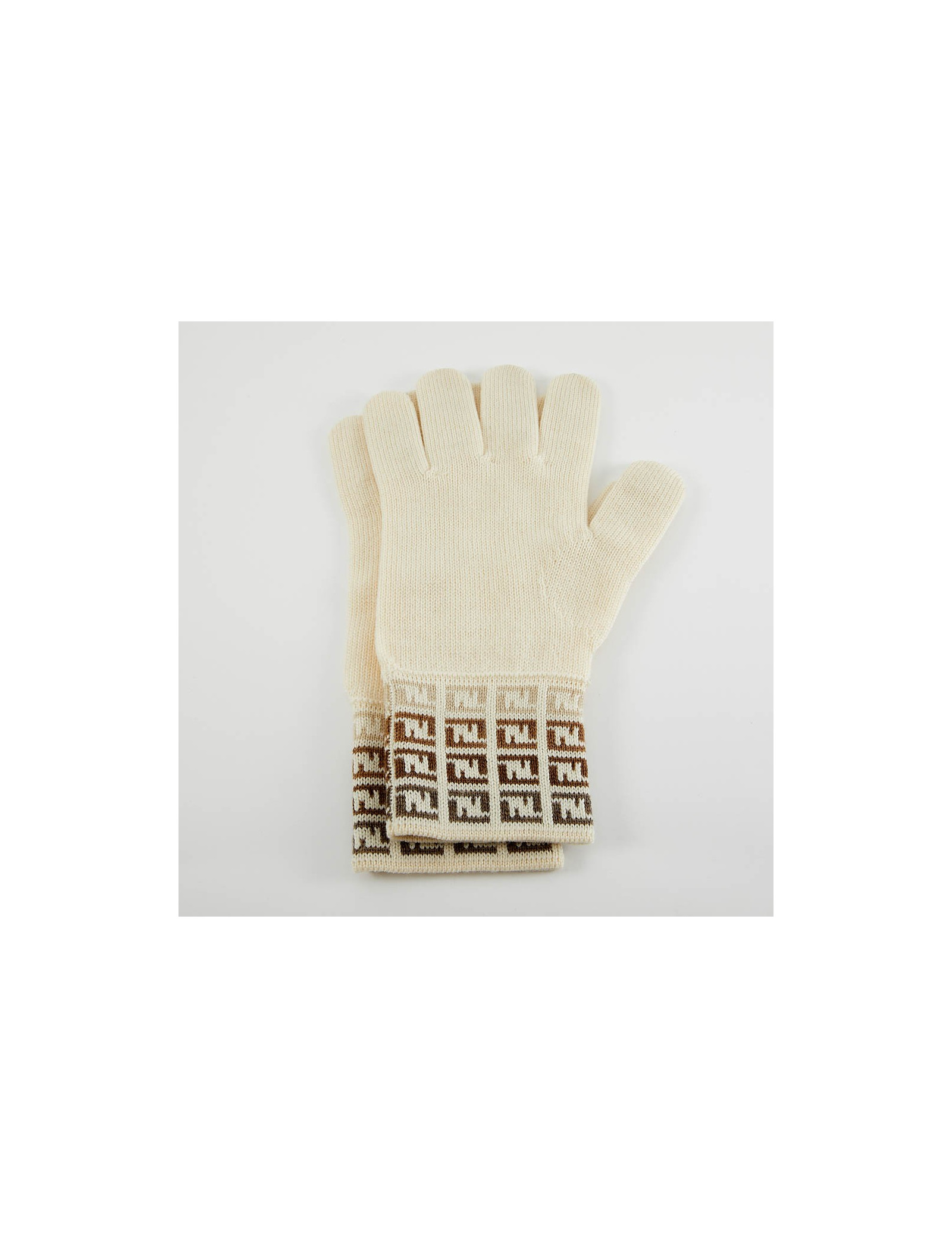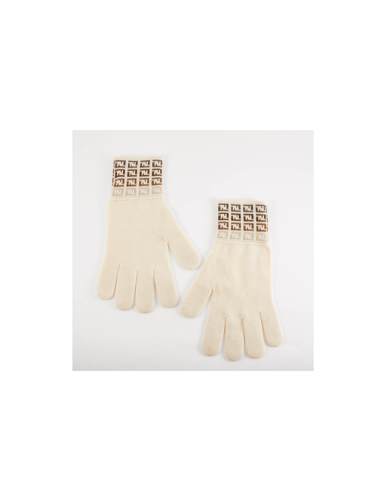 Gants en laine écru. Au poignet le célèbre logo Fendi. Ils sont neufs.