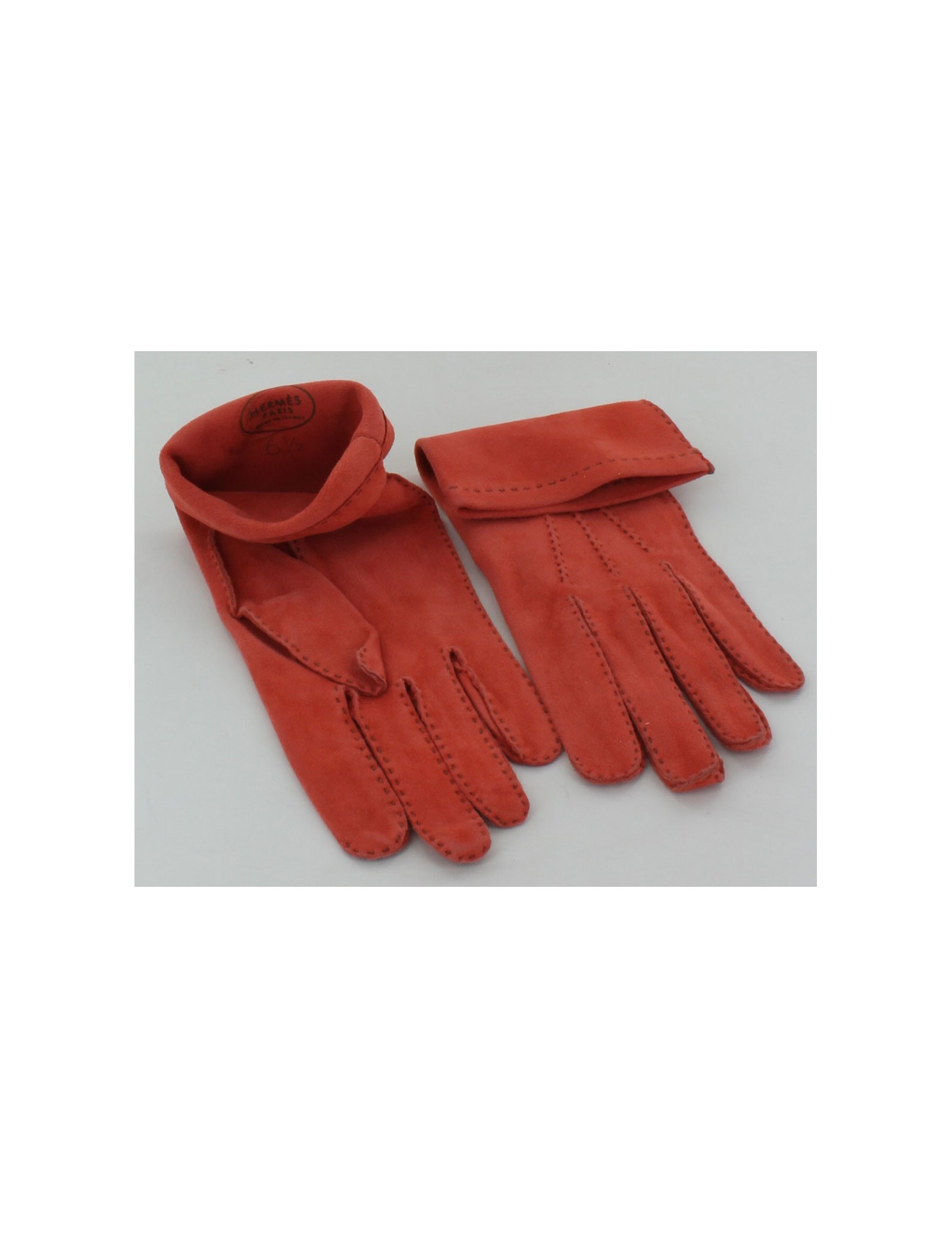 Gants HERMES en veau velours orange T6,5