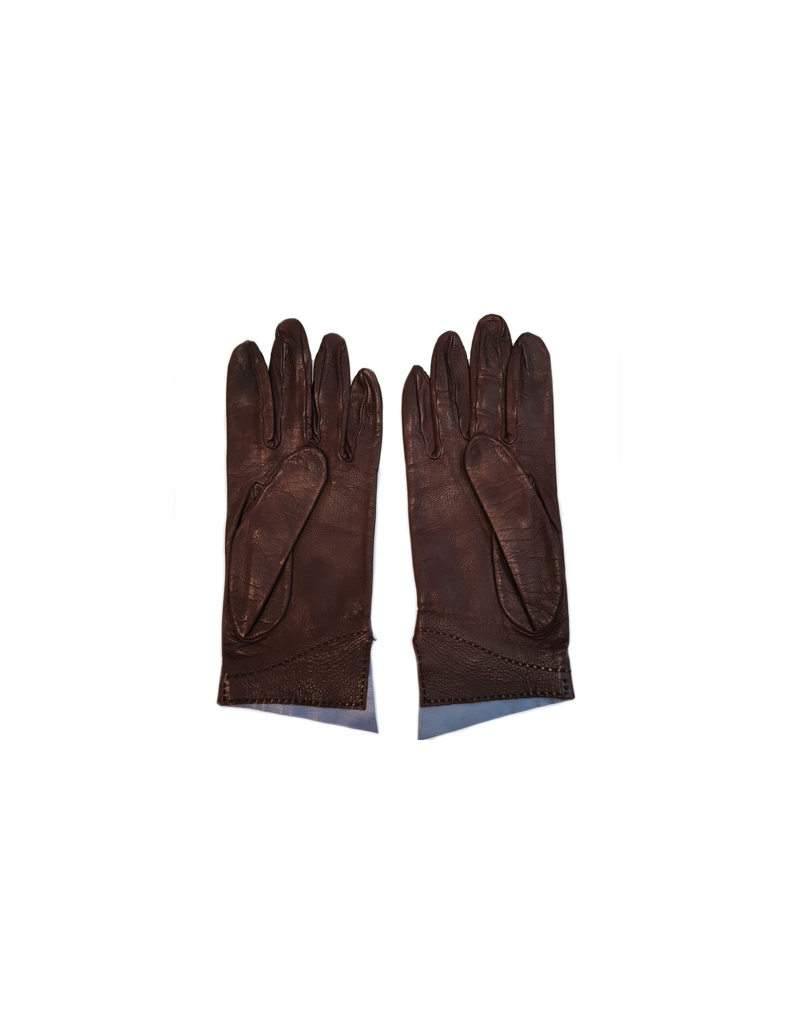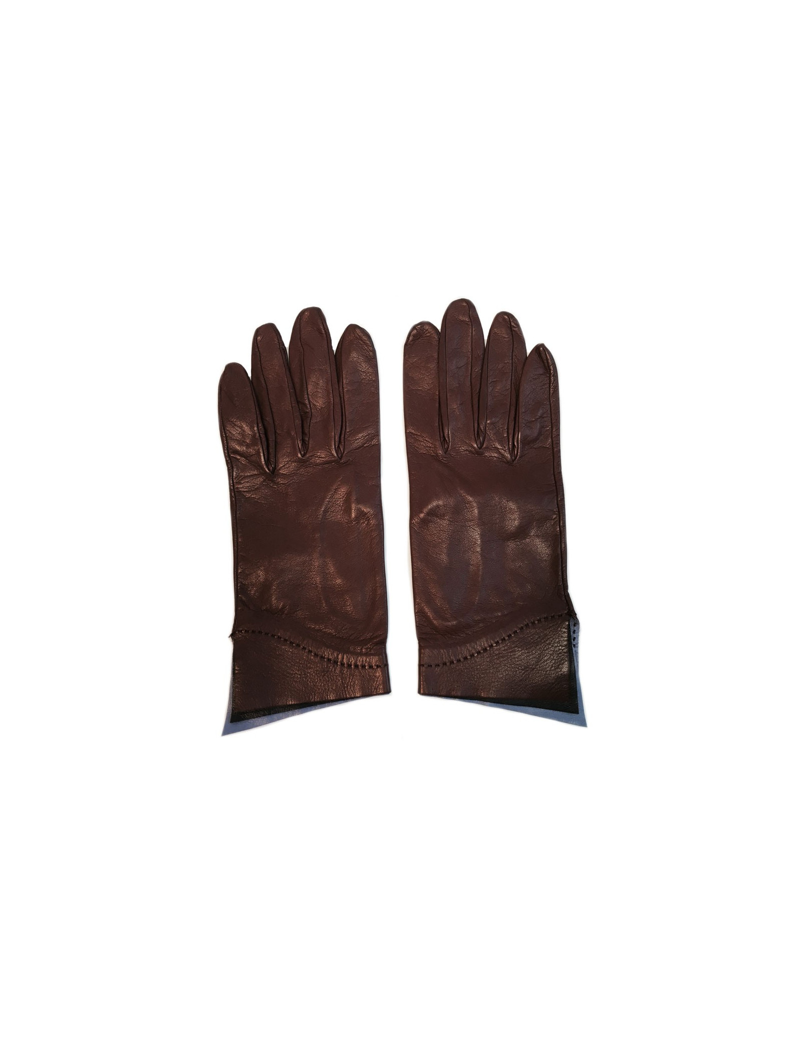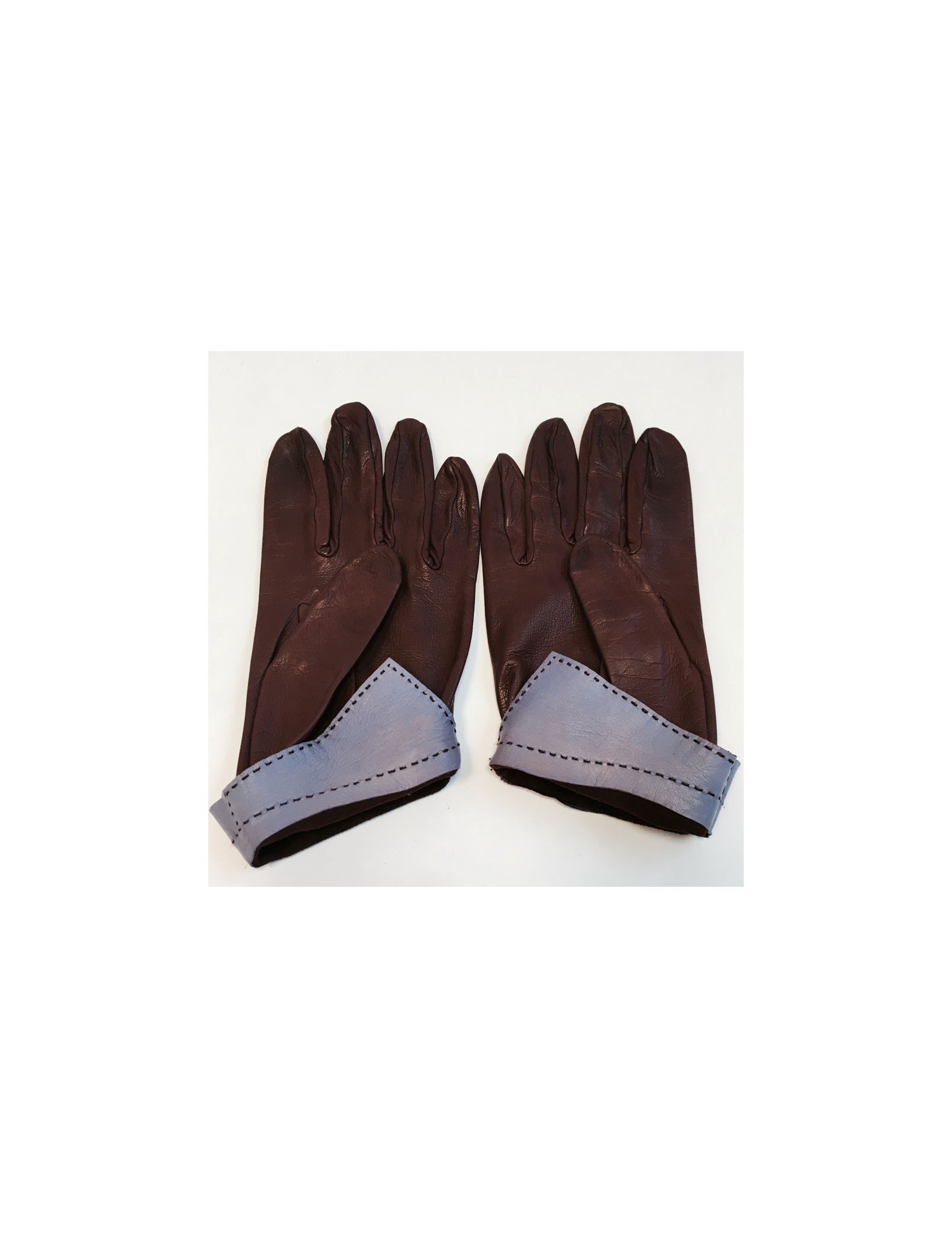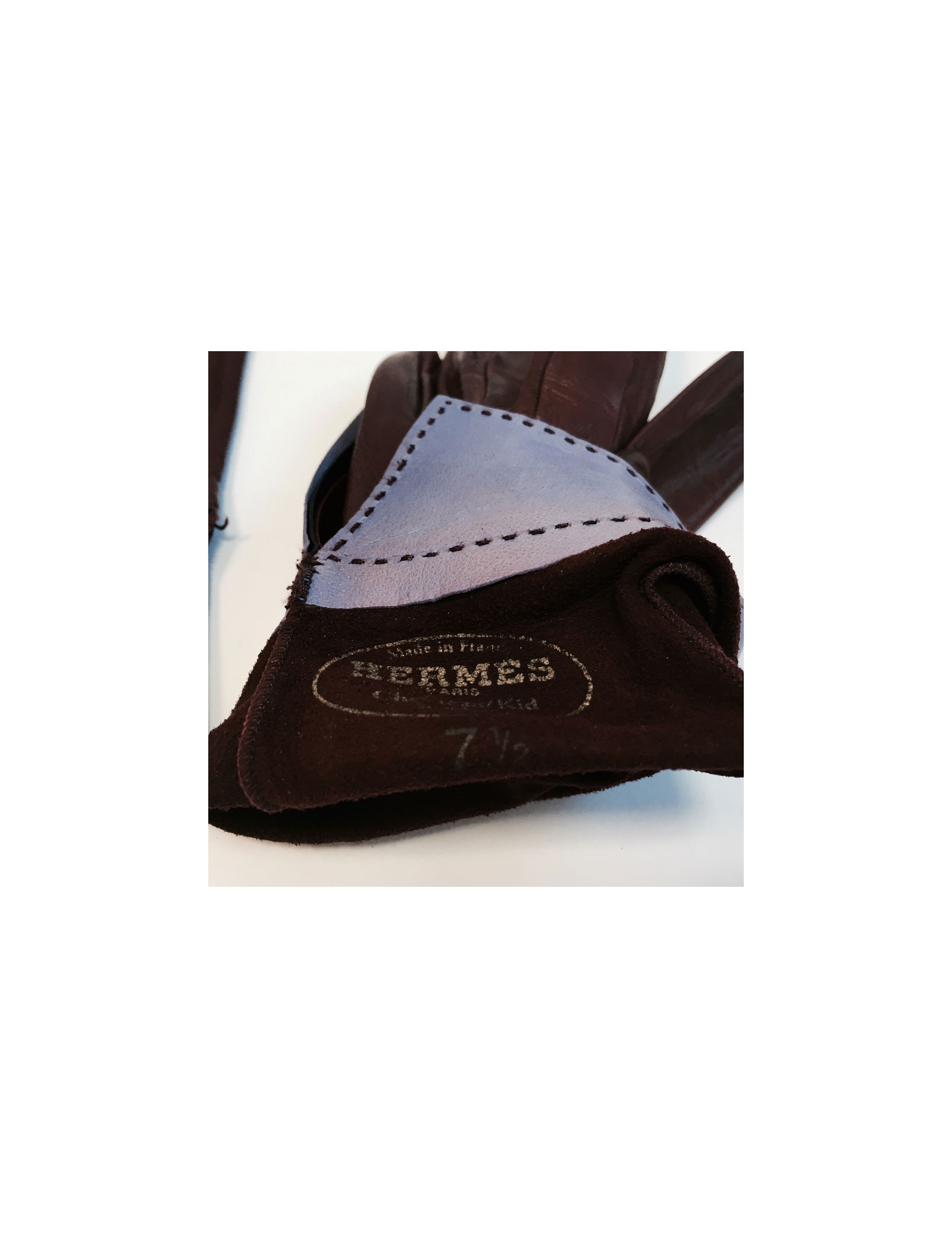 Belle paire de gants HERMES en cuir d'agneau bordeaux. Revers en cuir mauve clair et foncé au niveau du poignet.