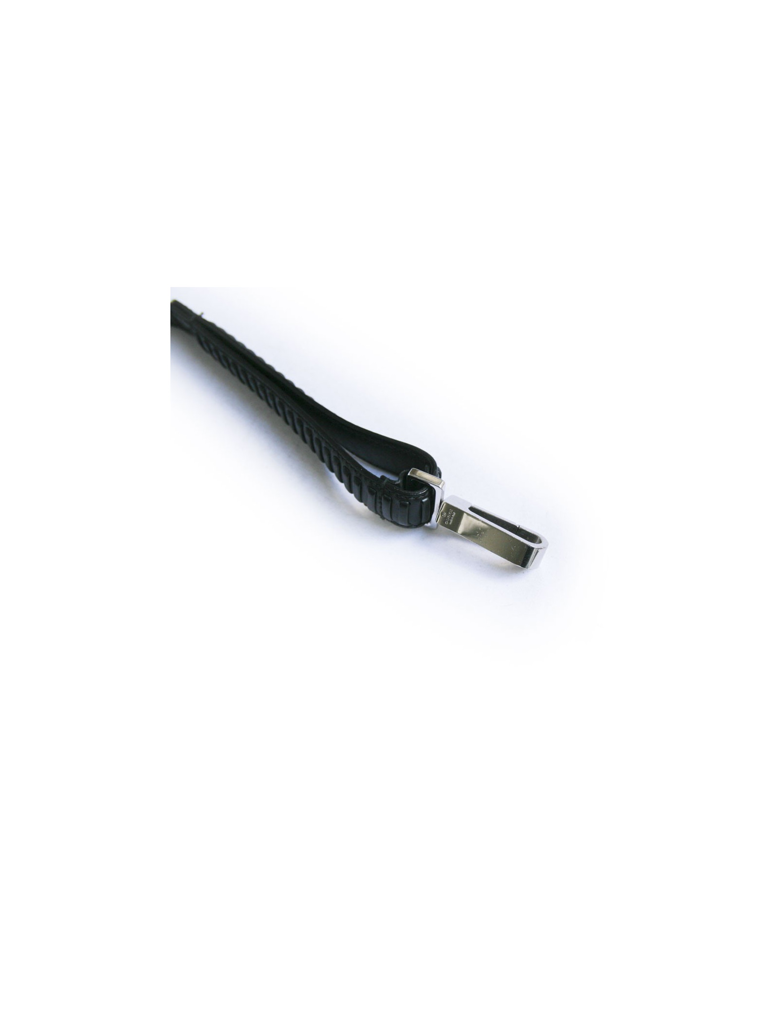Magnifique laisse pour chien Gucci en cuir noir. Très beau travail du cuir au niveau de la poignée et de l'accroche. La bijouterie est en palladium.