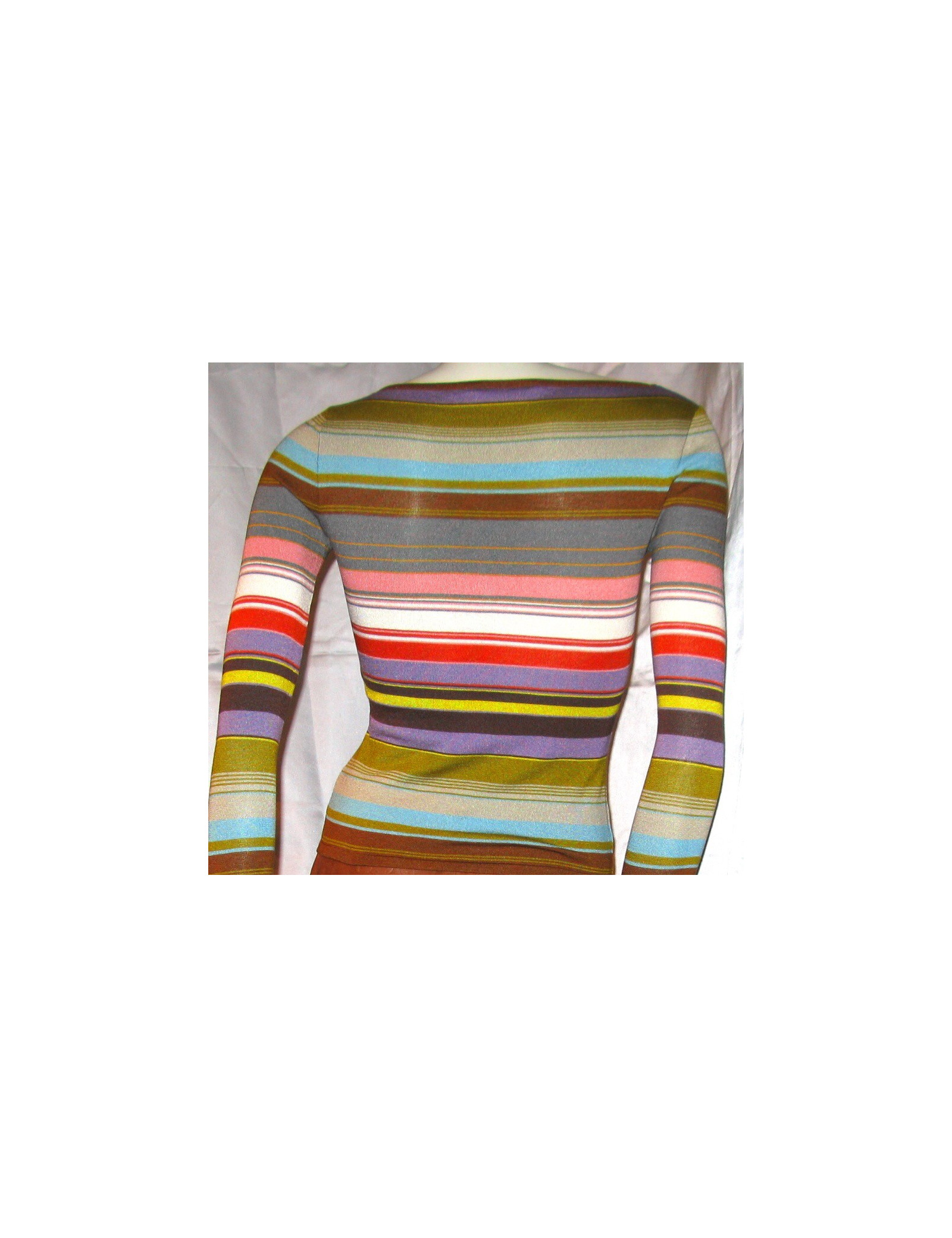 Superbe top CELINE en maille multicolore de taille S manches longues. Il se compose de 95% de soie et 5% de polyester.