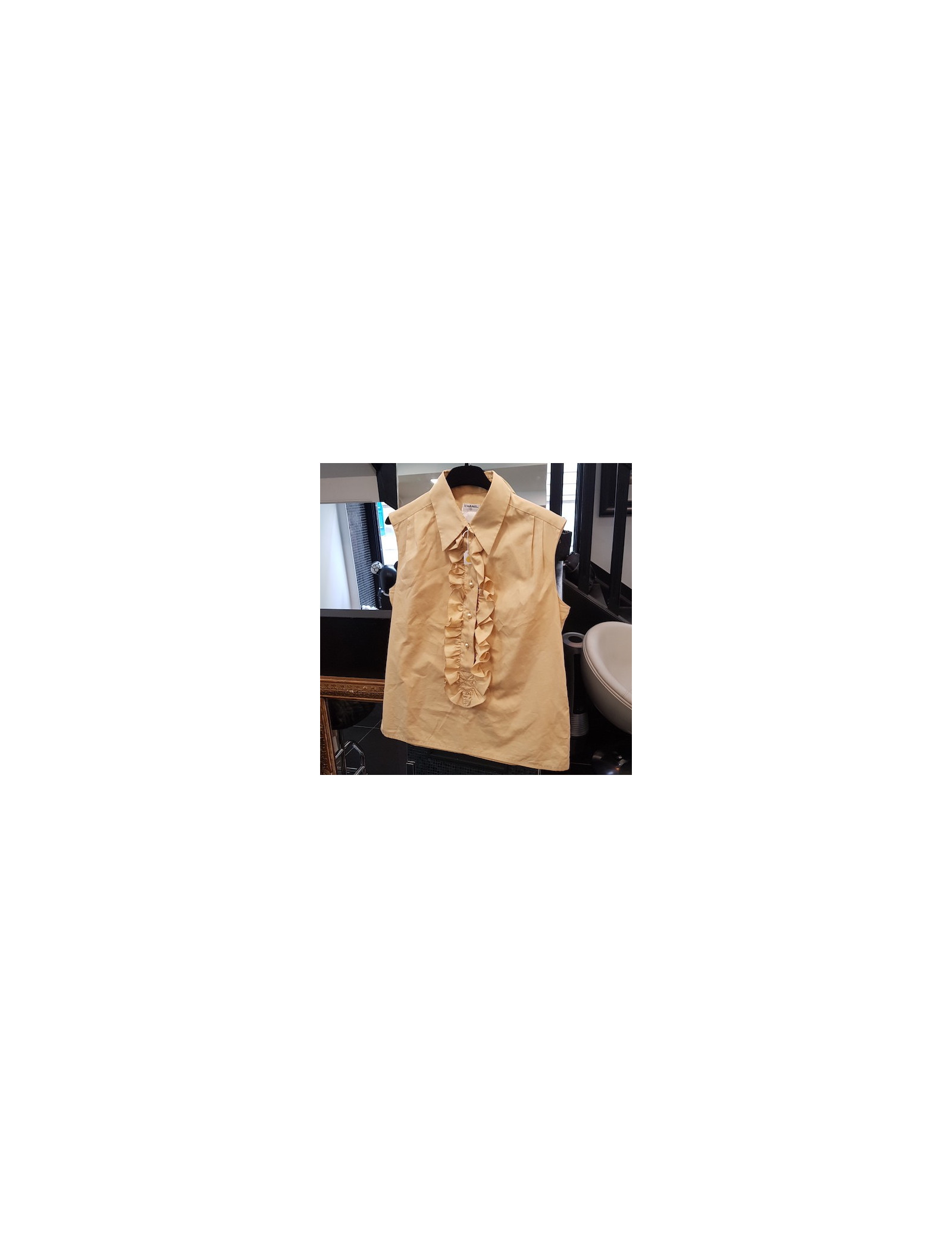 Derniers articles en stock HAUTS/CHEMISIERS Blouse T 36 CHANEL sans manches fils argent sur soie beige CHANEL 23957 550,00 € A05 Ajouter au panier
