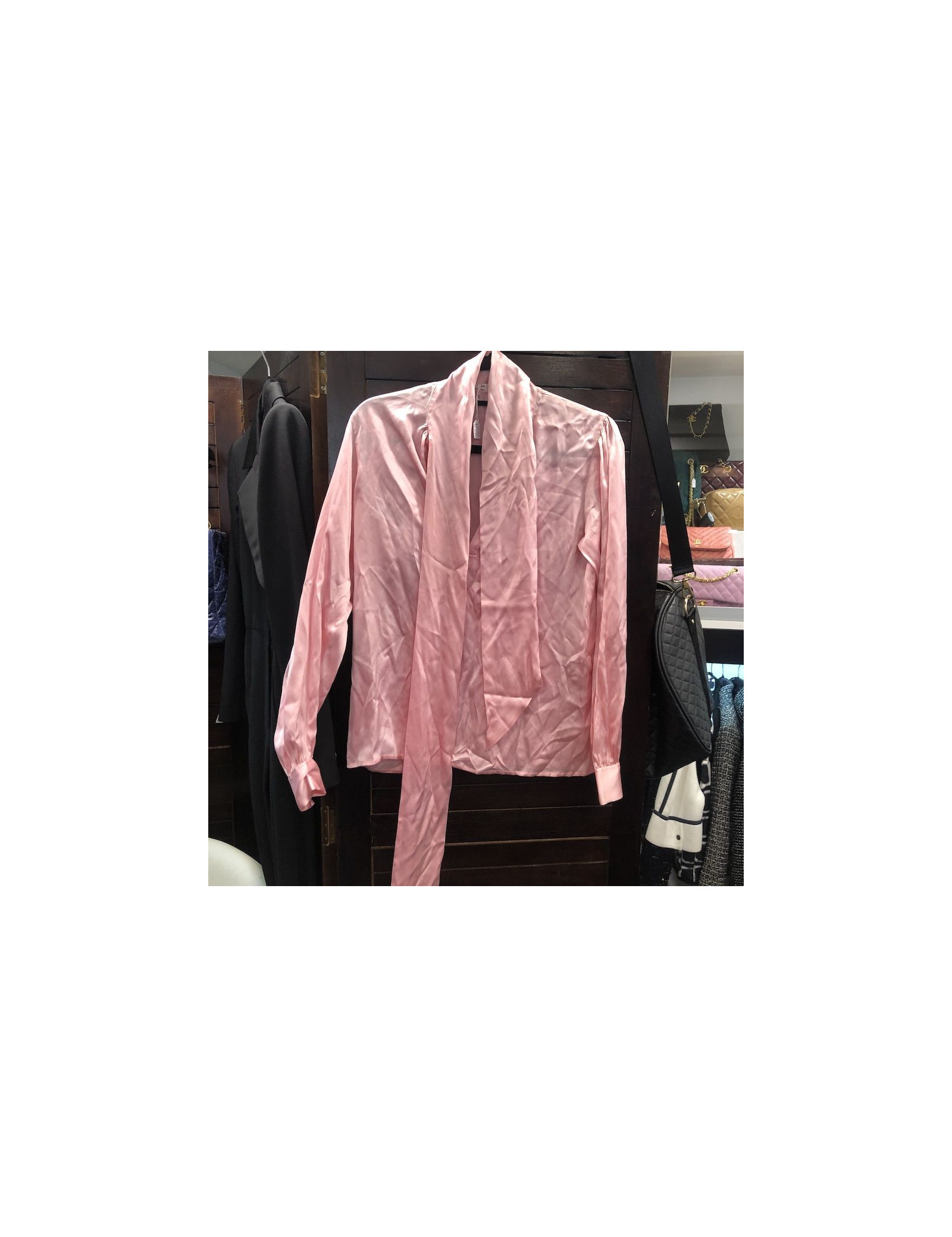 -60,00 € Derniers articles en stock HAUTS/CHEMISIERS Chemisier en soie noire GIVENCHY GIVENCHY 12913 470,00 € 530,00 € Chemisier en soie noire GIVENCHY à Clous Pyramides Dorés Succombez à l'élégance intemporelle de ce sublime chemisier vintage GIVENCHY en soie noire. Confectionné en 100% soie luxueuse, cette pièce incarne l'allure sophistiquée propre à la Maison de Haute couture parisienne. Il présente un décolleté en V flatteur, magnifié par des clous pyramides dorés... Ajouter au panier