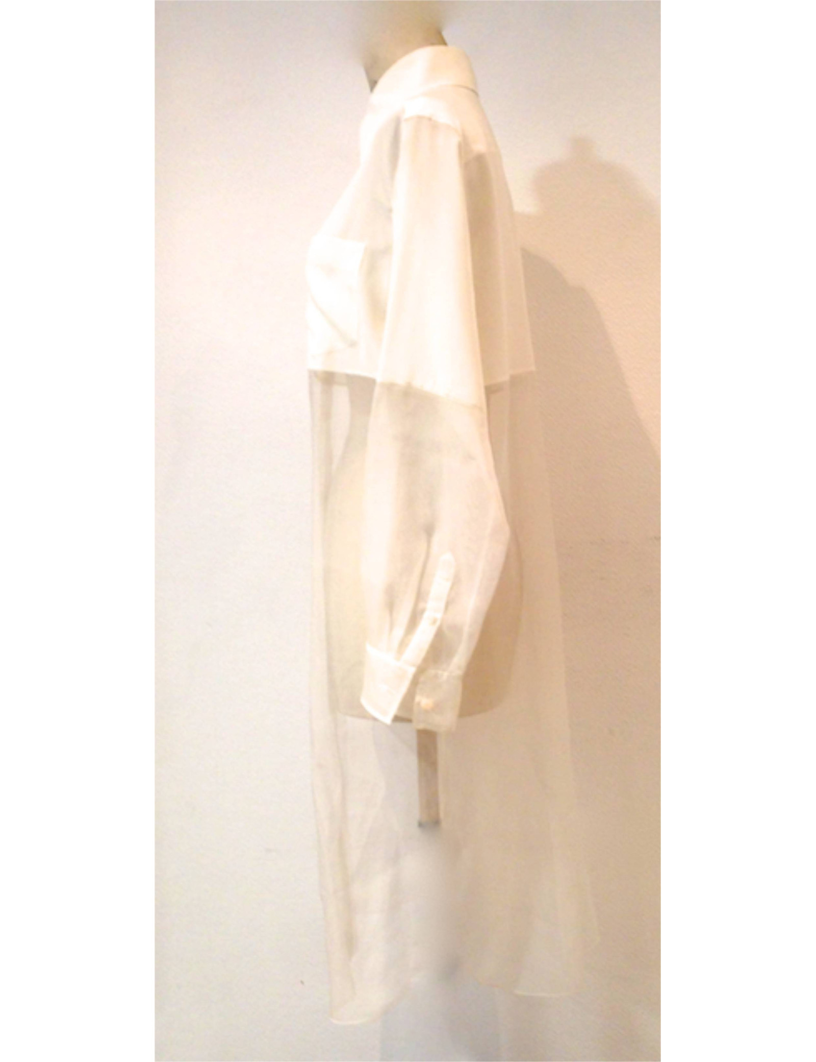 Blouse HERMES chemise longue en soie écrue mate et transparente