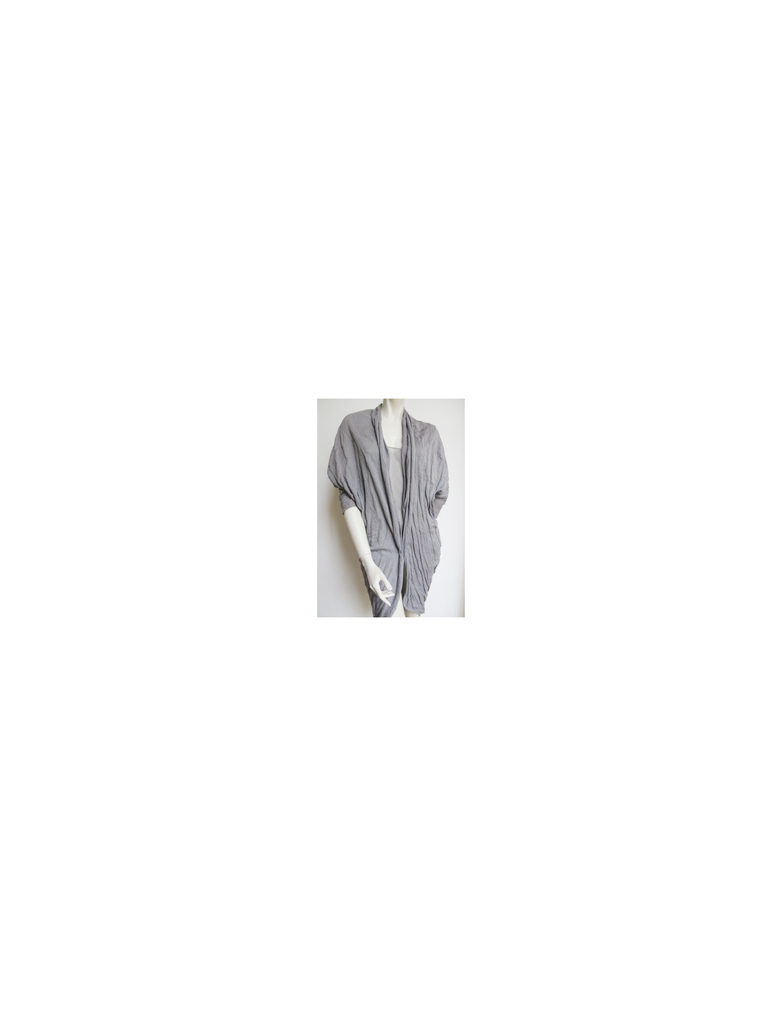 We Love! Twin set Lanvin gris T38FR. Gilet long effet "froissé" manches longues avec large élastique aux poignets, col plissé, ouverture centrale sans attache. Longueur asymétrique plus long au dos. Taille 38.
