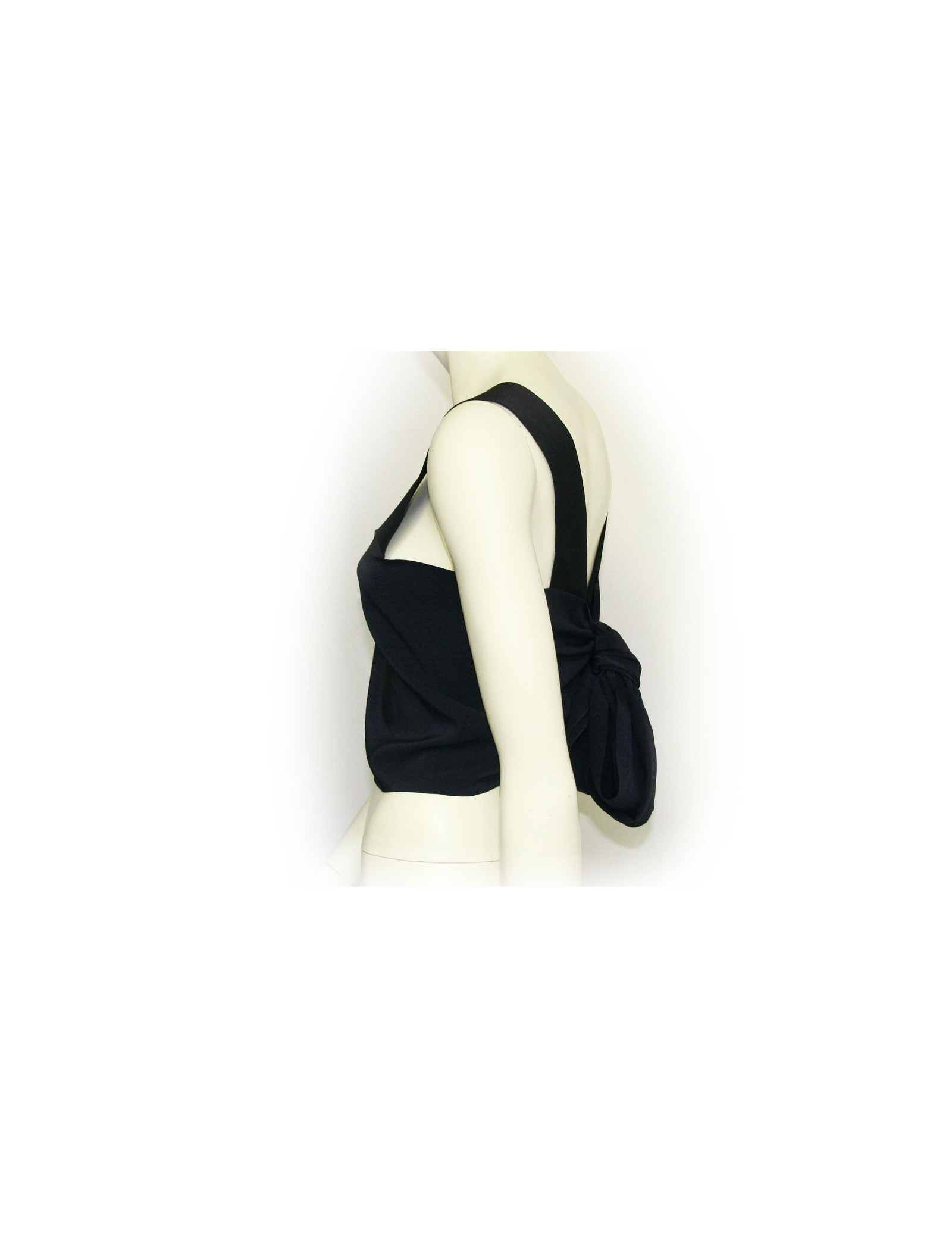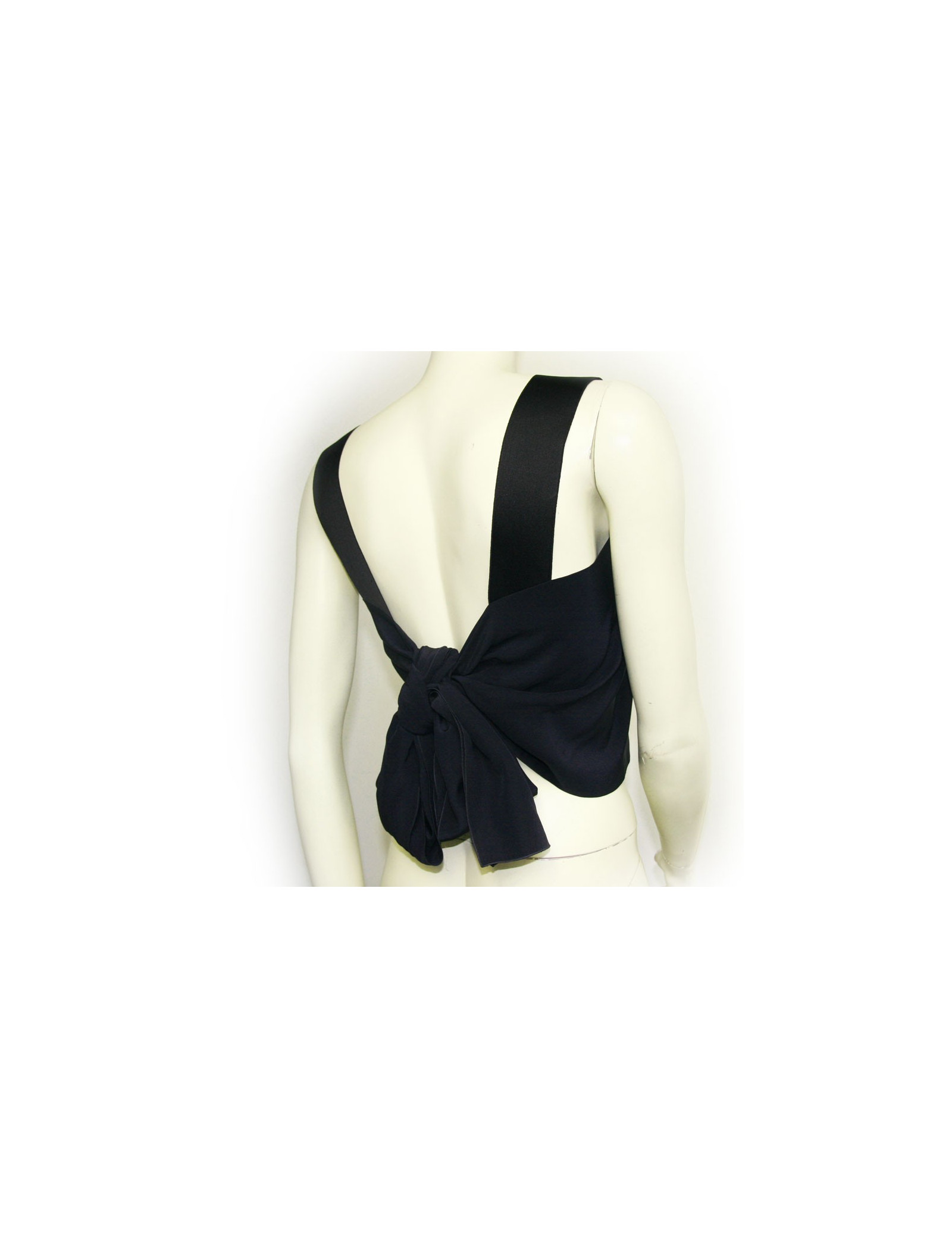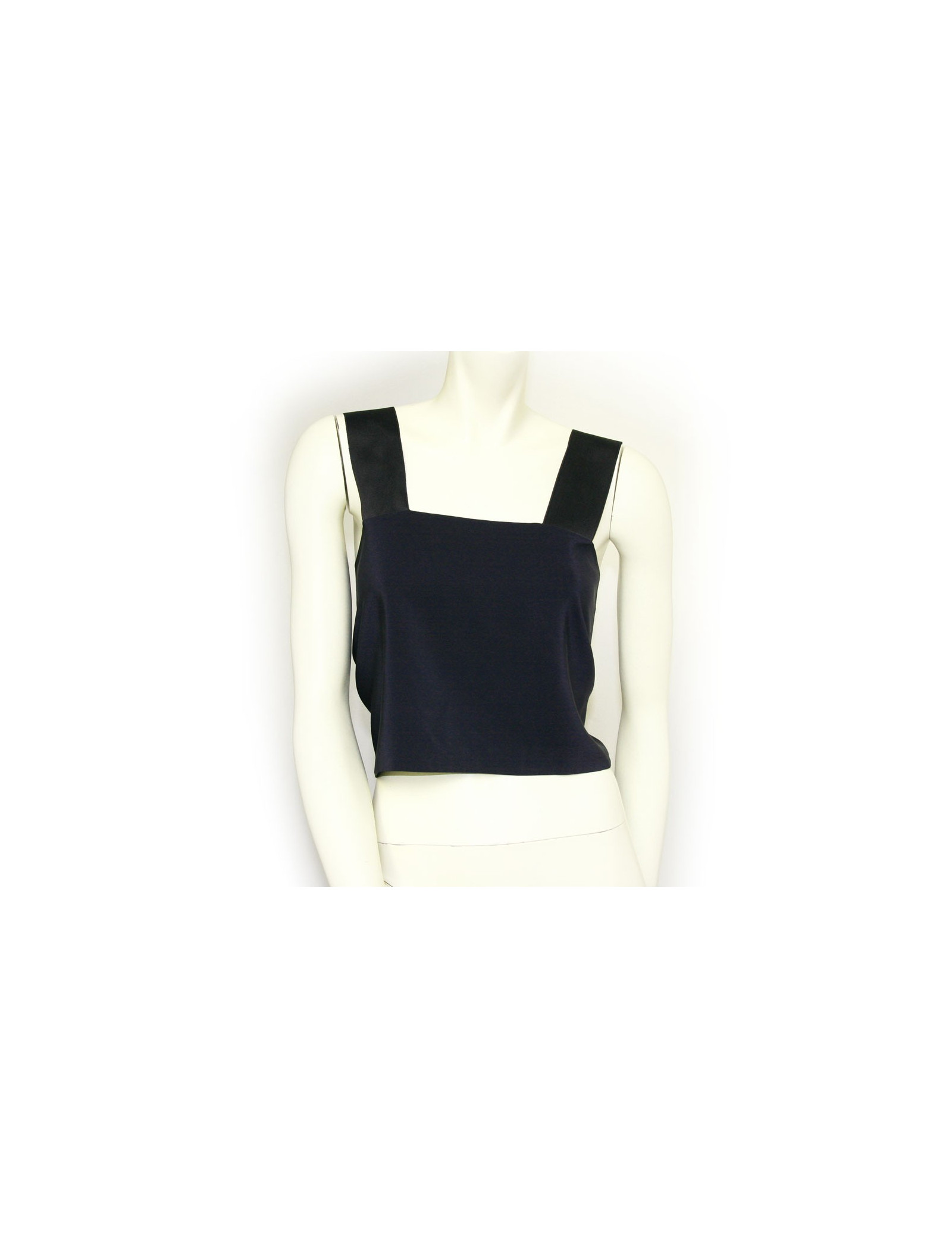 Top Chanel en satin de soie bleu marine avec bretelles en satin de soie noir. Taille 36 (pas d'étiquette de taille)
