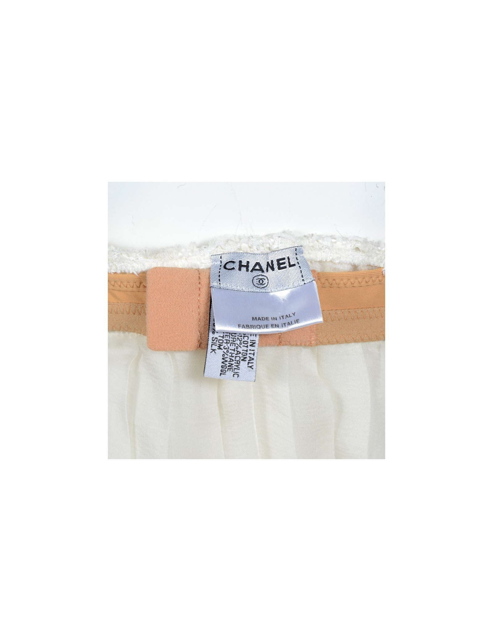 Top CHANEL en tweed et soie ivoire T42